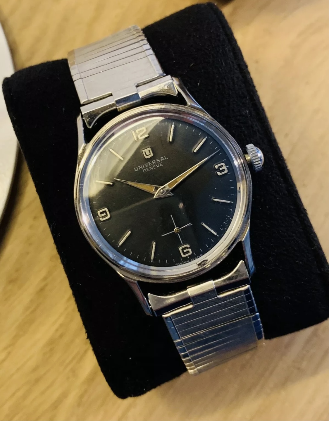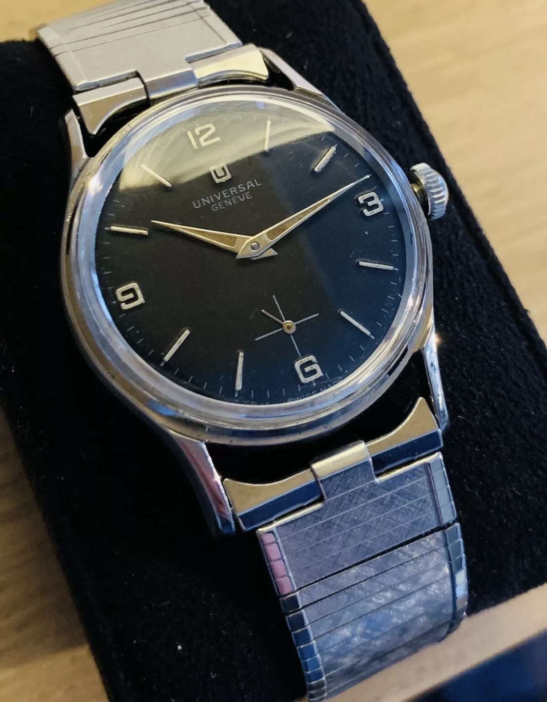 ·Looks very nice and I am struggling a little with it. However, there are a couple of things that I cannot reconcile with archive. the first one is that date of production (based on serial number) that does not line up with style of dial. The second issue is the blatant mistake in print. Telephone timing marks should be at 3 sec, 6 sec and 9 sec. The 9 second mark is out or may be the second chapter that is bleeding into register. It is the same in the second counter register. It is the first time I have seen and old dial with this error. I believe the dial has been reprinted.