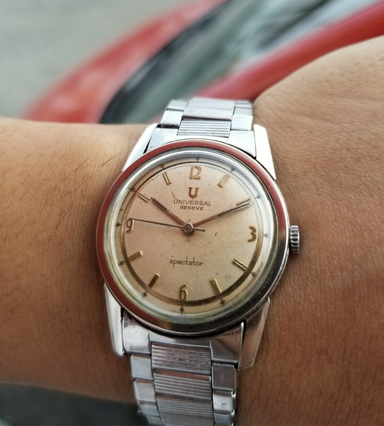 Less snake skin, more water egress that *somehow* hasn't touched any of the dial print. You can see some greening in the 7o clock hour marker region.