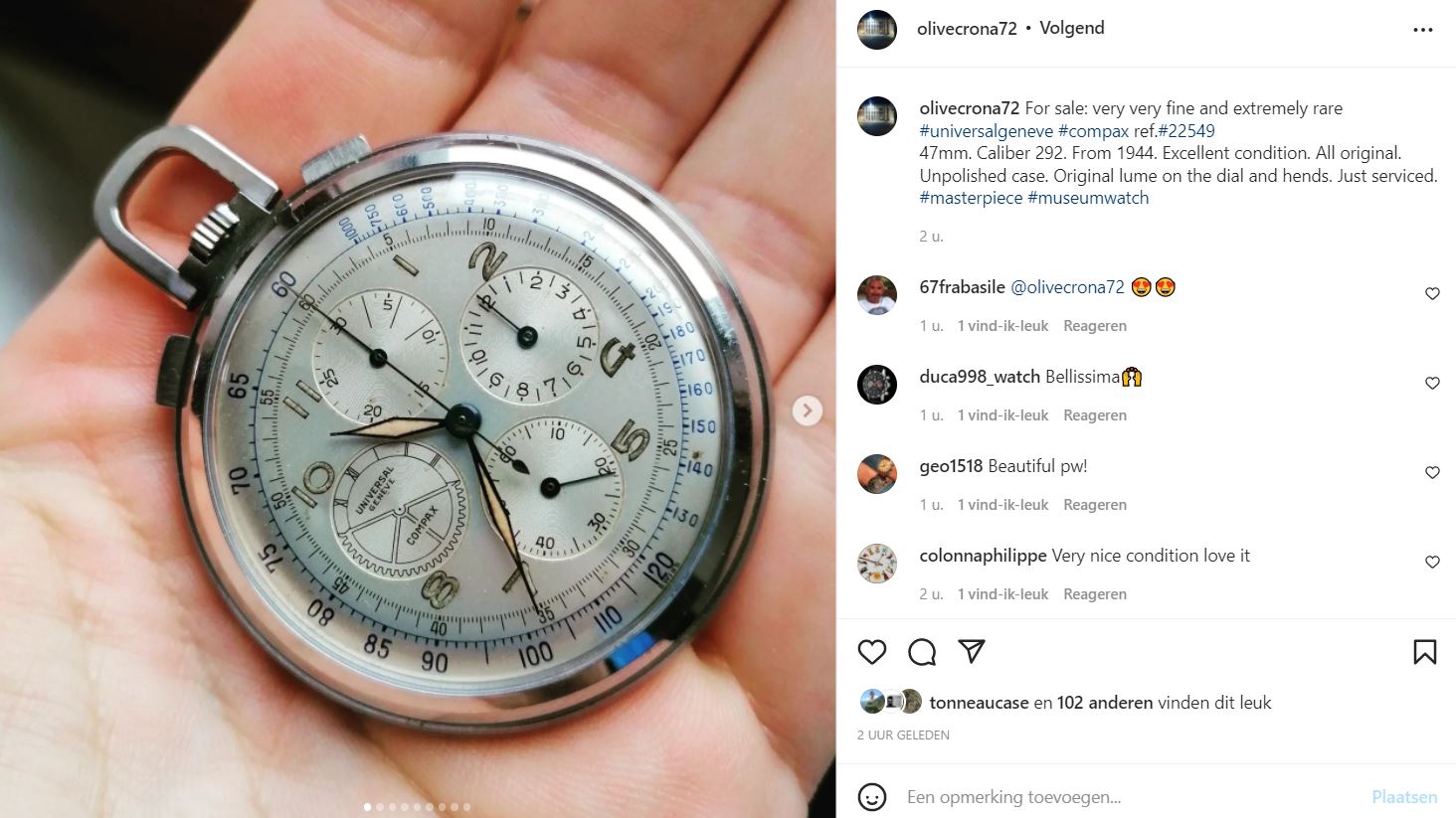 Now FS on insta: https://www.instagram.com/p/CZPH7wzrHMO/?utm_source=ig_web_copy_link Also here: https://www.chrono24.nl/universalgenve/compax--id22393100.htm Asking EUR 6.500