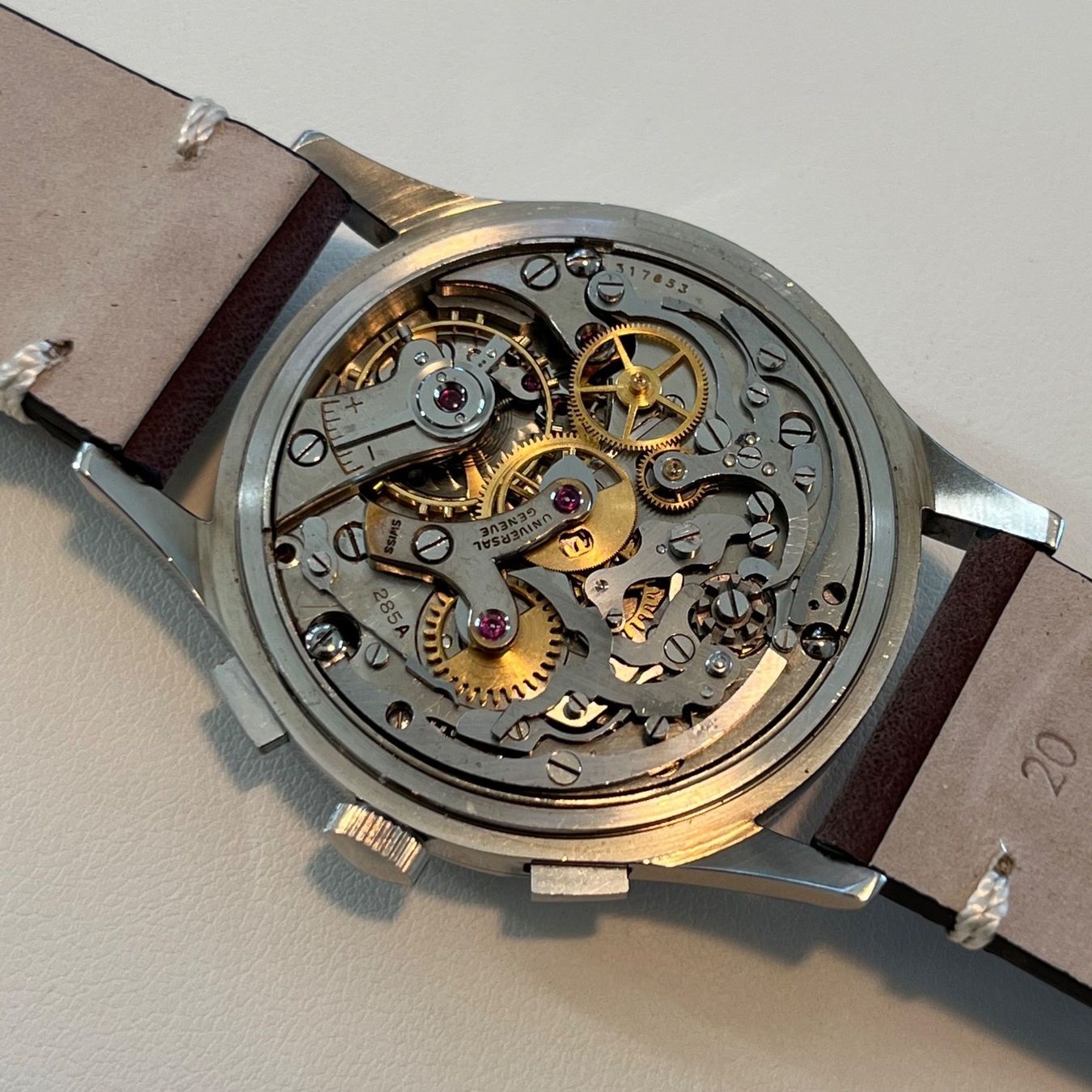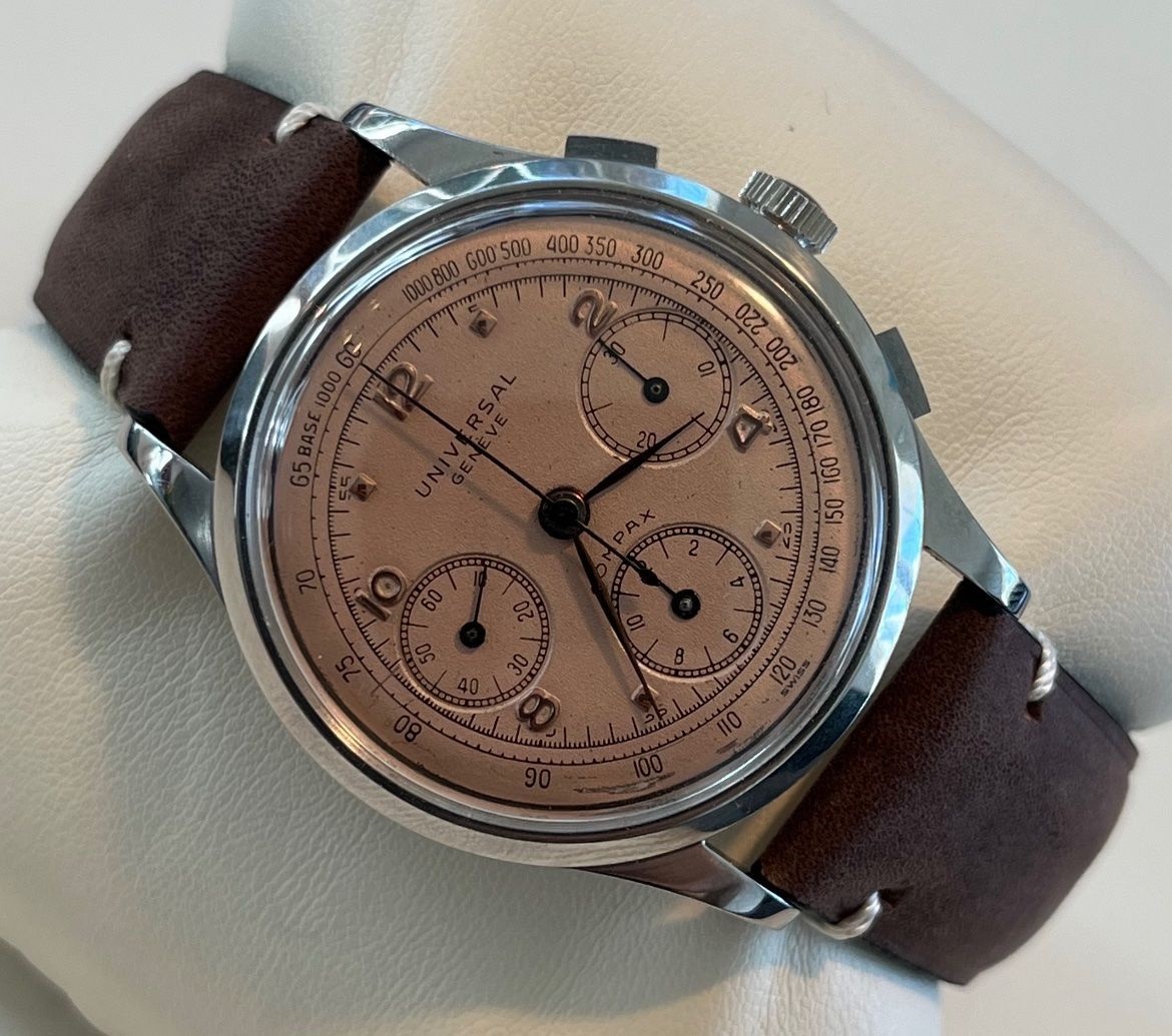 This 22280 (https://www.ricardo.ch/de/a/universal-geneve-compax-salmon-285a-1198114350/) is a very curious one for a couple of reasons:
