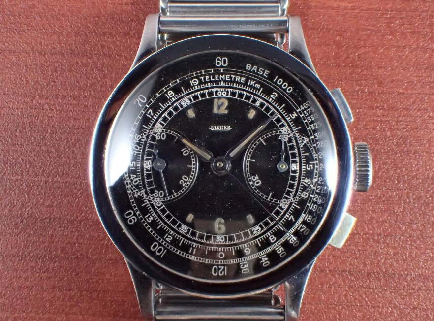 Wonderful (and matching) Jaeger 22436 in Japan: https://curious-curio.jp/watch/46773 Hands are wrong I think. Dial relumed, print feels correct but interested to hear other opinions. Close sibling looks completely different: https://www.uhren-muser.de/en/50040/jaeger-fab-suisse-chronograph