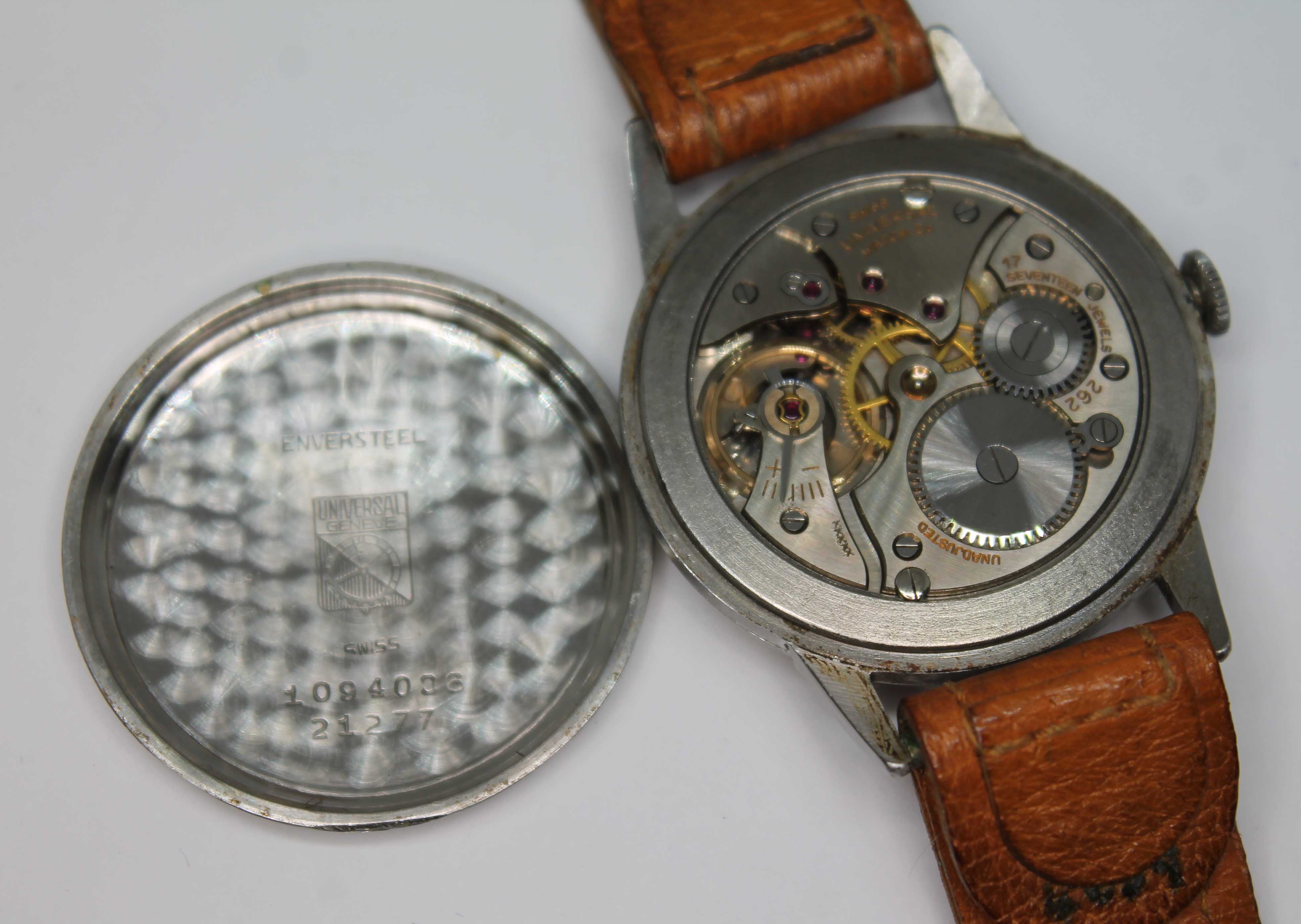 I just reread that epic thread on UG/Zenith/Martel from watchuseek discussing all this. It's very complicated, and somewhat hard to follow. There's a lot of very good info in that thread but it's not clear to me that any definite conclusions were reached, but there were lots of opinions. Whatever the relationship between UG and Martel, it seems very closely related, not clear if they were exclusive suppliers, or essentially a partially owned subsidiary, or a completely independent company. Plus the fact that the movement manufacture building has a giant sign on the outside that say Universal, but some people suggest that is just a promotional mockup, not a historical photograph, but I did not see this proven. Plus the cross over of the same staff in high level positions between the companies. The fact that UG owns some of the patents on what some people were considering Martel inventions, so perhaps they were purchased from Martel by UG (not only the movements but the patents). It all gets into a level of complexity that requires very precise definitions of language used to describe these relationships, rather than very general terms like who "made" something, or if these are "separate" companies, etc.