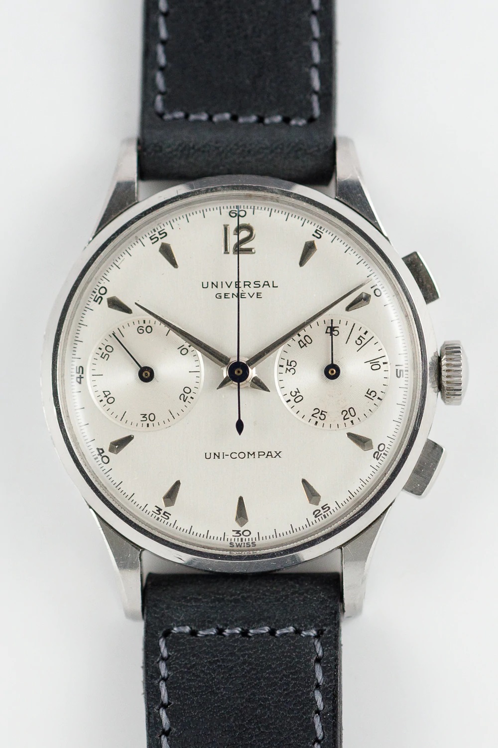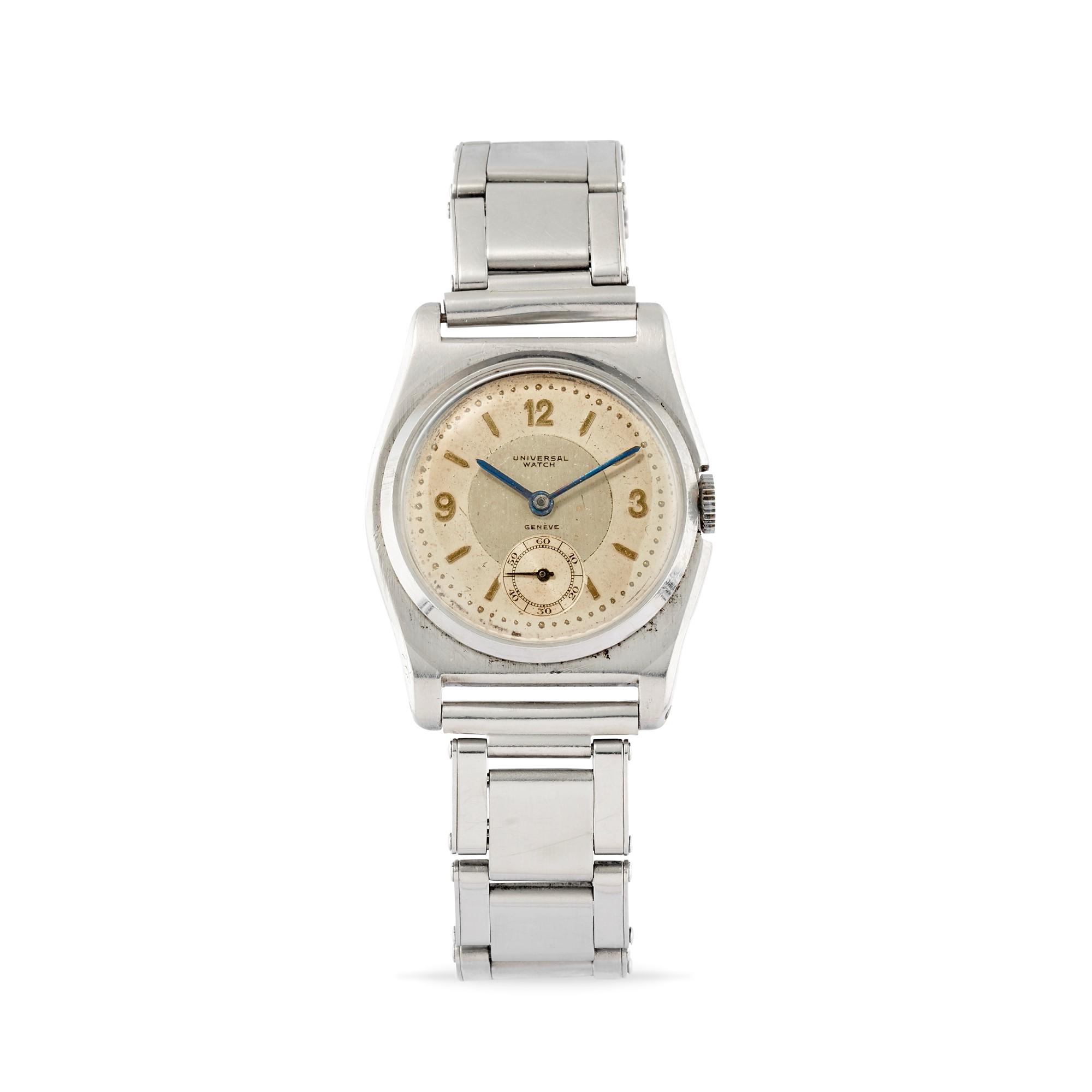 Ultra rare and vintage 1st Series of Universal Genève Compur from 1930 carrying the famous 285 Caliber steel case and steel bracelet.