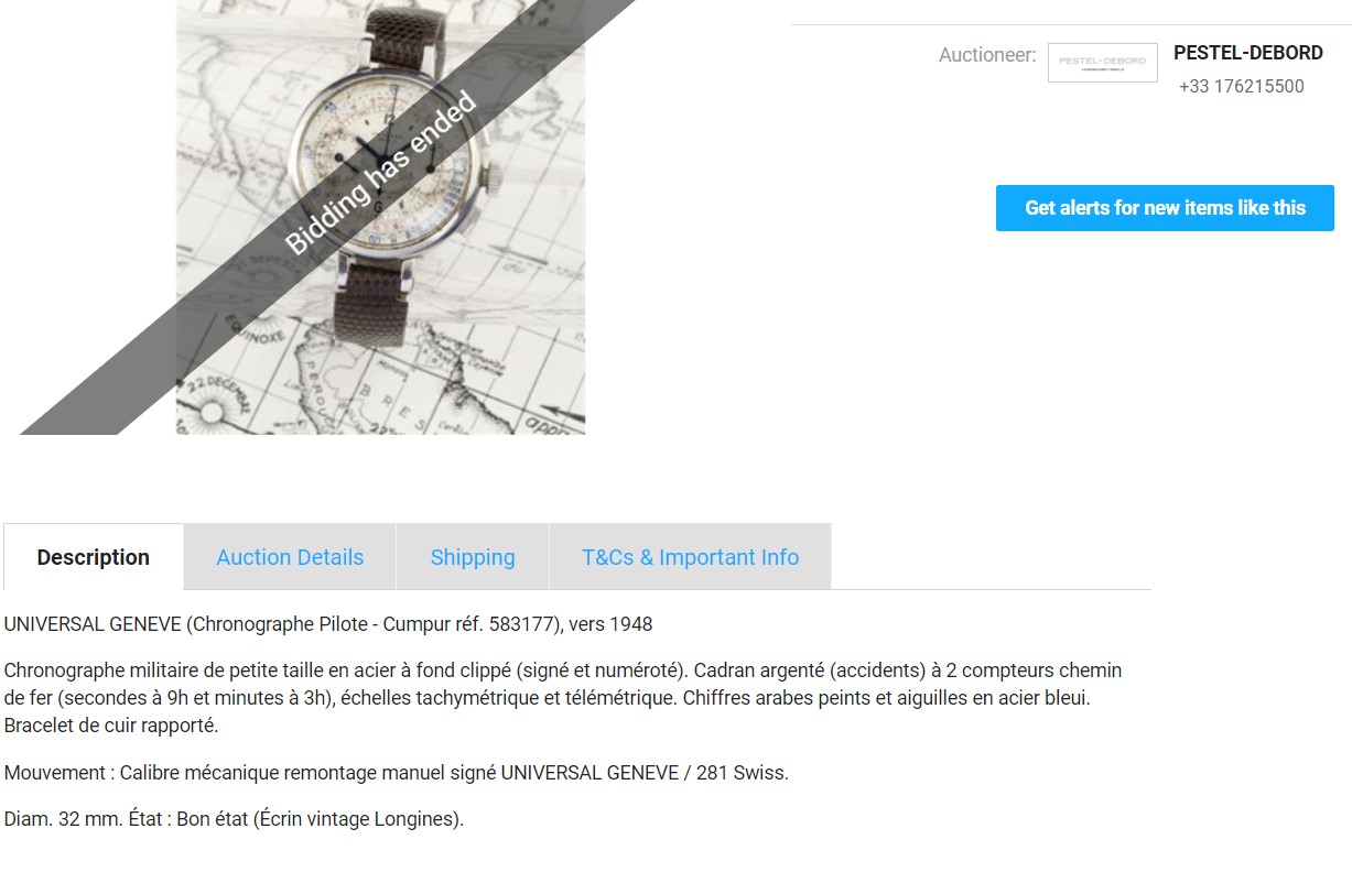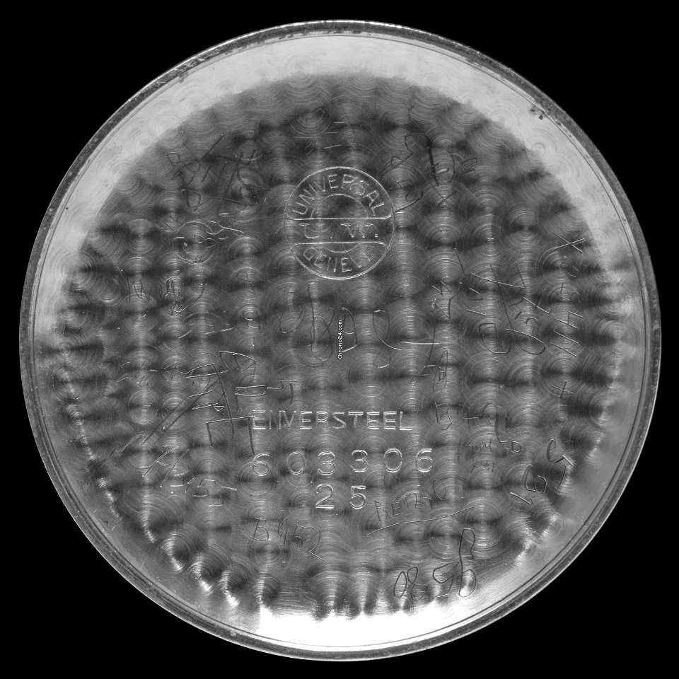 As we have already said for the "Contax" and "Aero-compax" (14) models, most likely, the conception, design and production of the Universal Watch "Compur" caliber were, in reality, the work of of the "Martel Watch", and it is likely that "... at least until 1941, the year in which the Universal bought the" Martel Watch ", the Universal used movements that were not designed and produced" in house ", but by the" Martel Watch ”and that, therefore, the“ Universal Watch ”was not a“ manufacture ”, but rather a simple" établisseur "(assembler).