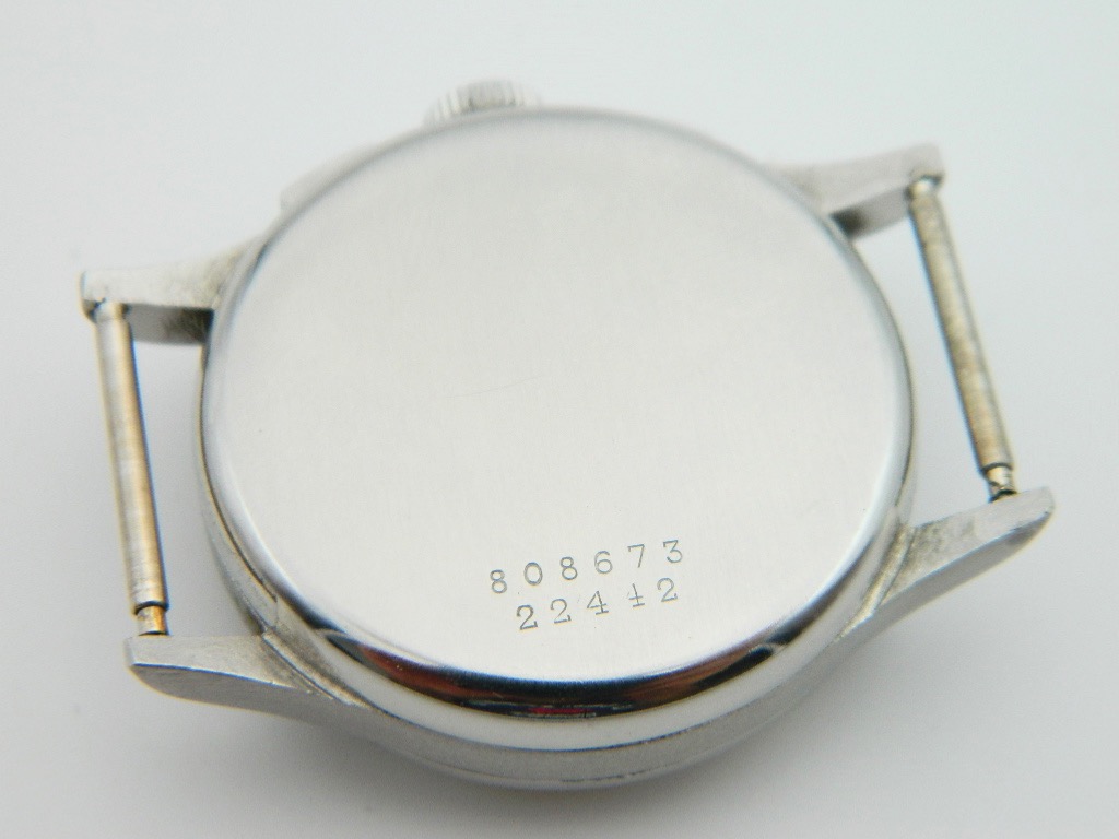 The internal caseback of the Universal Watch "Compur": note the gold title in carats and in thousandths, the "Elvetia" hallmark, the Universal Watch brand, the brand of the case manufacturer (166 = Henri Jeanneret-Peseux, Le Locle), and the serial number (1, 5). It seems that the production of these models lasted only for one or two years, with serial numbers between 551000 and 562.000.
