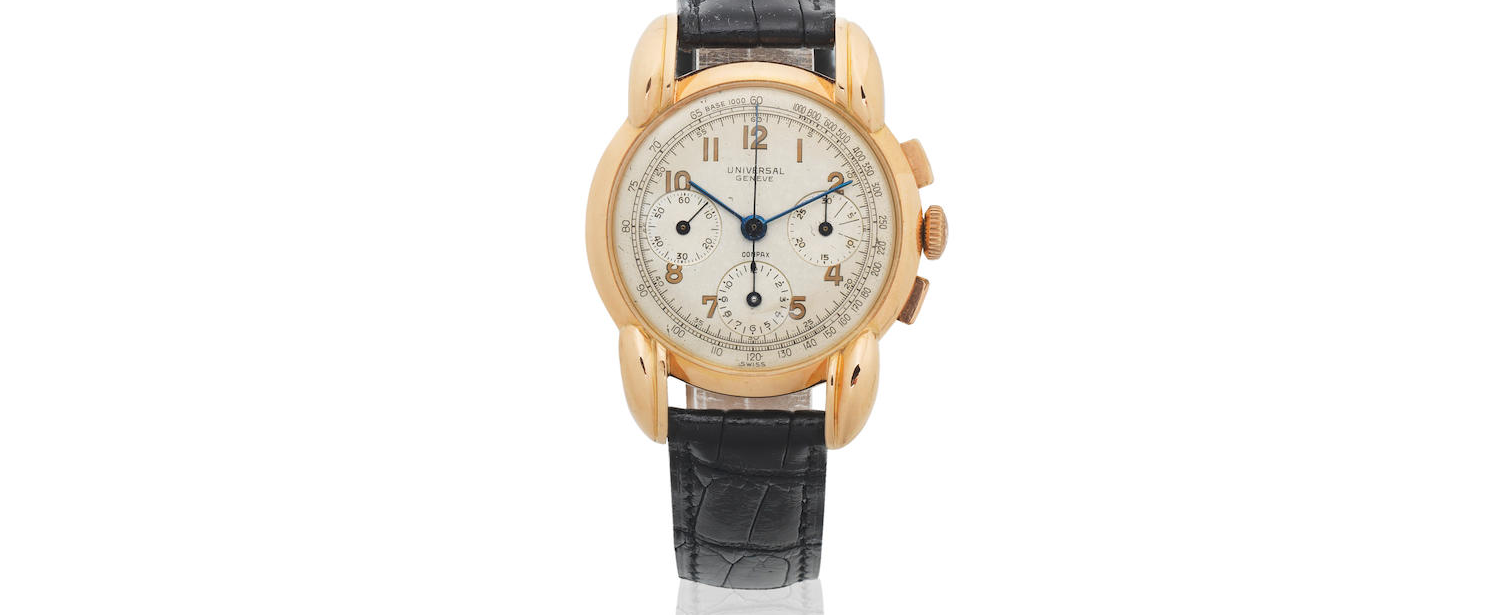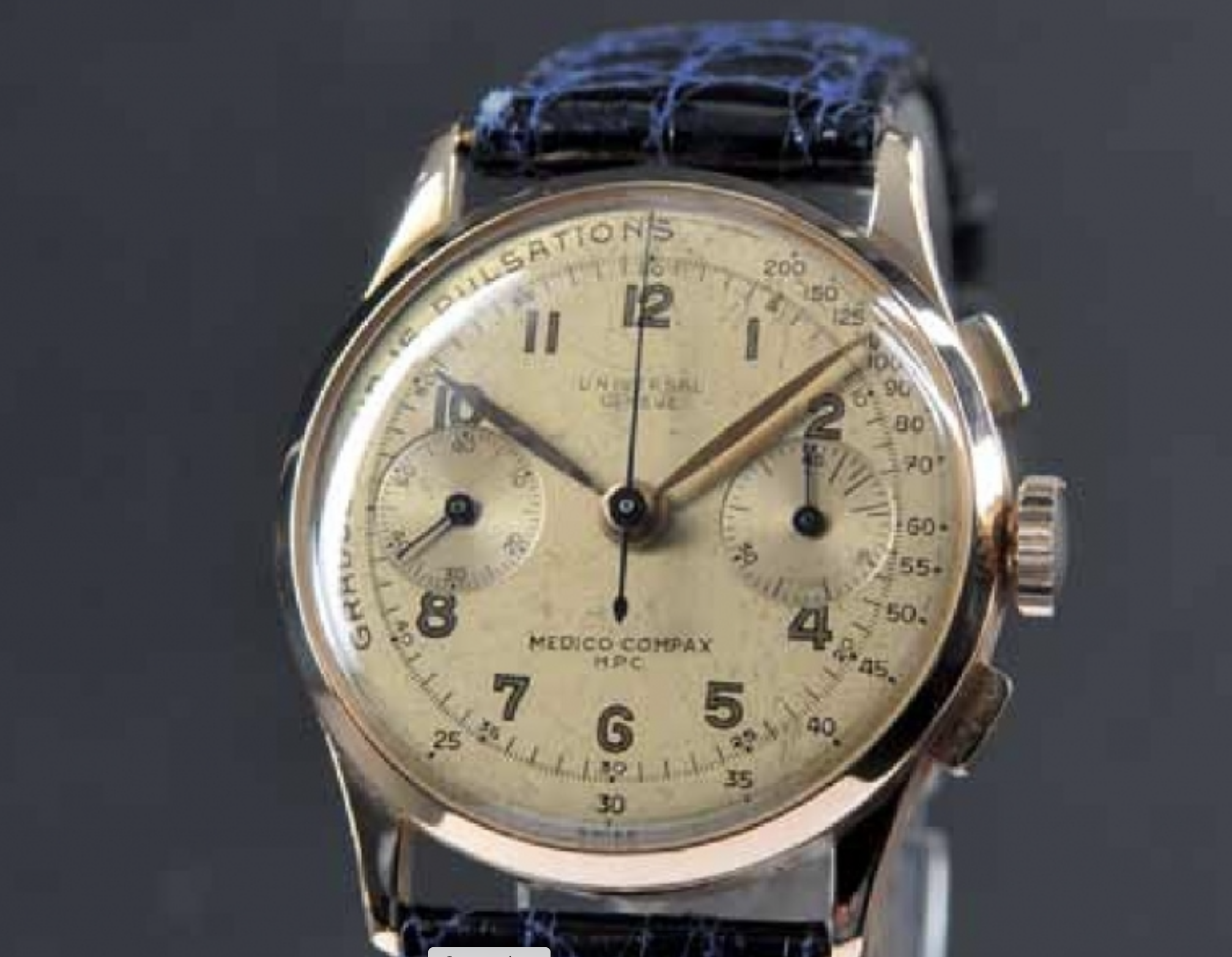 Sellers description "A scarce Universal Geneve Medico-Compax all steel Ref. 224108 doctor`s chronograph, a 1945 medical chrono fitted with its original silvered dial in its original and superior untouched condition".