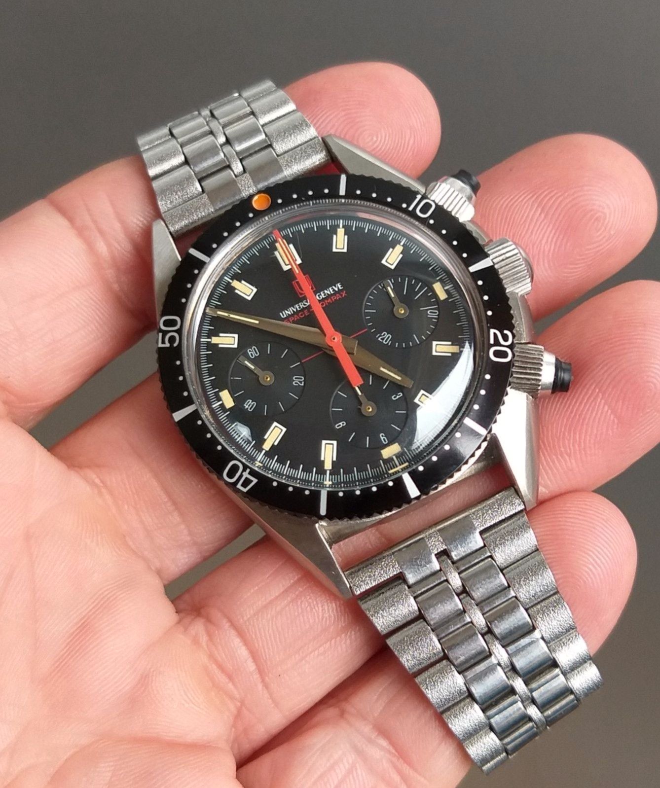 UG disco volante but US import code RXG which, according to Ranfft is 'R. Gsell & Co. Inc., Cortebert, Olympic, Zodiac'. Caseback looks legit UG but appears to be unnumbered (although the pics are not made at the right angle)