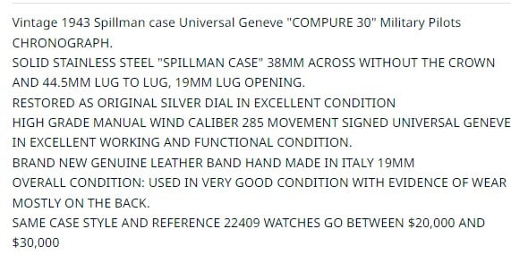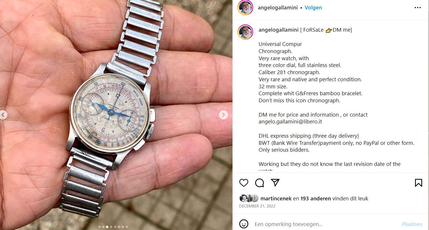 This nice early chrono with (potential) celebrity ownership was sold earlier this week for EUR 4.550 https://www.joron-derem.com/lot/137627/21010754-universal-beau-chronographe-brnpp=50&offset=50&