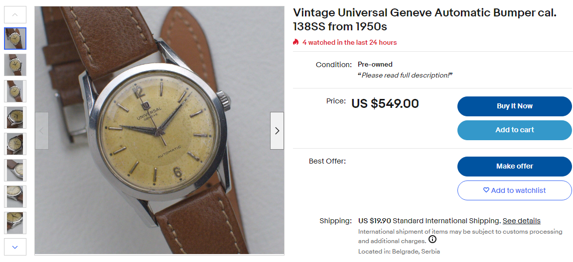 hello this is my first UG watch that I bought I took it for 591 CAD and I think that the hour and minute hands are not original I don't know if it's wrong or if it's it's true otherwise apart from that the case the crown and everything else is original
