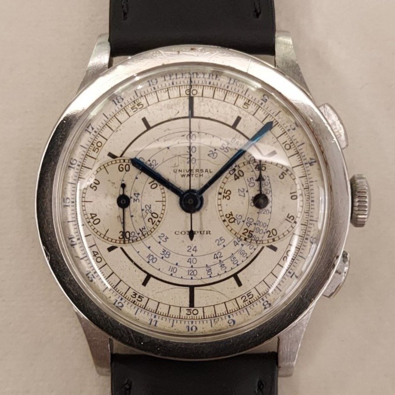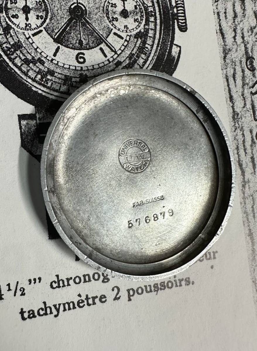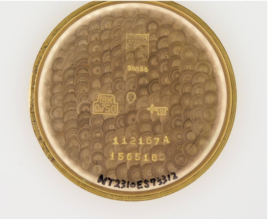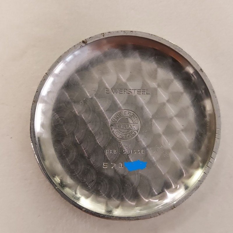 Compur with interesting caseback. Unique shape, number on the upper part (normally always on the lower end) en 'fab suisse'. https://laffichheure.com/accueil/347-universal-watch-compur-1936-.html