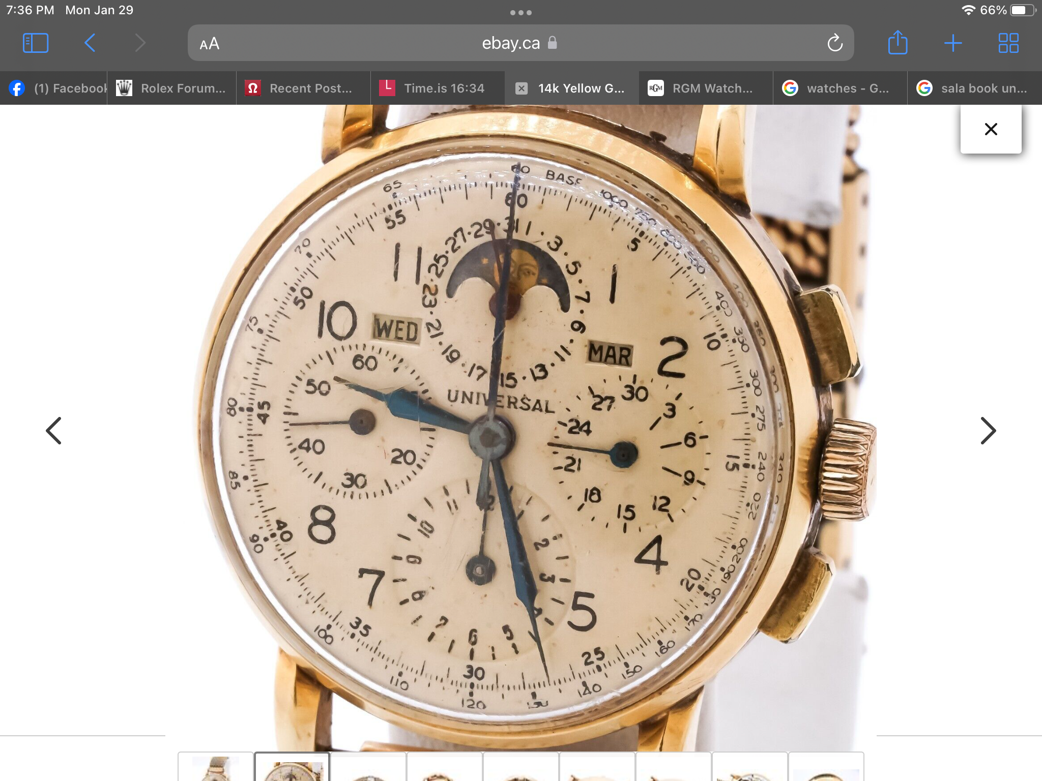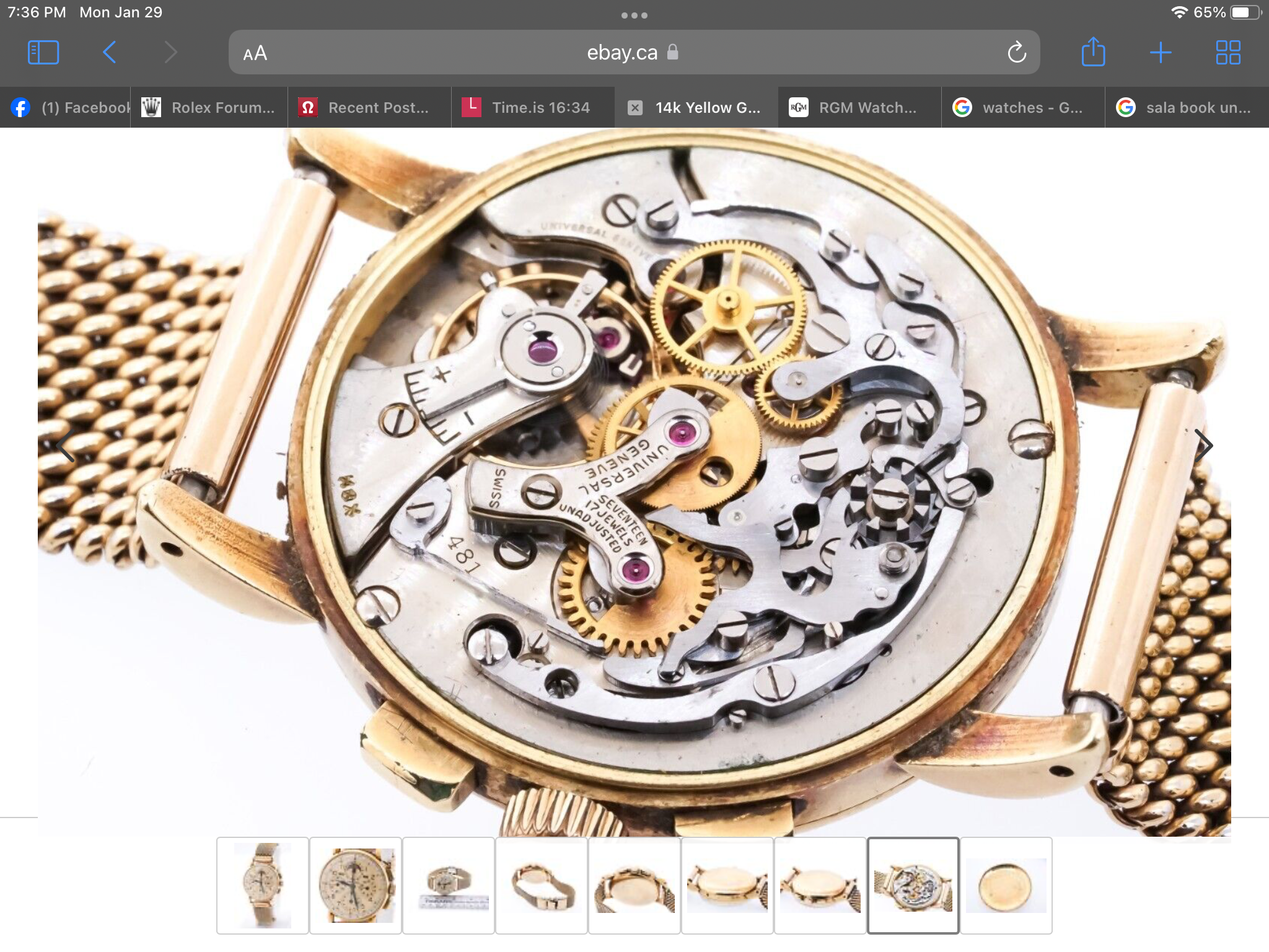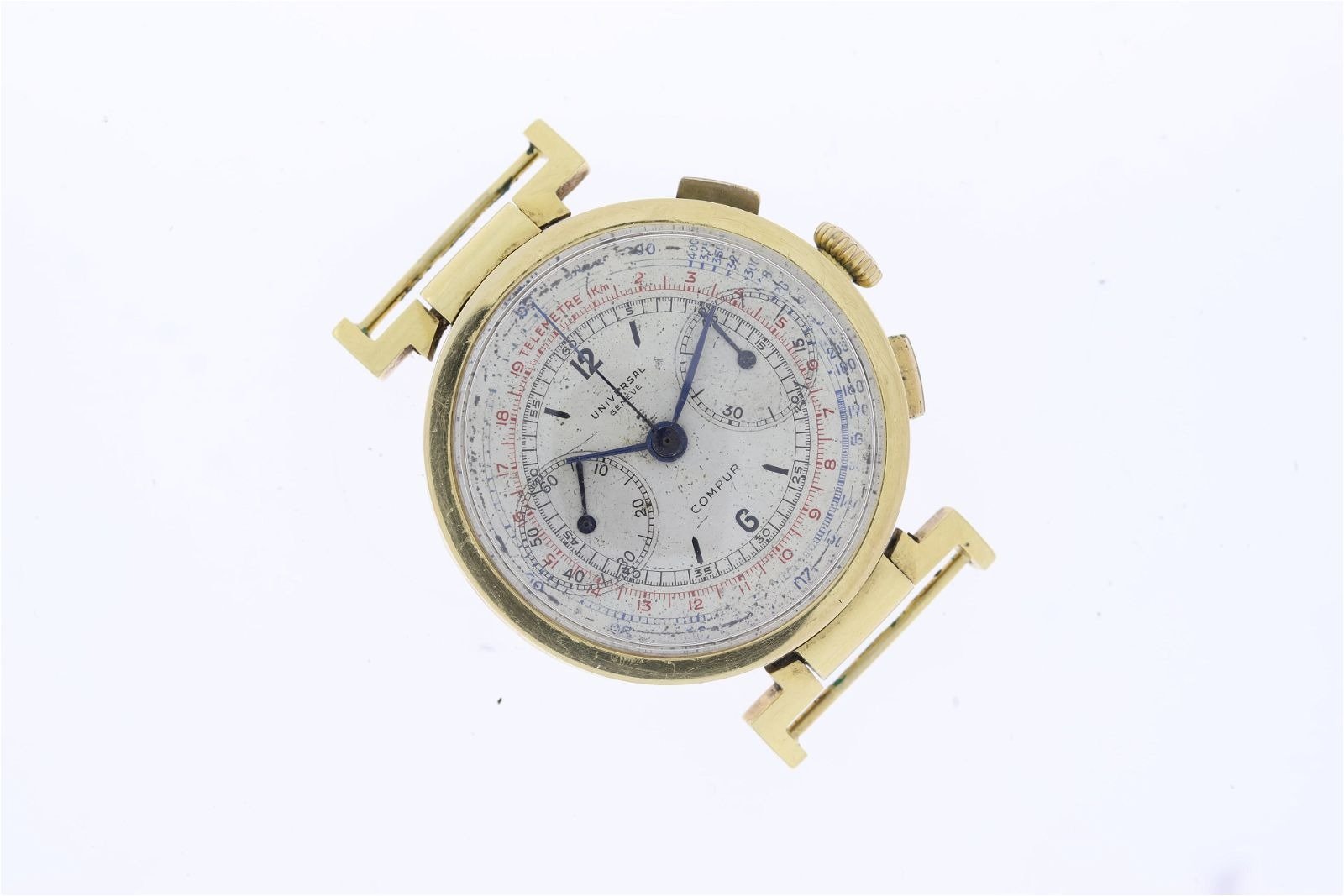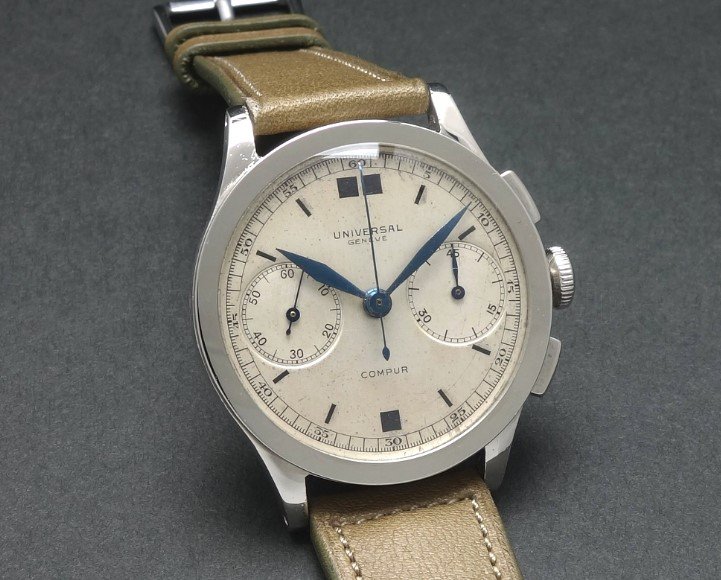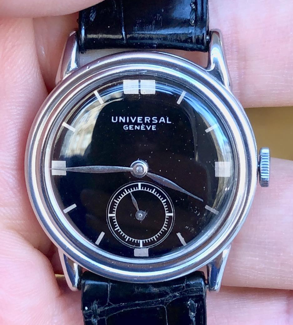 However, the dial makes me question if this is an accurate, non-Frankenstein survivor. I can’t tell from the pictures, but the dial appears to perhaps be enamel? And the dial logo only shows “universal” rather than “universal geneve”. And I’ve never seen that handset either (but I could be mistaken on that one). Could it be an earlier dial swapped to a later watch?