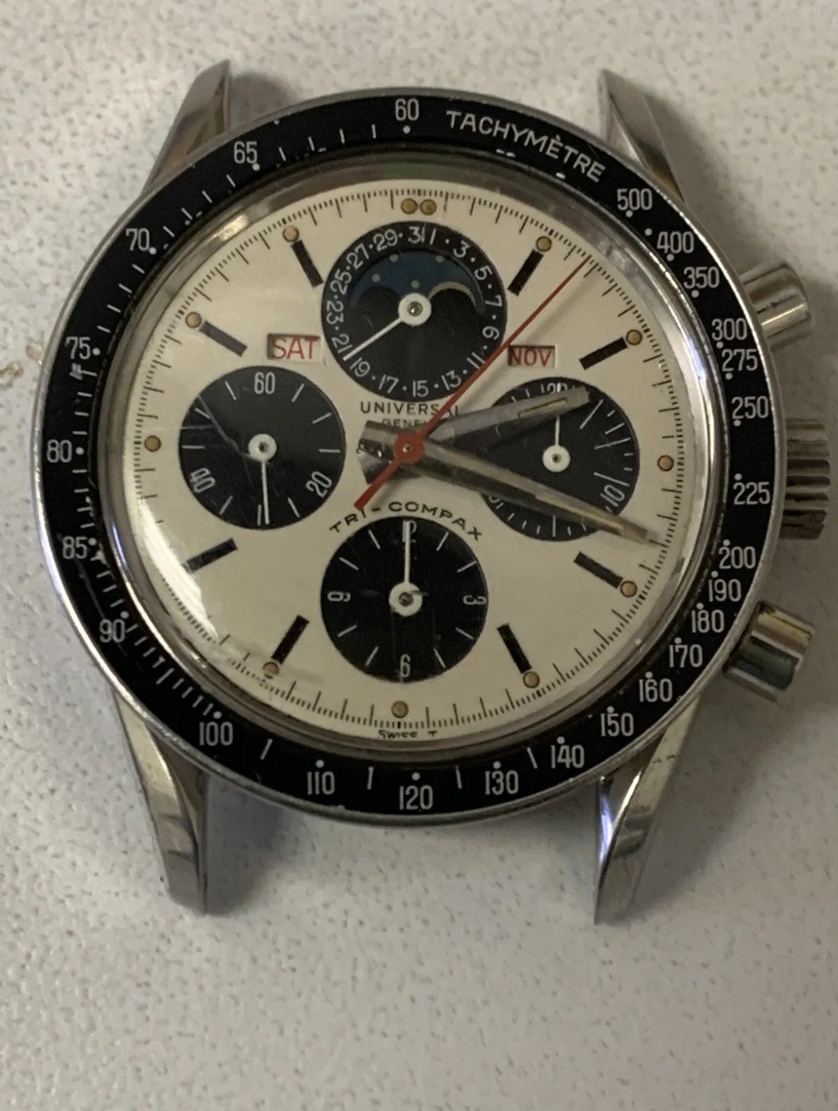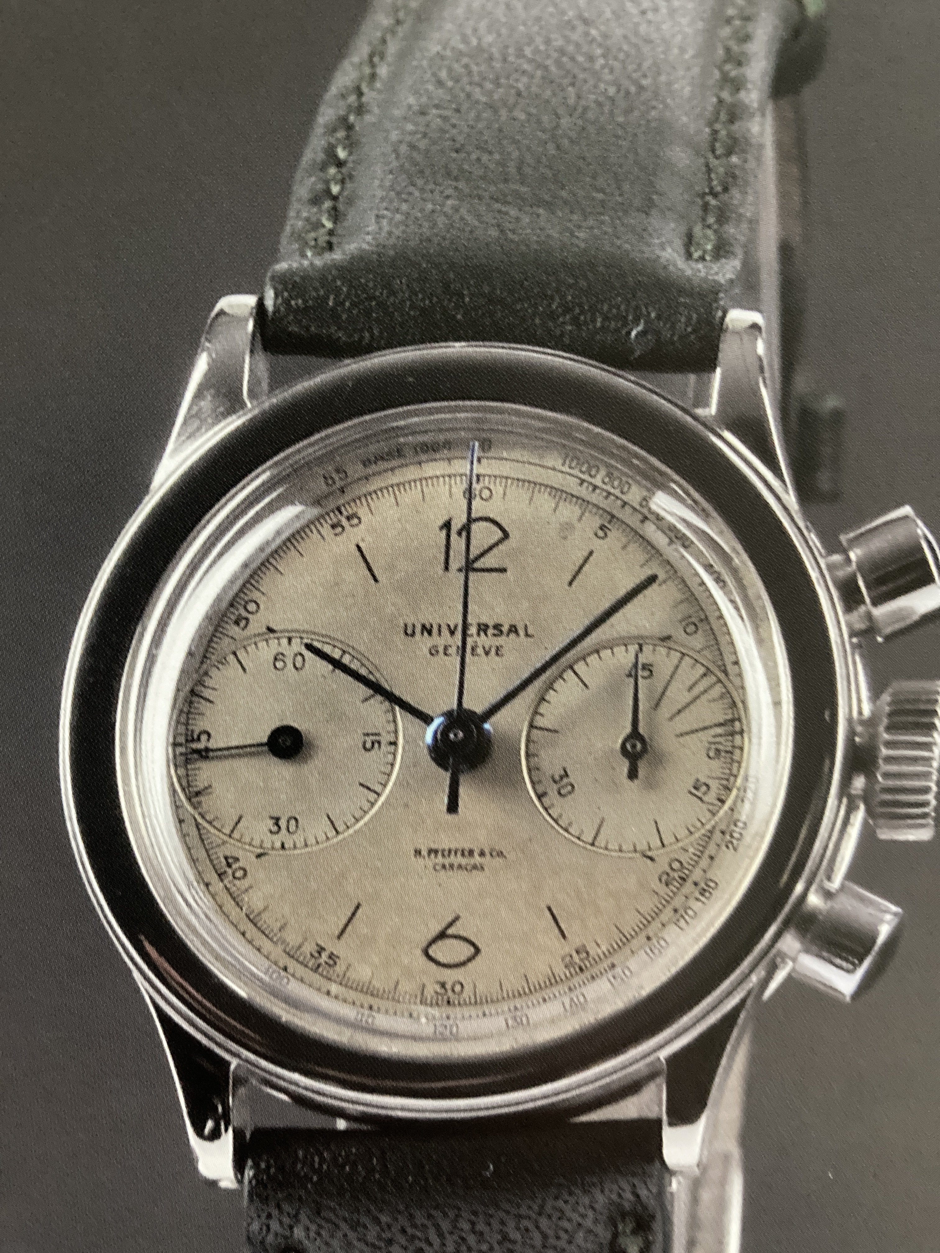 ·I’ve seen 3 Universal Geneve with this case and 2 Zenith. Greg Selch has a UG one with a black dial. I have a Zenith one in 18k pink gold (the only gold one I’ve seen) but it was unfortunately polished at one time. It was made by George Croisier in the late 30’s. Great stuff.