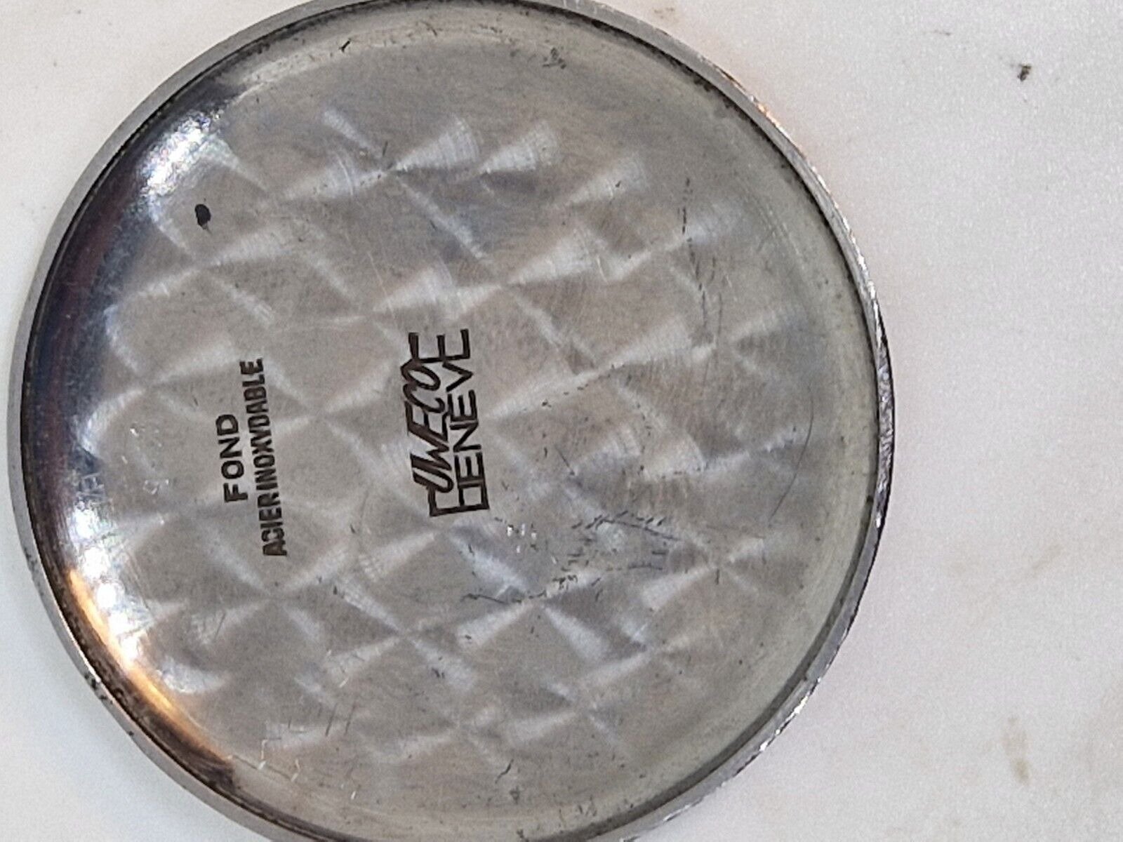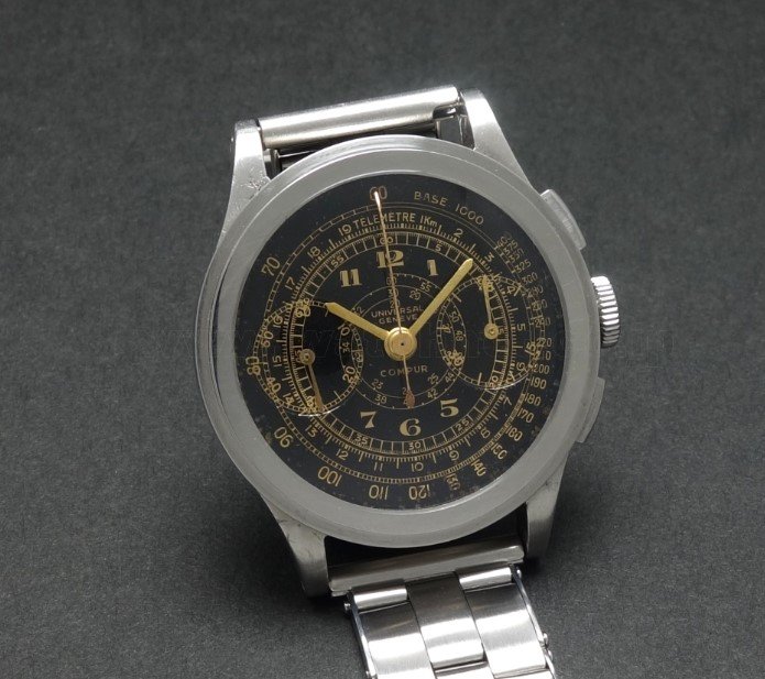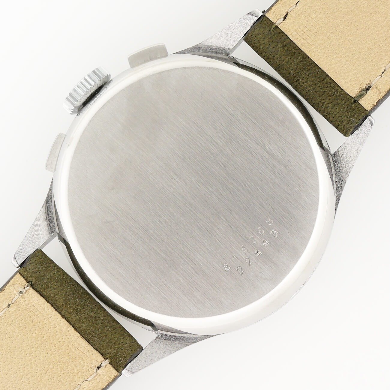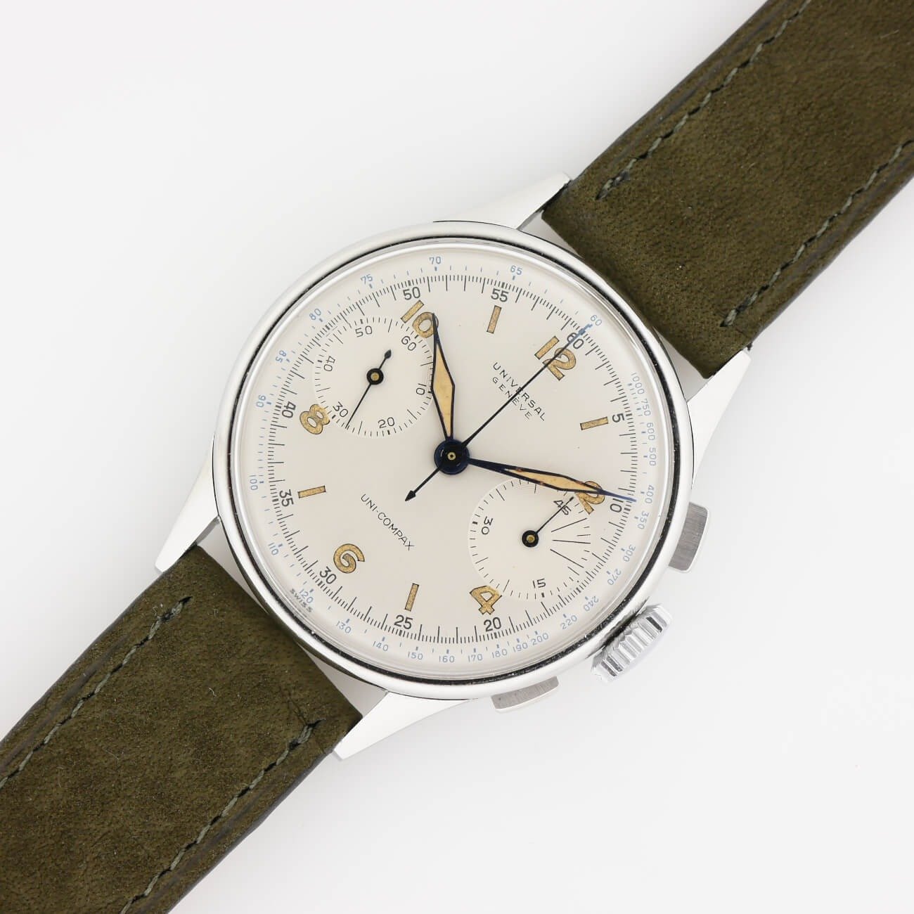 The crown and probably the crystal are replacements, but the crystal has cracked anyway. Bad relume job on the hands and missing lume on the misaligned chapter ring. Case seems ok and not too terribly overpolished.