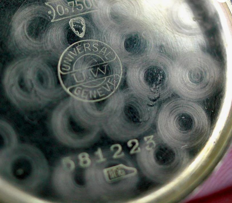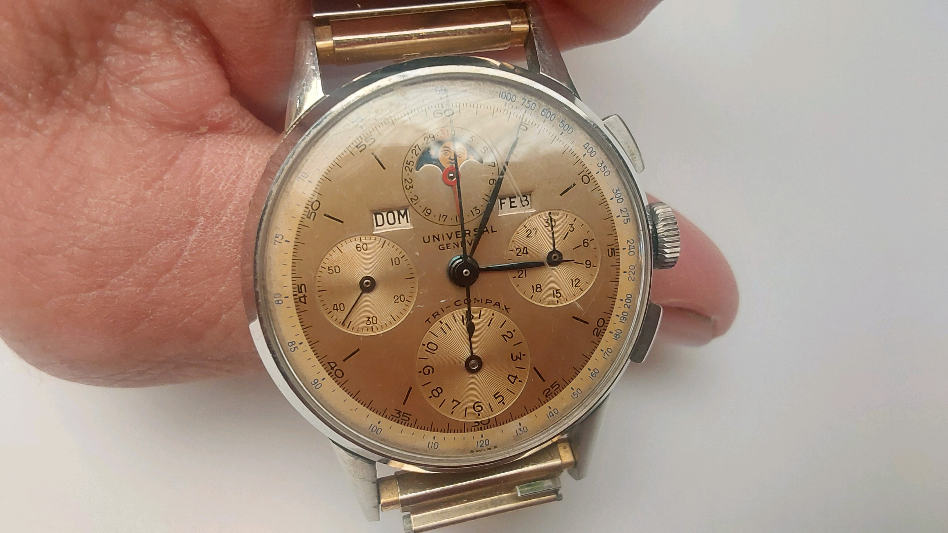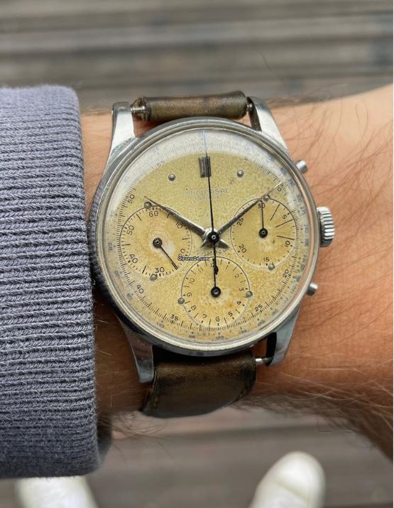 https://www.chrono24.nl/universalge...36522411.htm?searchHash=72bd11d2_yg0cLd&pos=3Funny one. Seller says: 'Diese Uhr ist komplett original und wurde seit dem Kauf nicht berührt.' which means the watch is completely original and untouched since I bought it. Which may be true since it was acquired on 22 Sept in the USA... (https://www.ebay.com/itm/296688435232)