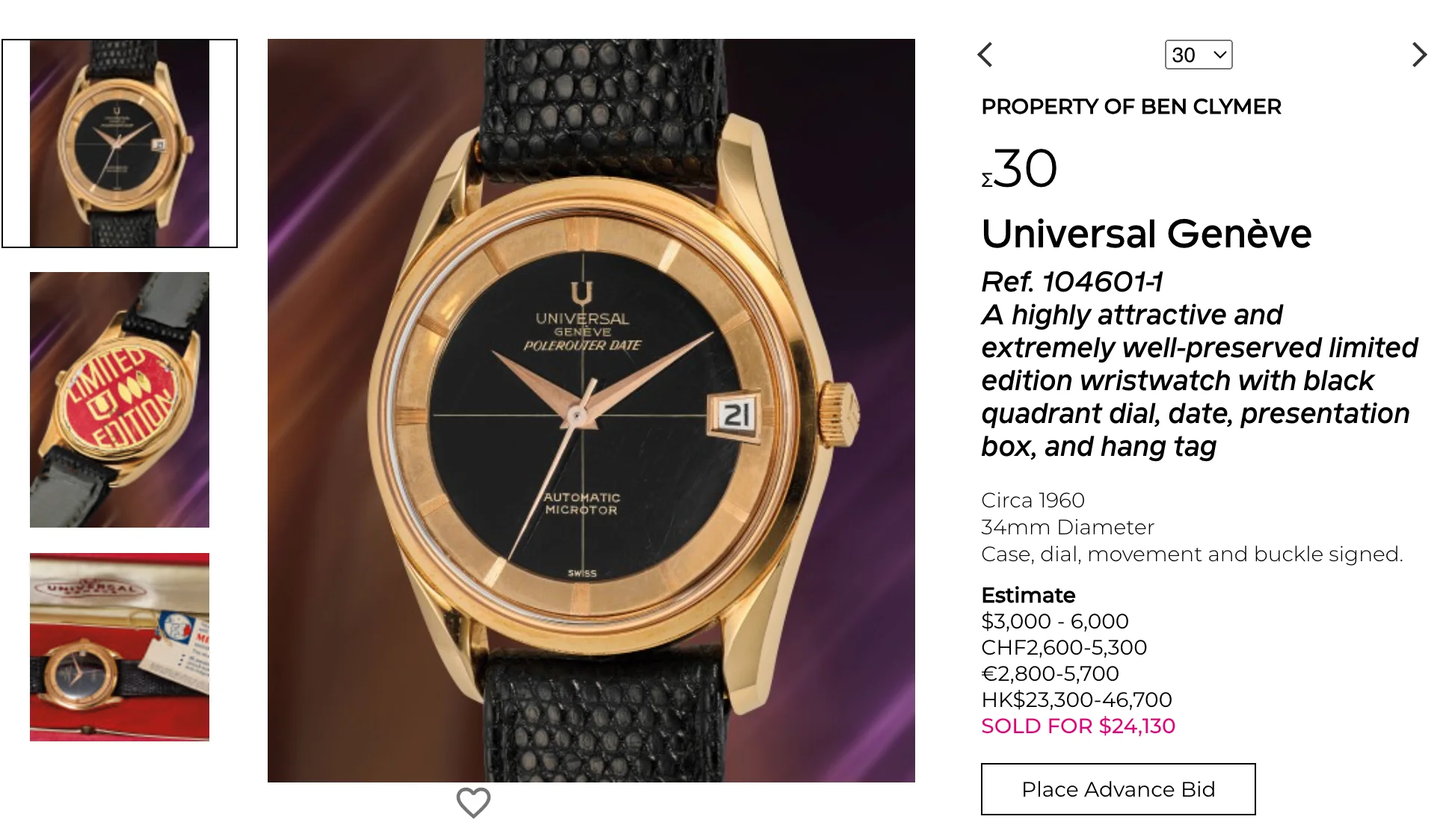 ·For those that like to keep track, the Clymer Gold Polerouter went for USD 24k and some (which I assume is with commission since it was 20k or so earlier in the day). Great timing with the UG re-release hype + the well articulated article about rationalising the reasons for selling certainly helped. Also, as someone has already said, this is likely all the justification needed for the new Polerouter launches being 10k+ watches...