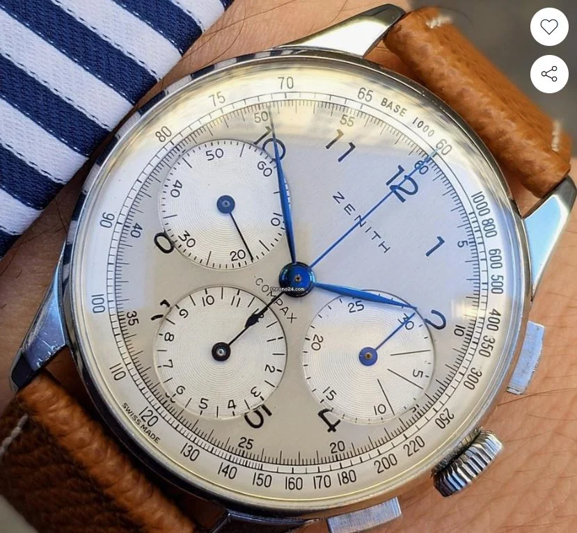 Interesting 22506. At first glance a nice one but I have my (strong) doubts about the dial. Curious to hear what other people think https://www.chrono24.nl/zenith/comp...37994770.htm?searchHash=8d74d8af_UWRVuW&pos=8
