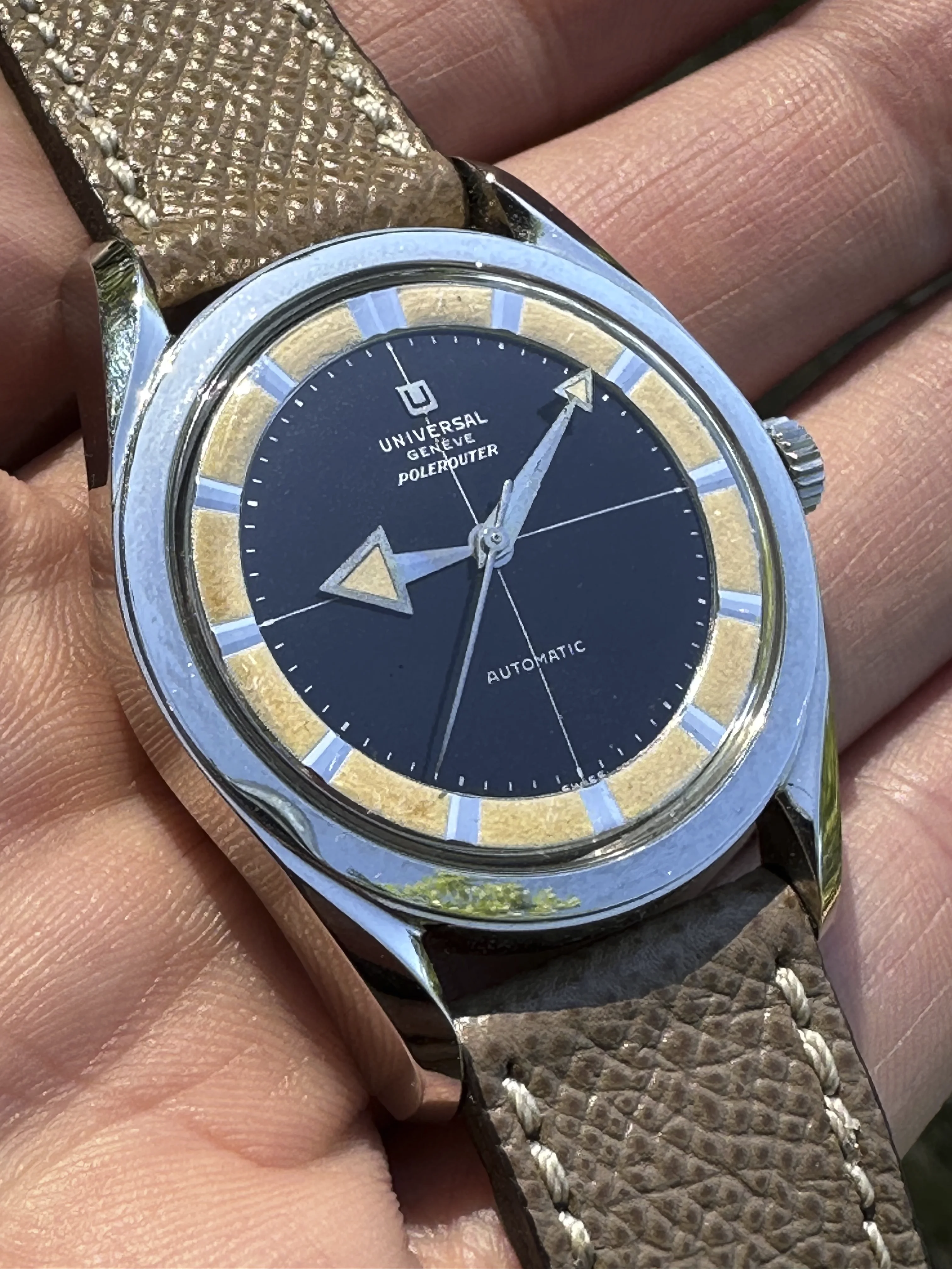 ··not the sharpest pencil in the ΩF drawerSome traders are really shameless. Seller first tried to sell this 22276 with a white dial but now it has a black (fantasy) one: https://www.chrono24.nl/universalge...39172241.htm?searchHash=230953fd_bZn2ik&pos=2
