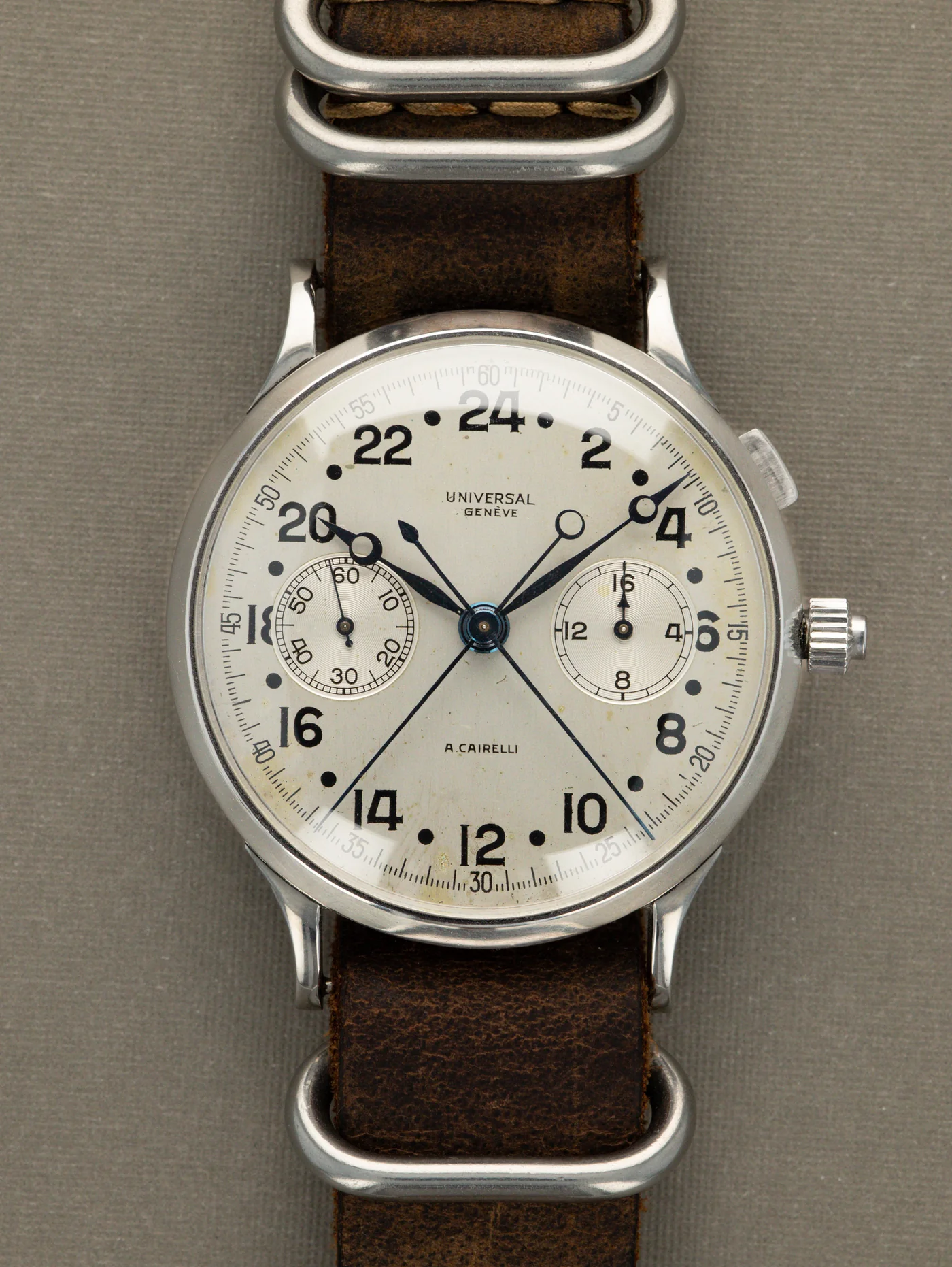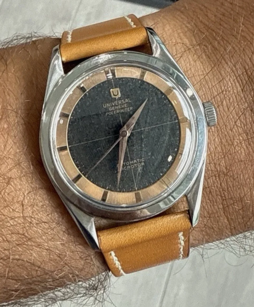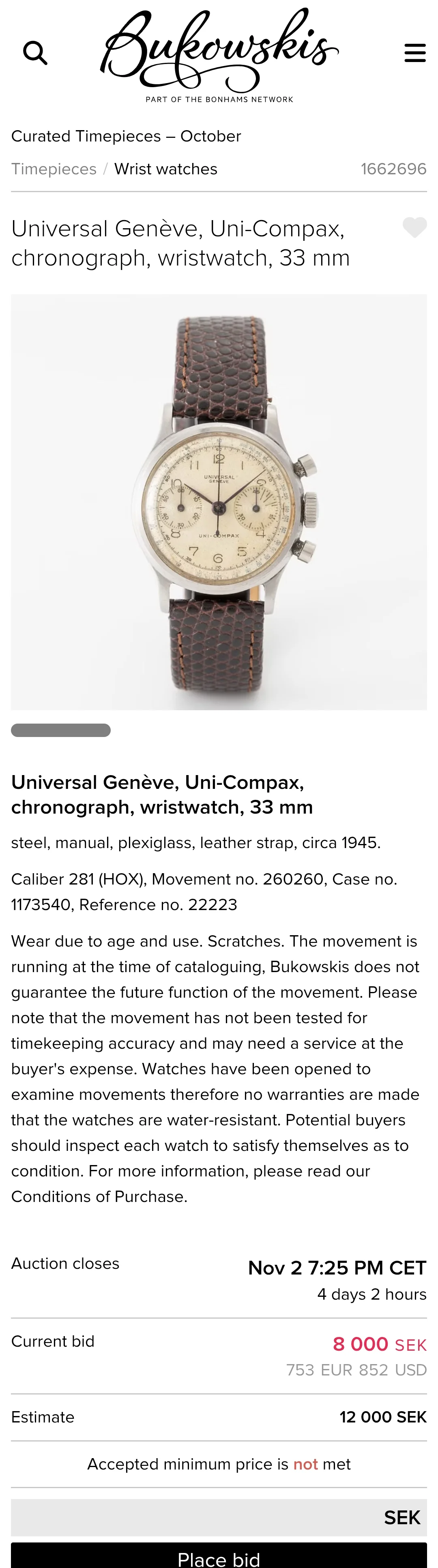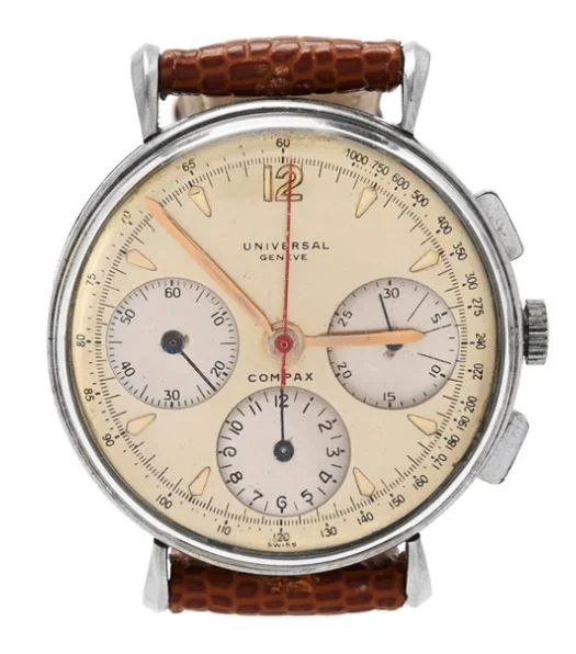 ··Color Commentator for the Hyperbole.I've never posted an available watch here, but I noticed this Jaeger LeCoultre by Universal Geneve posted on the auction site where I bought my Tri-Compax from a post here, so I thought I would pass it forward. Looks pretty cool to me. https://www.bukowskis.com/en/auctions/667/1032-jaeger-by-universal-geneve-jumbo-chronograph-ca-1950
