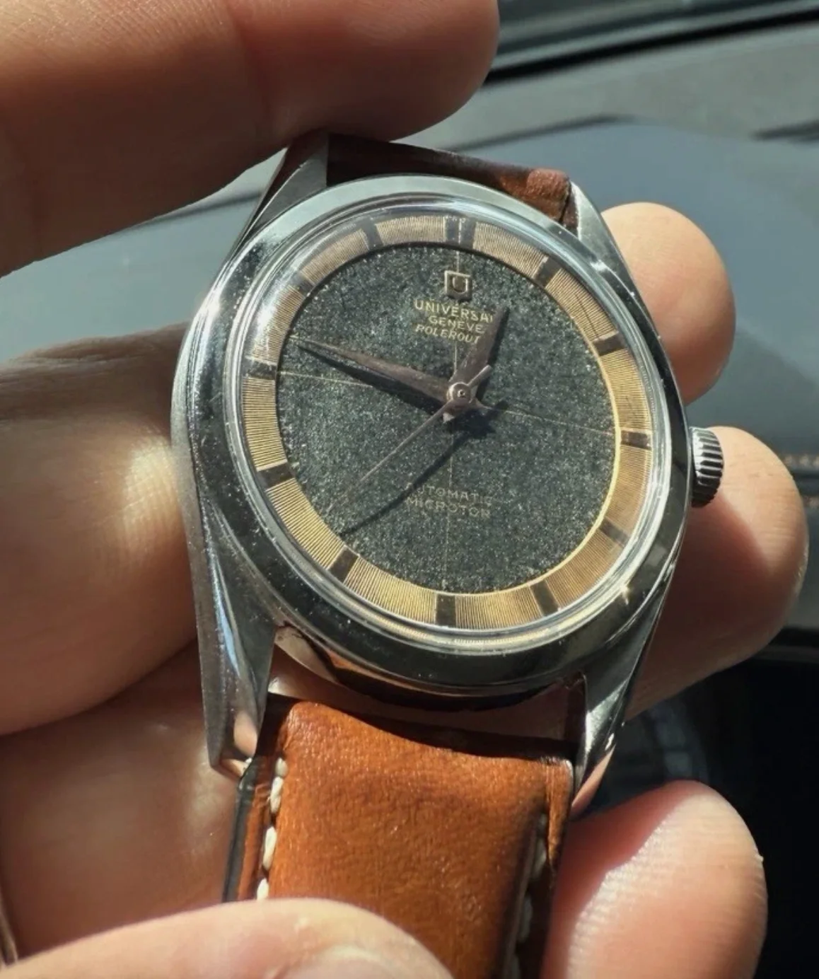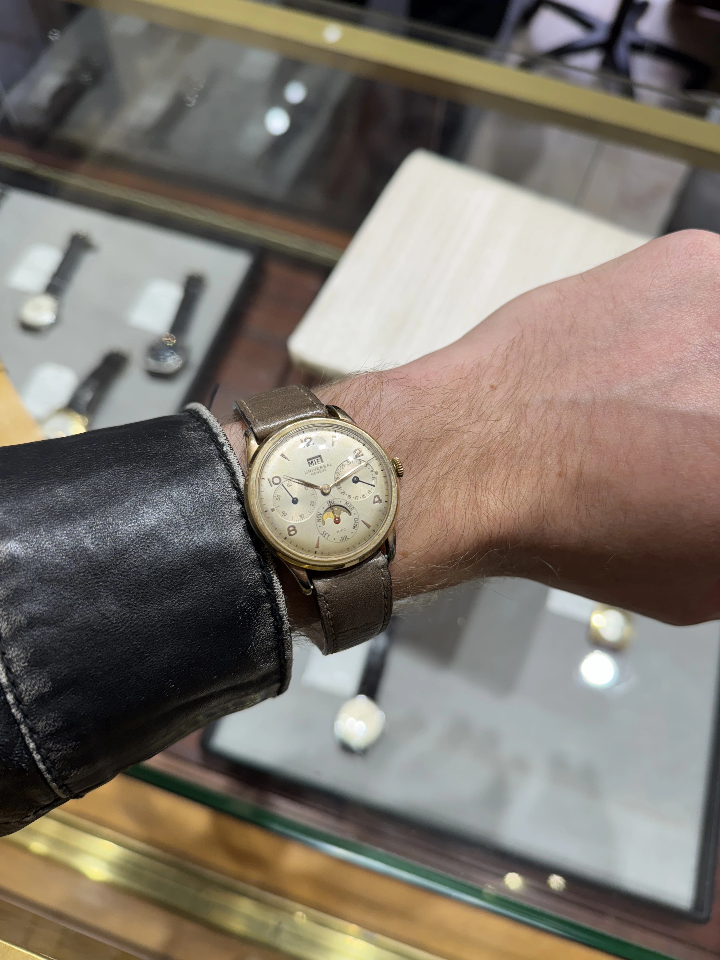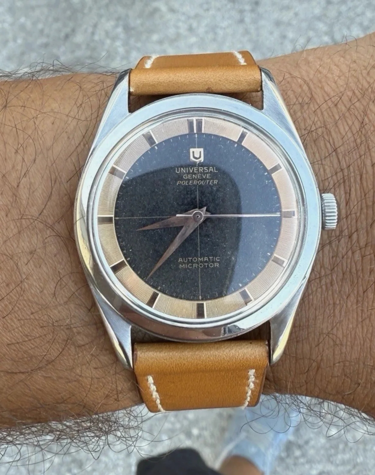 ··Color Commentator for the Hyperbole.I've never posted an available watch here, but I noticed this Jaeger LeCoultre by Universal Geneve posted on the auction site where I bought my Tri-Compax from a post here, so I thought I would pass it forward. Looks pretty cool to me. https://www.bukowskis.com/en/auctions/667/1032-jaeger-by-universal-geneve-jumbo-chronograph-ca-1950