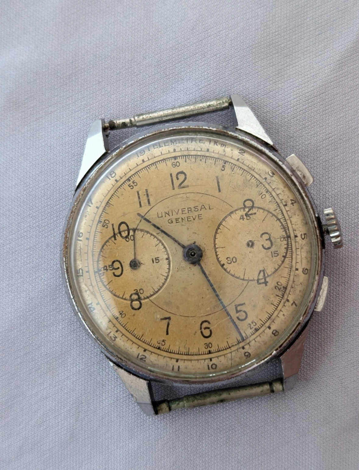 gold tri with service dial, nice aged hands