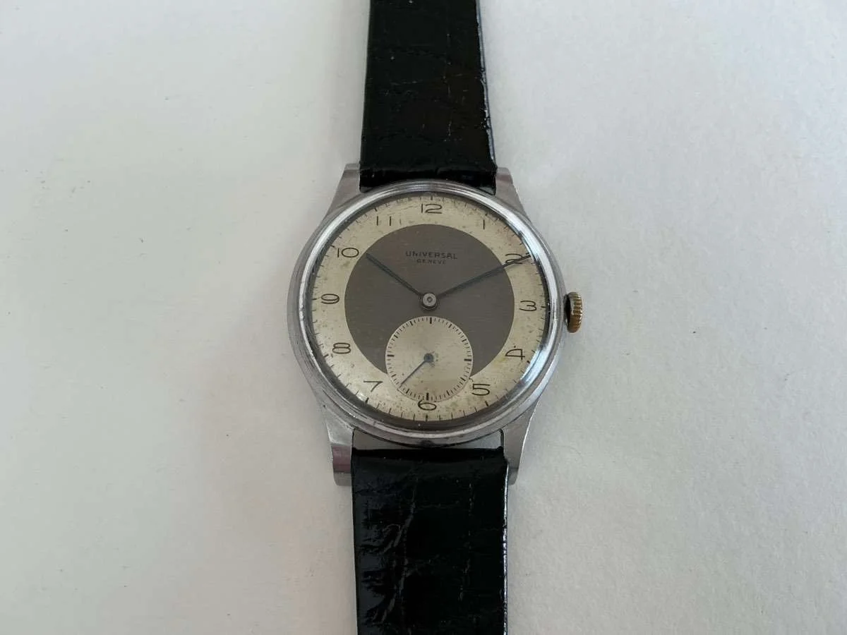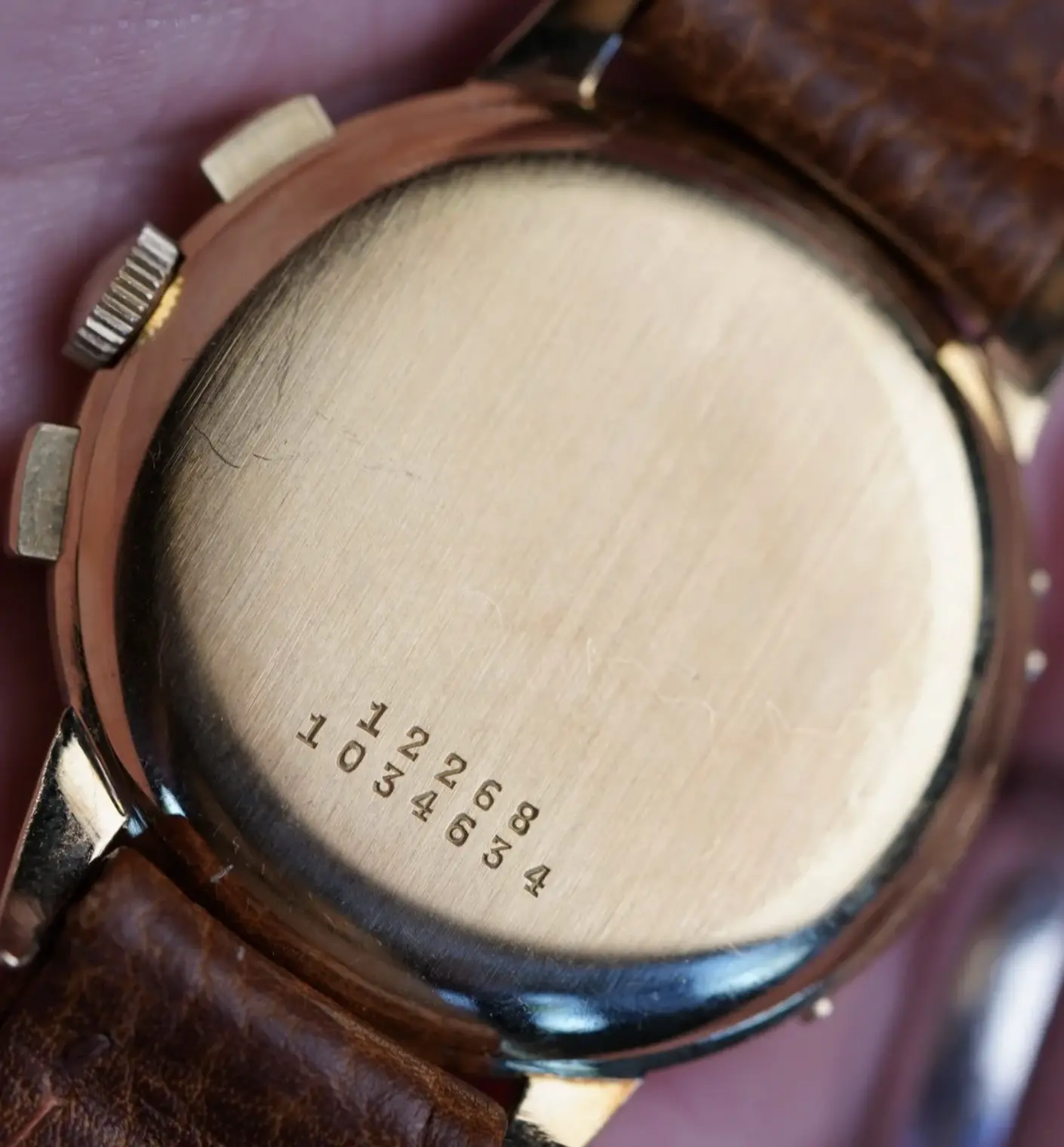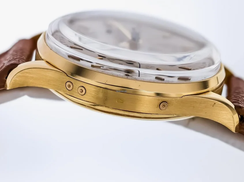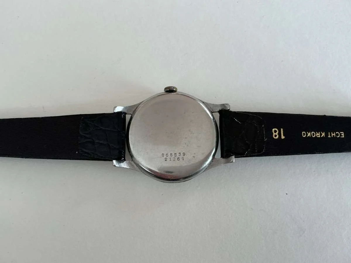 - Case looks sharp from the angles shown, with bevels well defined. The distinction between the brushed and polished section seems almost too sharp -- maybe refinished well? (I can't make out the stamping on the side of 9 o'clock, but it's not polished away)