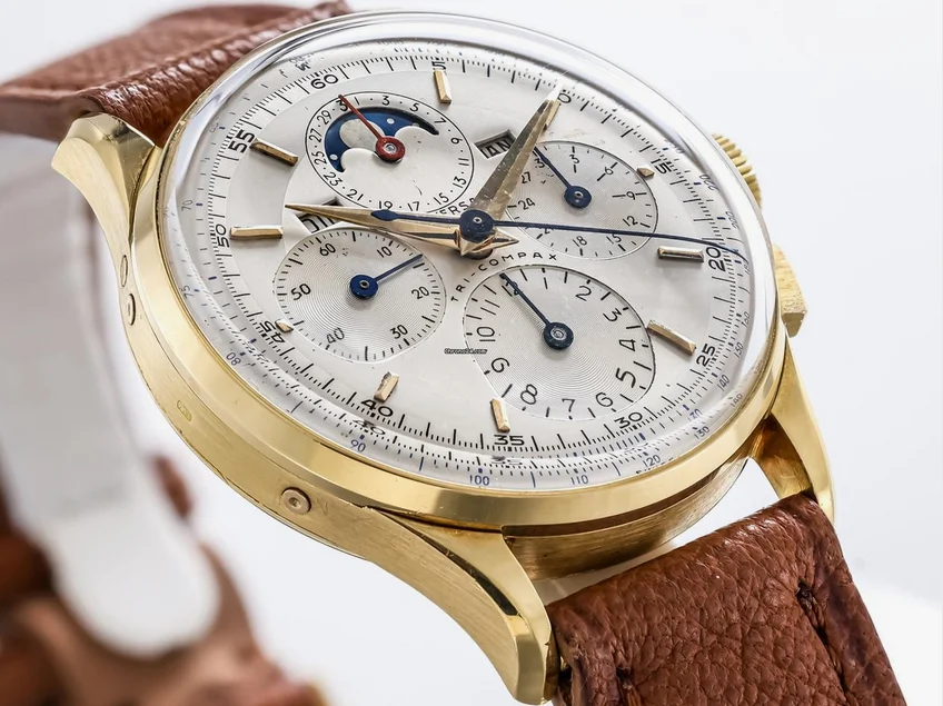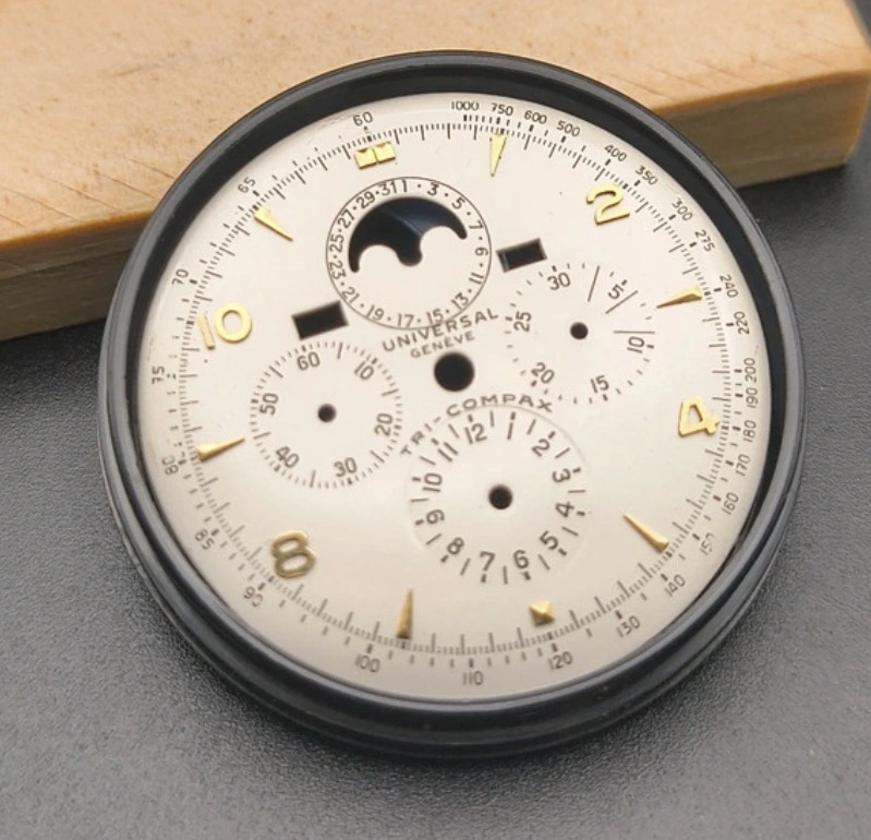 - "Tri-Compax" text is smaller and higher than on reference dials