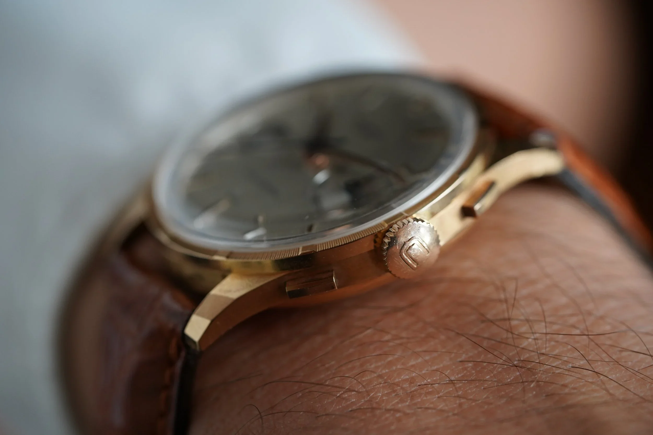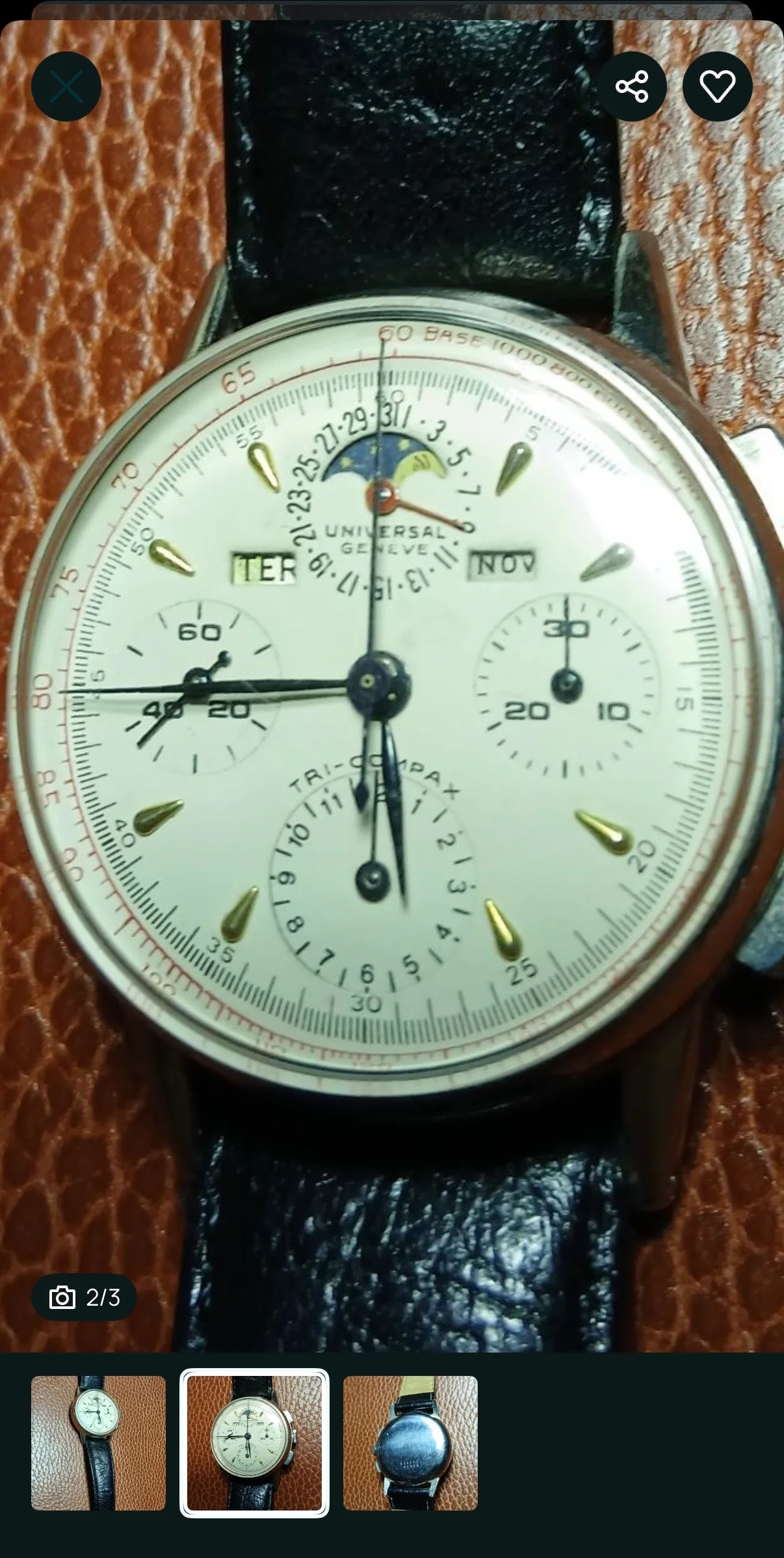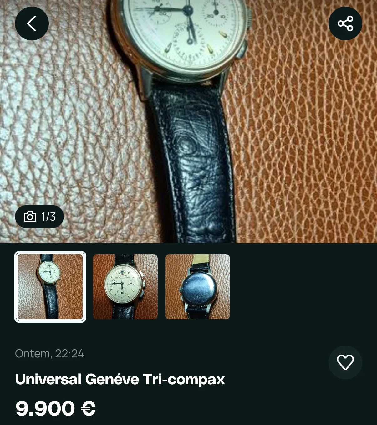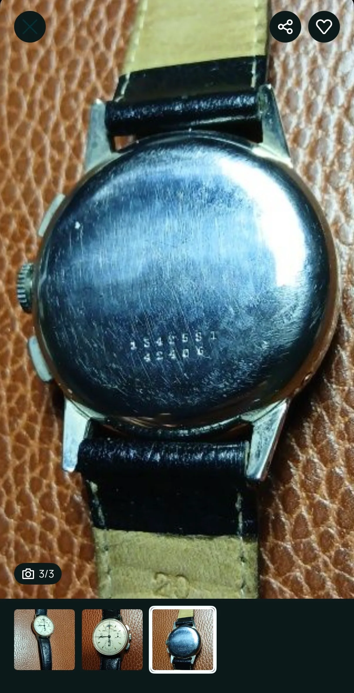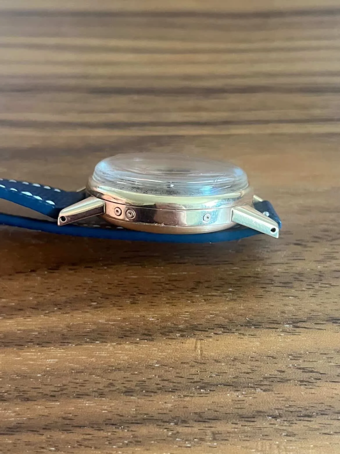There's a nice looking Tri Compax on ebay. I question whether the crown and hands are original, comparing to pictures in Sala's book, but the rest looks good to my novice eye. Shouldn't all the subdial and chrono seconds hands be blued? The lighting in the pictures makes it hard to tell if that's the case here. Nice clear stamping on the caseback -- it seems most examples have been worn or polished to a high sheen.