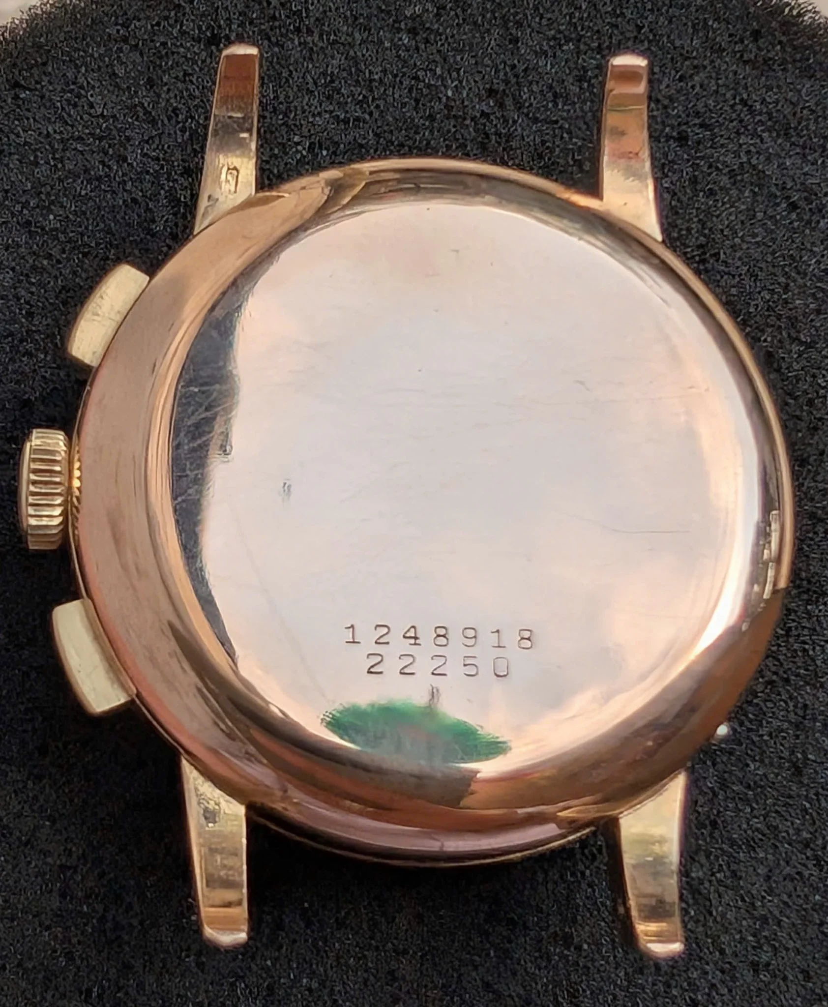 Anyone a clue what is going on here? A 22250 with an 18K gold case. Engravings on the inside look a little wonky... https://www.facebook.com/groups/176382652558333/permalink/2980981812098389/