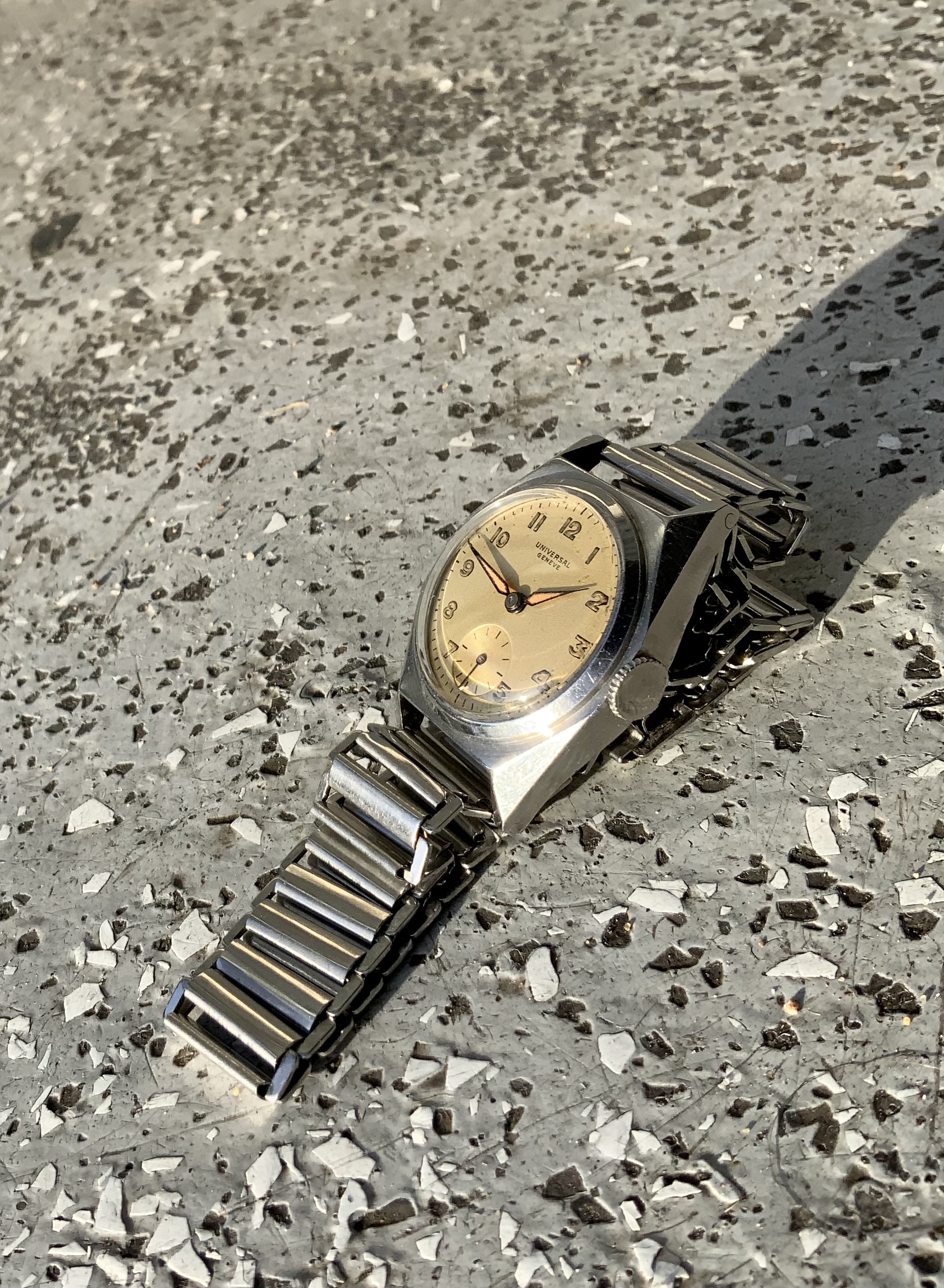 This Universal Sport reminds me of yours, condition not as good, and it was missing the same type double bayonet caseback that yours has, which I finally gave up any hope that I could ever find....