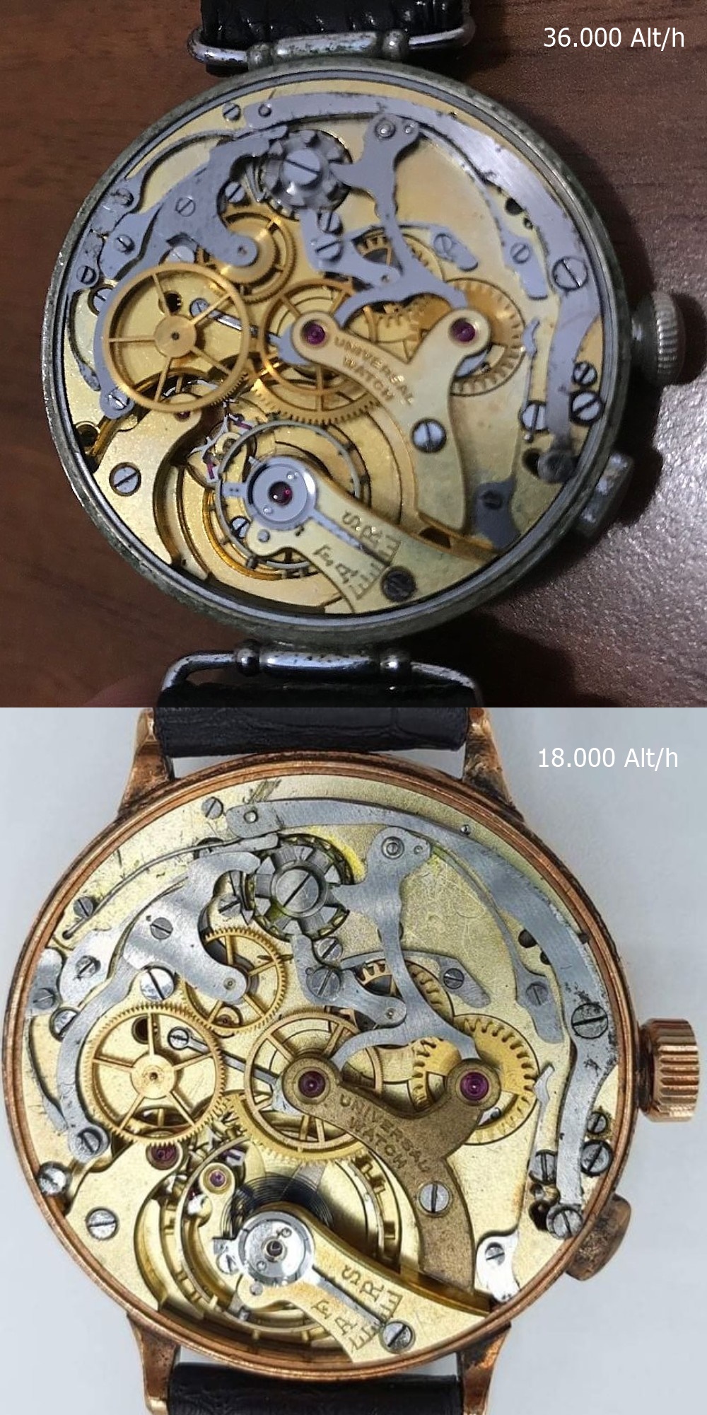 On the Italian forum Orologi e Passioni, a friend has presented this Univeral Watch mono-pusher chronograph, with a push-button at 2 o'clock, with calibre 14 ½, "', serial number 500.XXX, which has the peculiarity, more unique than rare, of being able to time the 30 seconds with a resolution of 1/10th of a second.