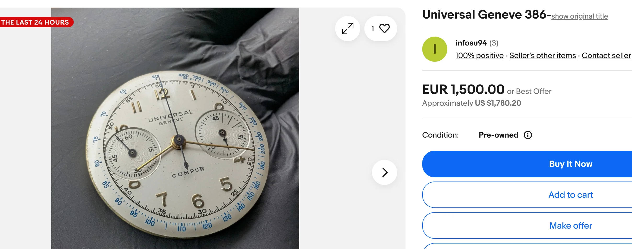 - Cassa in oro 18 carati il numero di serie 793XXX data la produzione esattamente al 1940-1941 . Il numero di riferimento segue la codifica scientifica Universal: "1" per oro 18 carati, "2" per cronografo e "4" specificamente per la famiglia di calibri 285/385/386 .