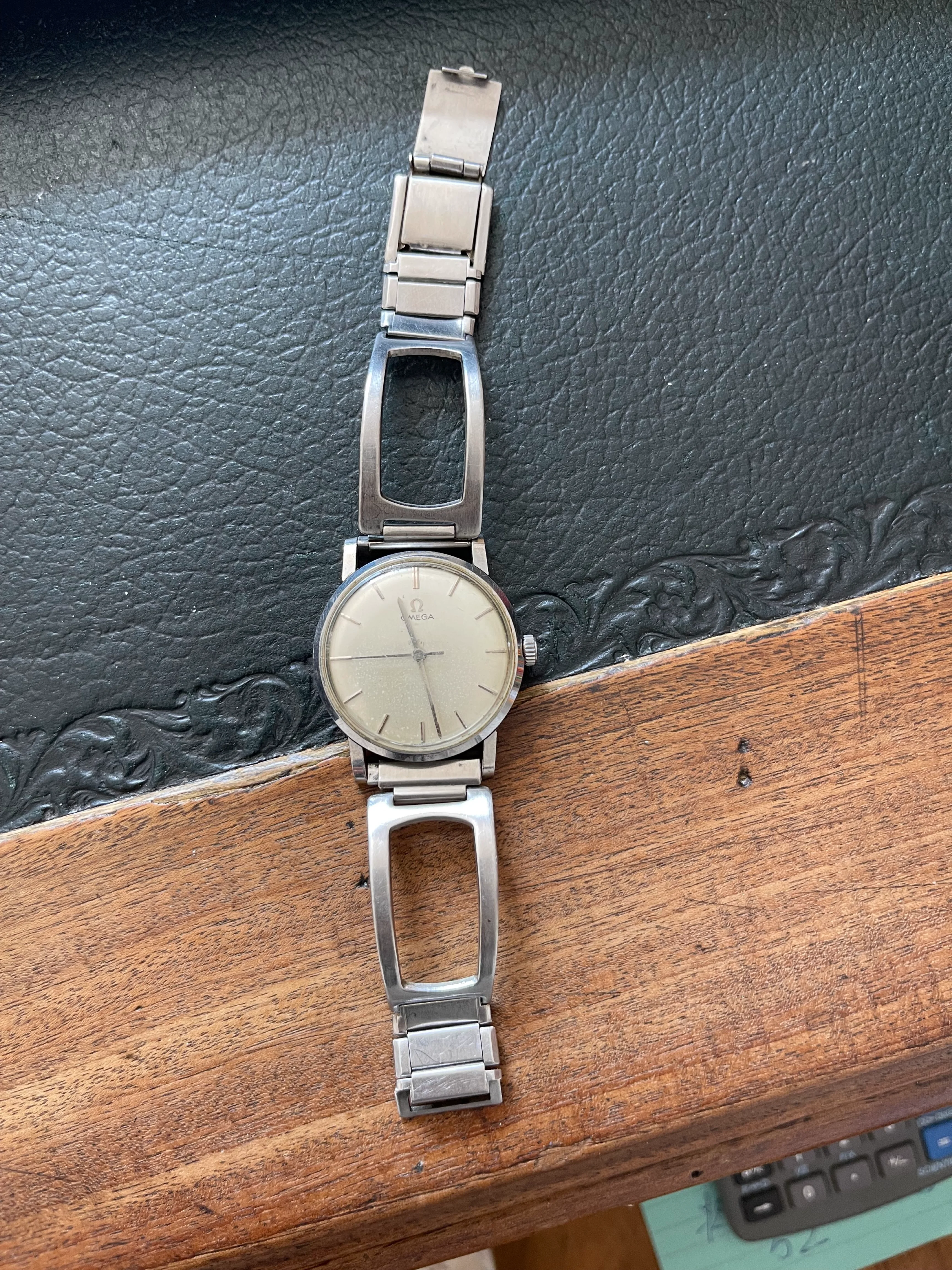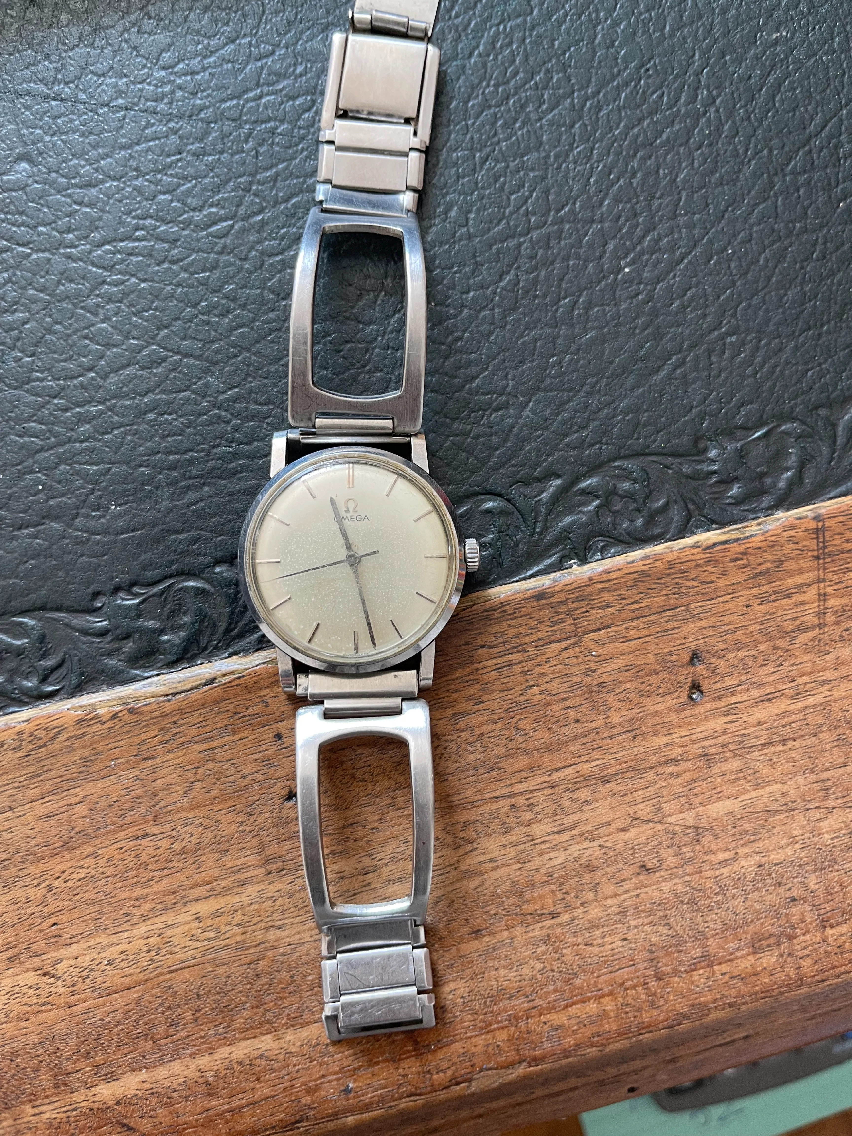 ·HI folks, just found this beauty in my grandpa's stuff and after a long search I can't find anything on internet about this model. Found many model that look a bit like it, but there's just the omega logo and nothing more (no seamaster or deville stuff). And most of all, I can't find anything about the bracelet. I think it was a gift for him around 60's or 70's but nothing more.