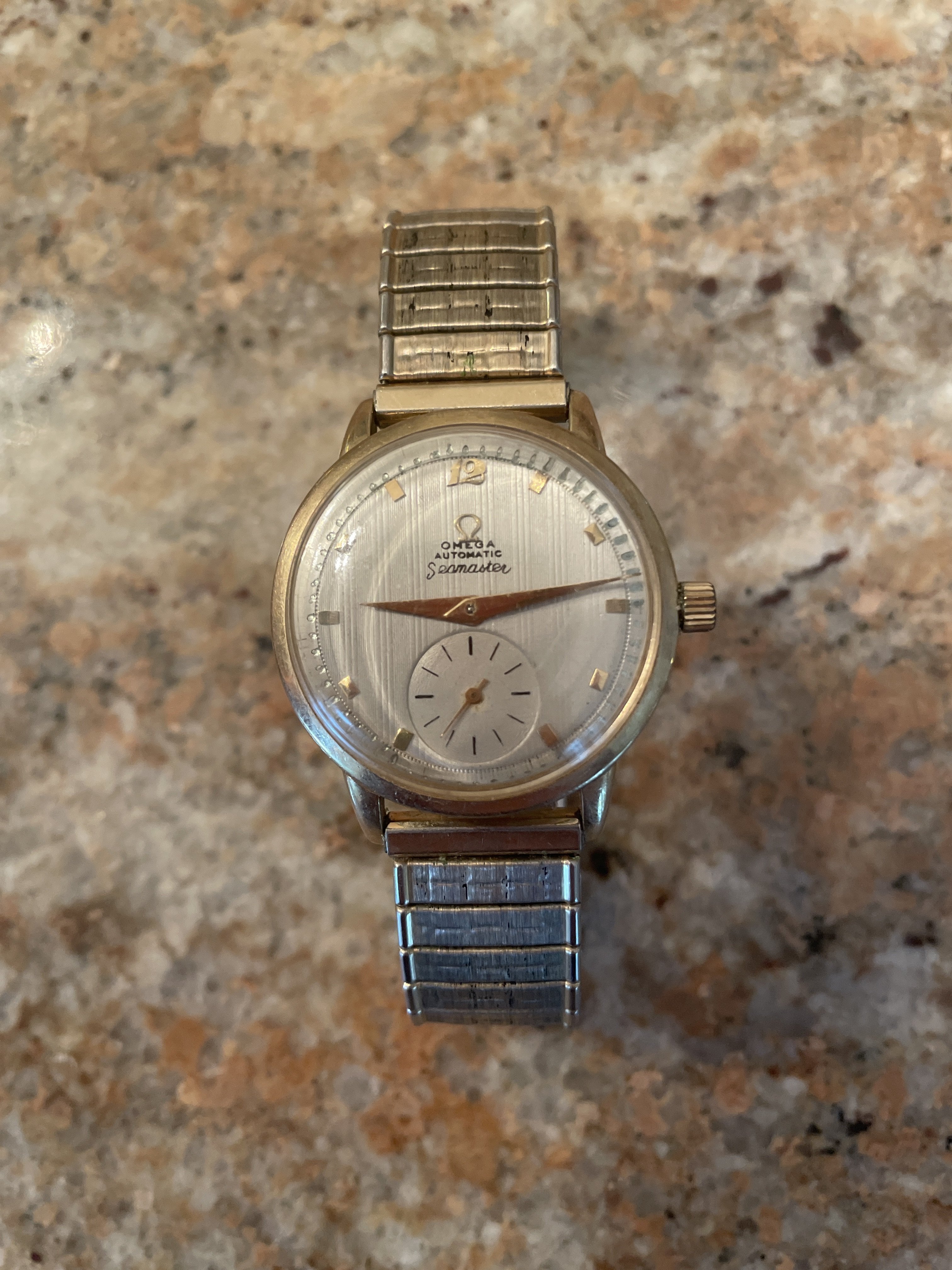 The most we can say from that photo is that the dial is not original from the Omega factory. Best case scenario it is an authentic Omega watch with a repainted dial. Worst case scenario is that the watch is a knock-off. More photos from other angles, including of the inside, will tell the story.