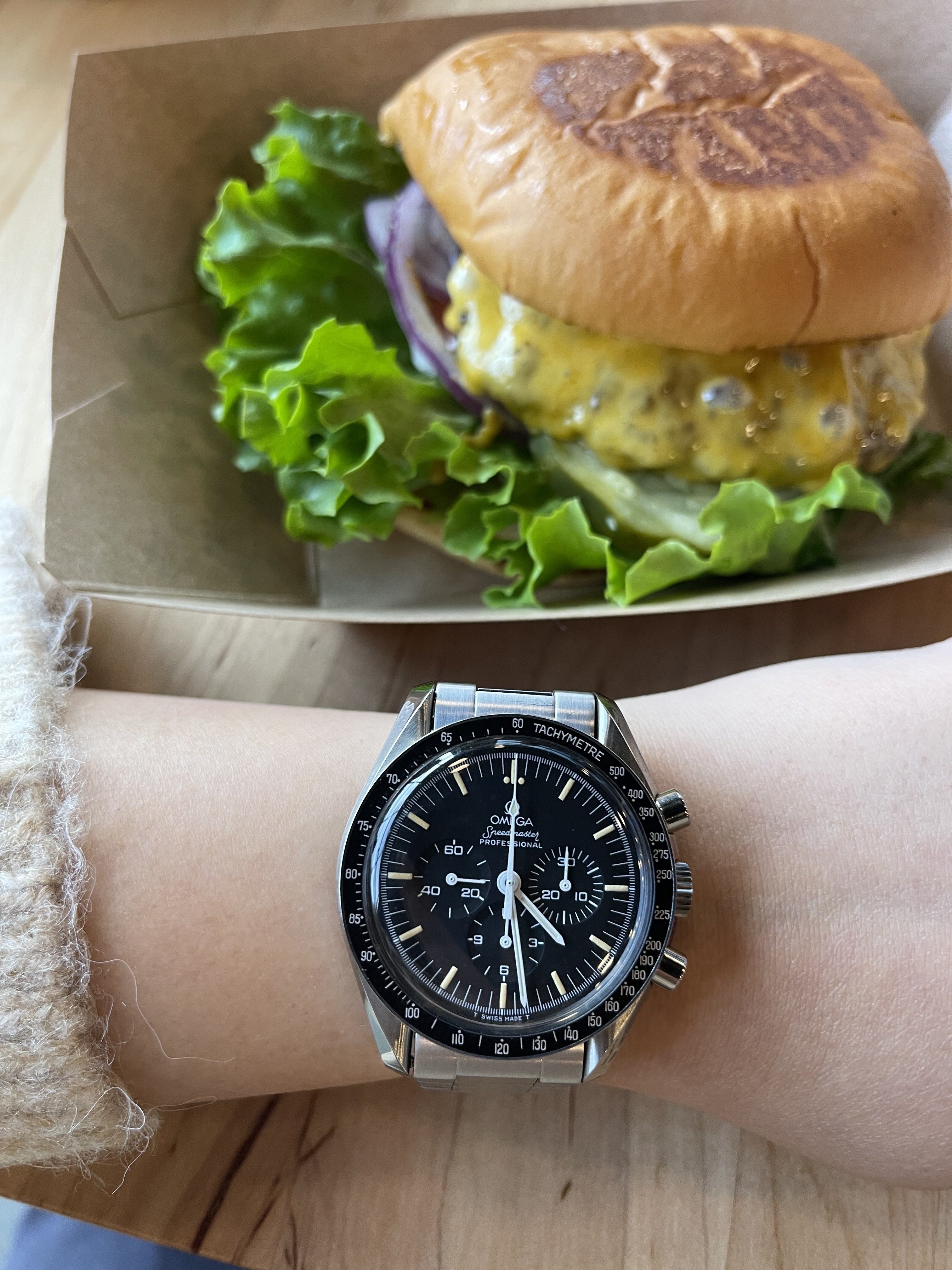 You’ll enjoy every moment with this speedmaster. Like going out and having burgers with friends.