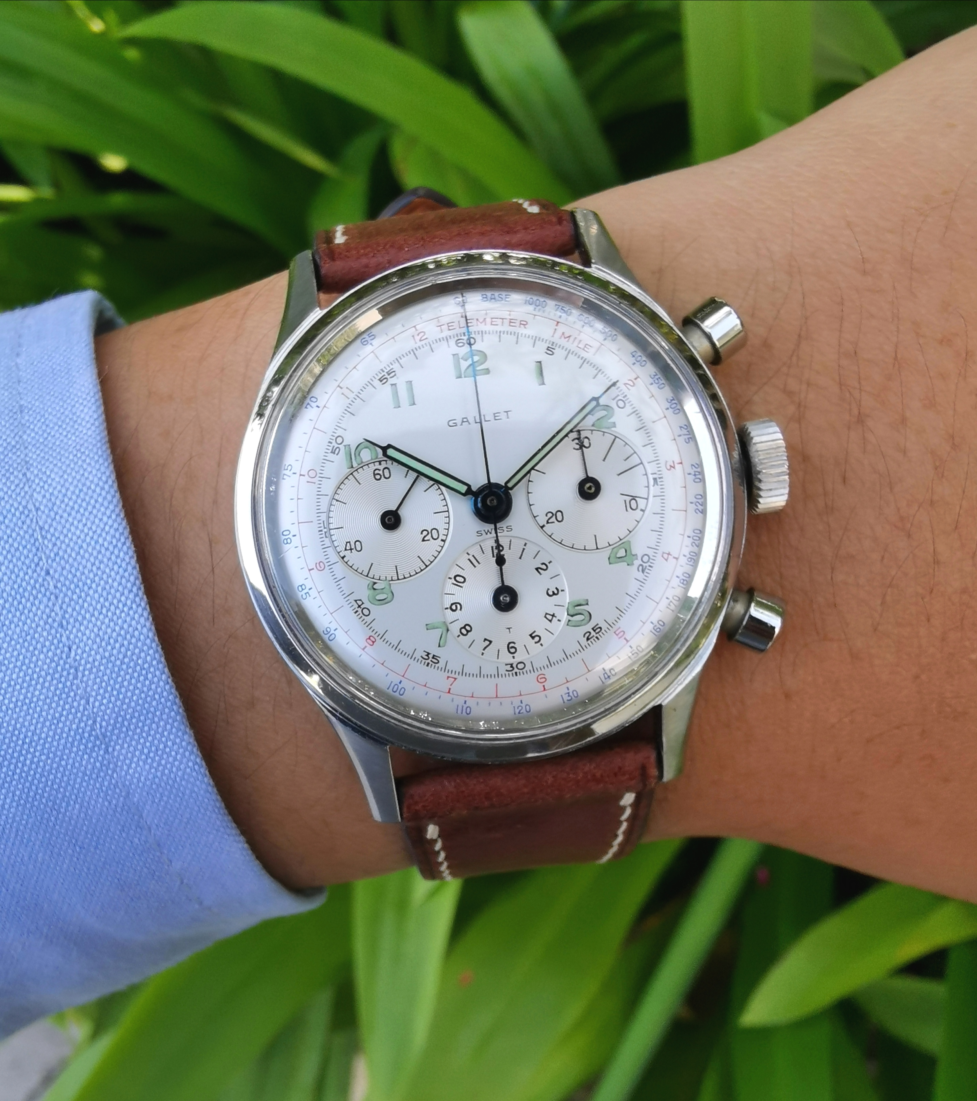 This led to discovering a Gallet Multichron 12 EP 40 movement on eBay from which the seller acquired from an estate sale in the land down under. After advice and assurance from fellow OFers, this came to pass. Love the overflowing funky minty toothpaste-like lume on a pristine dial.