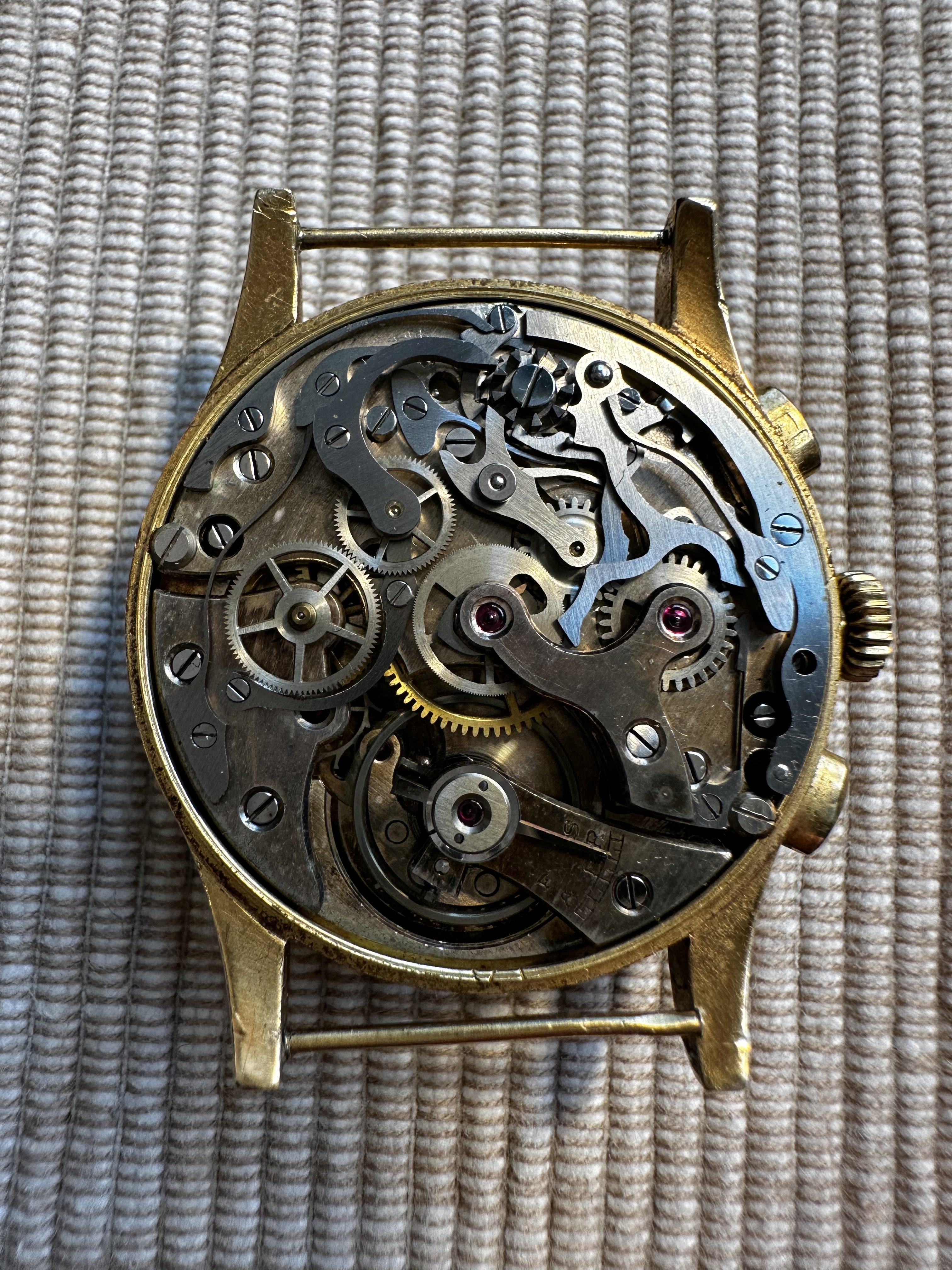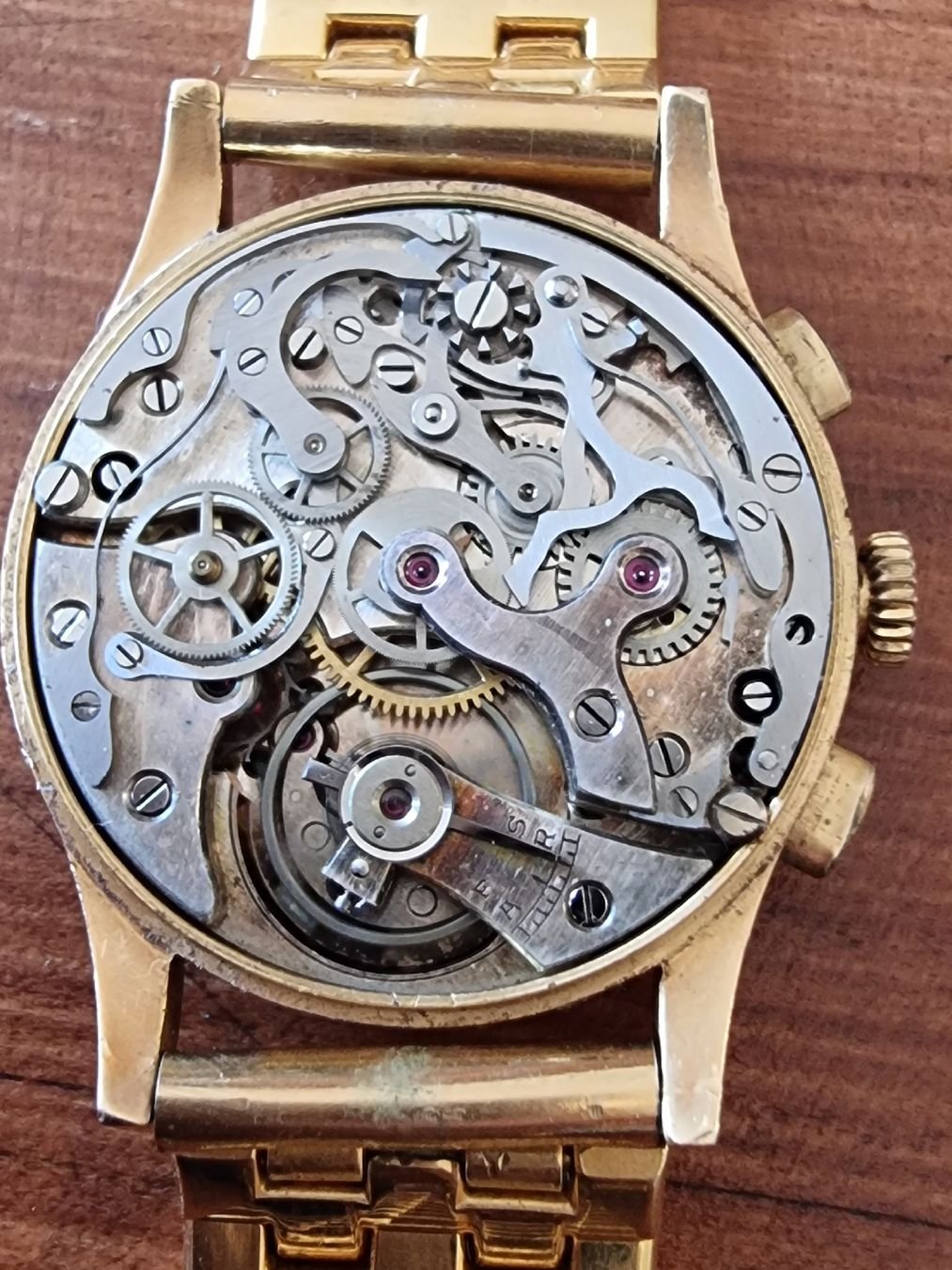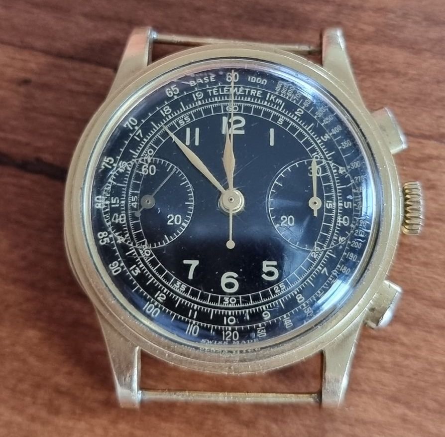 It is going later on auction and since I am interested in black chronographs from the period, I would like to bid on it. I do not think it holds more value than the Valjoux it has inside and the 18k WG (EDIT: YG) case, but I am happy to hear your opinions.