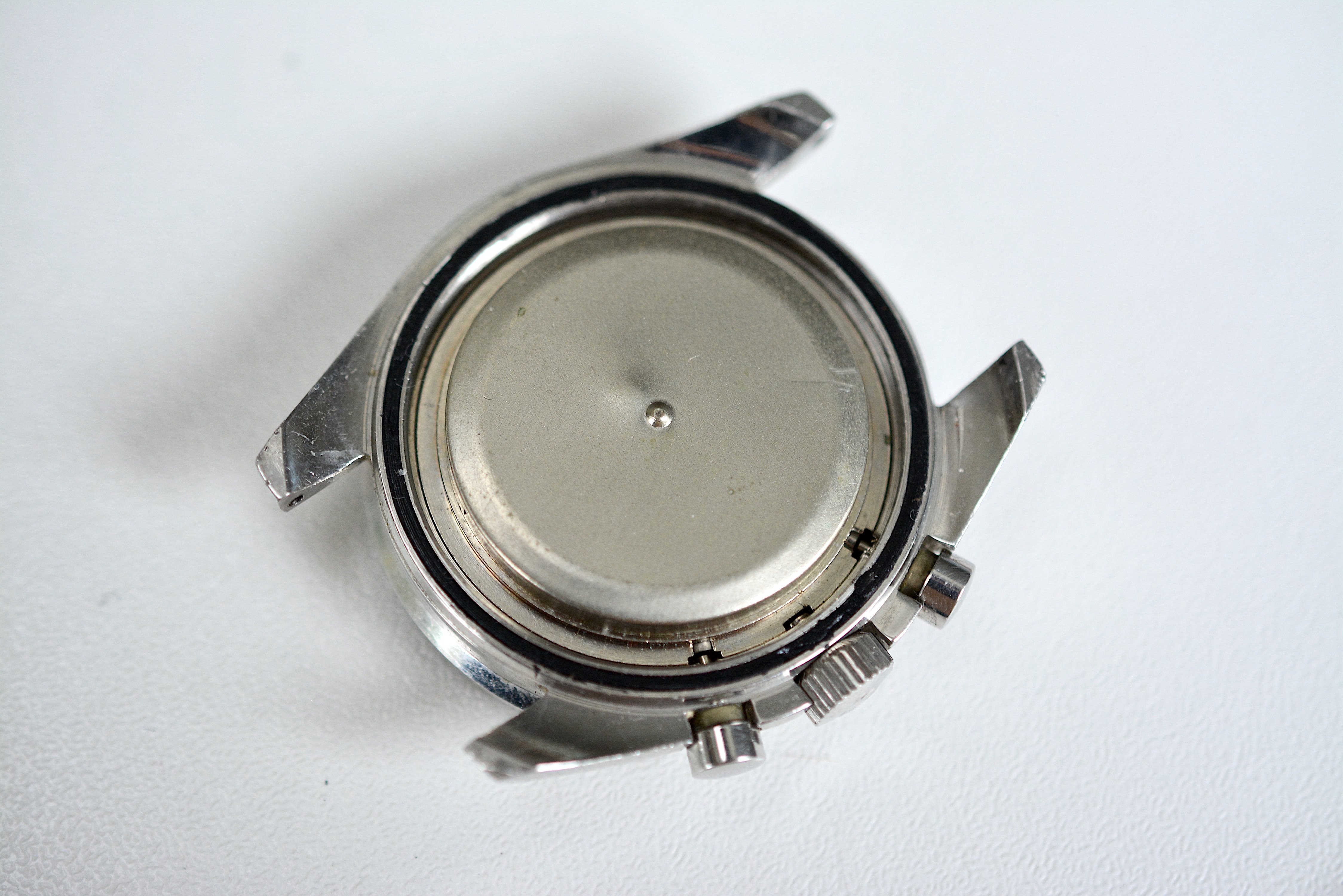 It has all the original parts like don bezel, fat neck pushers, crown, case-back, anti-magnetic cover,....
