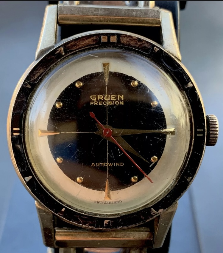 I looked for every advertisement or catalog for Gruen of this period and nothing like this pops up. I can assume that perhaps this was an “aviator” style based on the Bezel like the 30’s enameled aviator benrus’s have, but Gruen had the PanAm series at this same time which was clearly marketed as an aviator with 24hr dials.