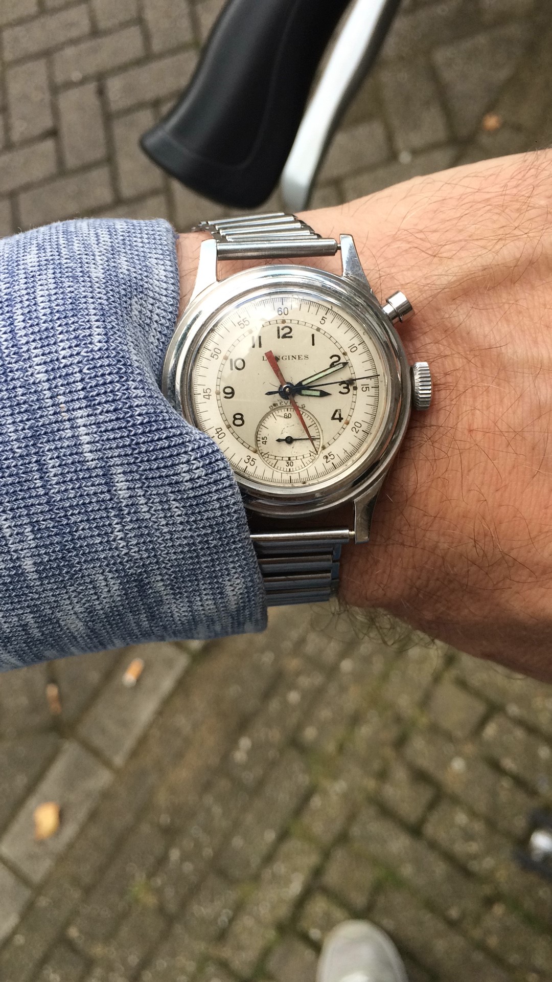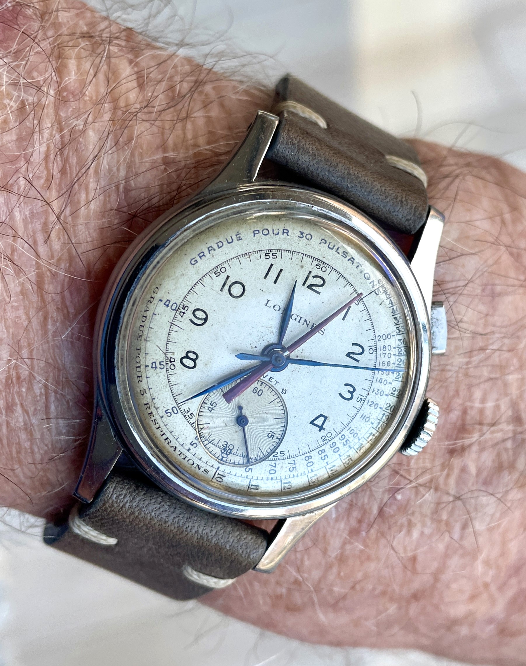 I agree about the dial being refinished. The watch itself is a legit Longines model. Here is information: