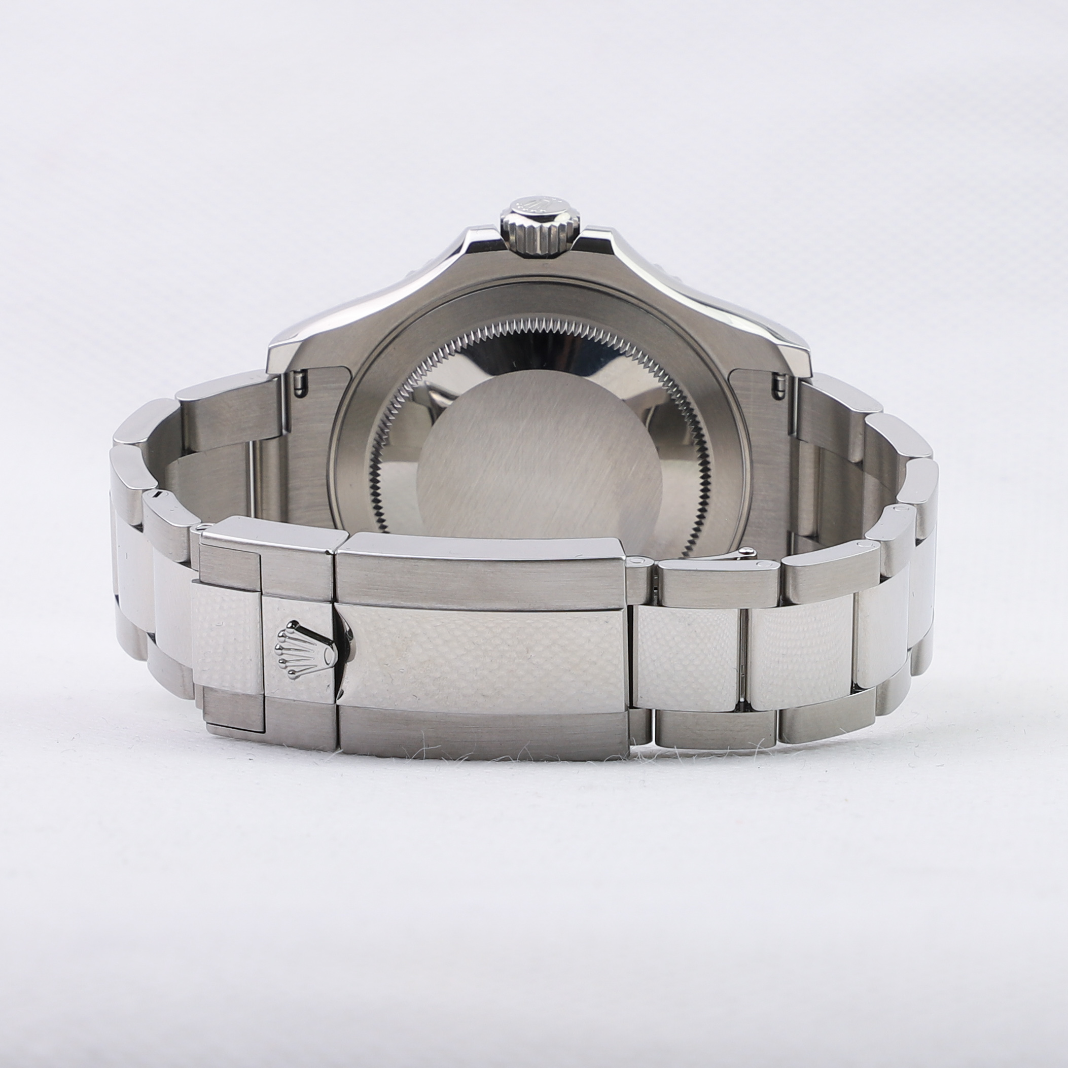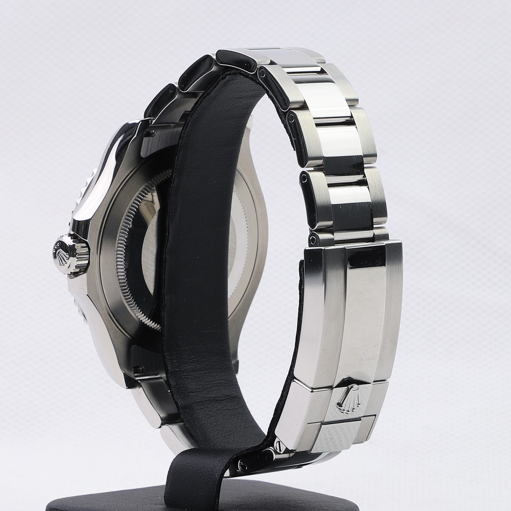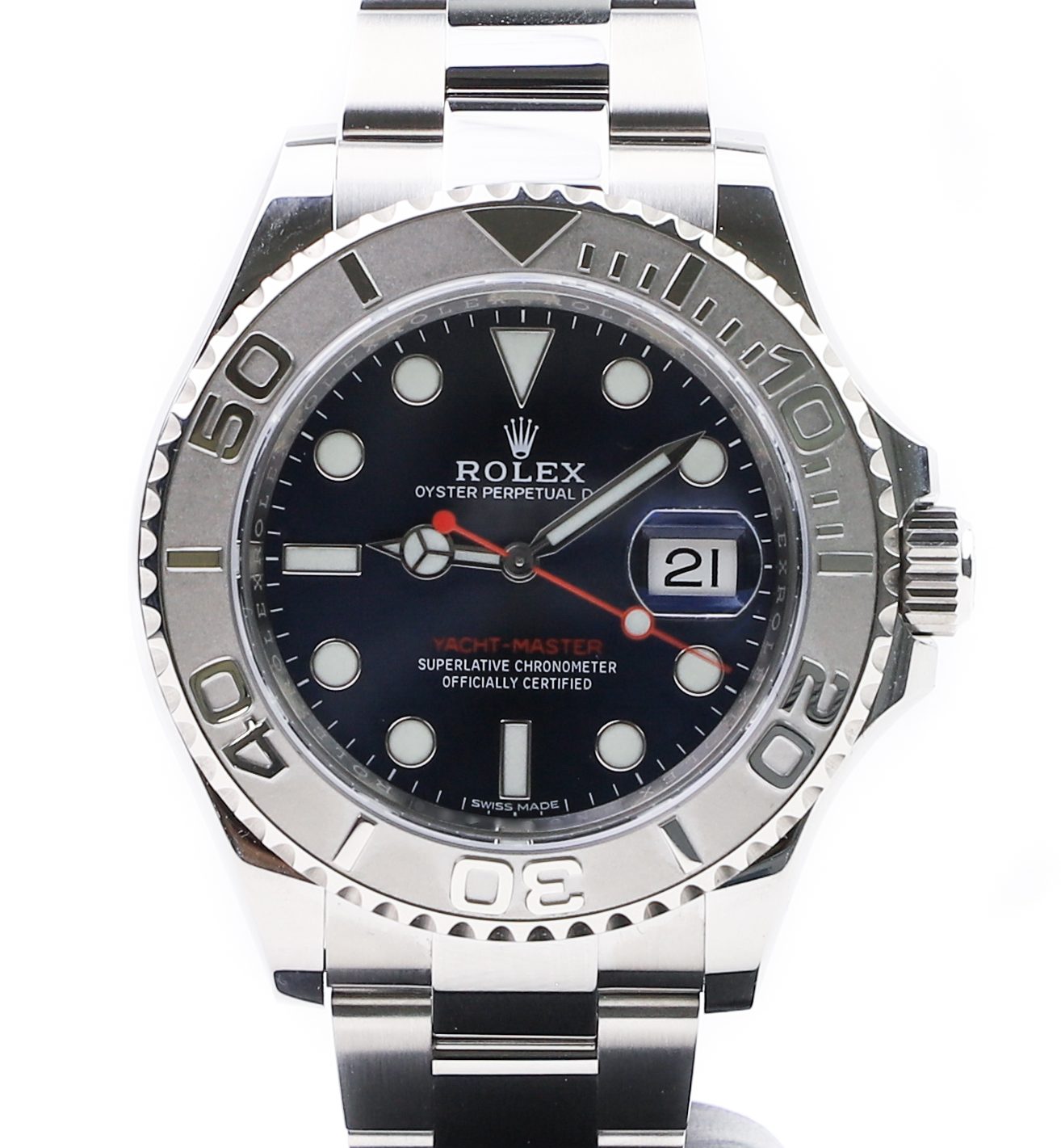 Selling an unworn Rolex Yacht-Master reference 116622 with blue sunburst dial. The watch comes complete with box and papers. The certificate is dated 2019.