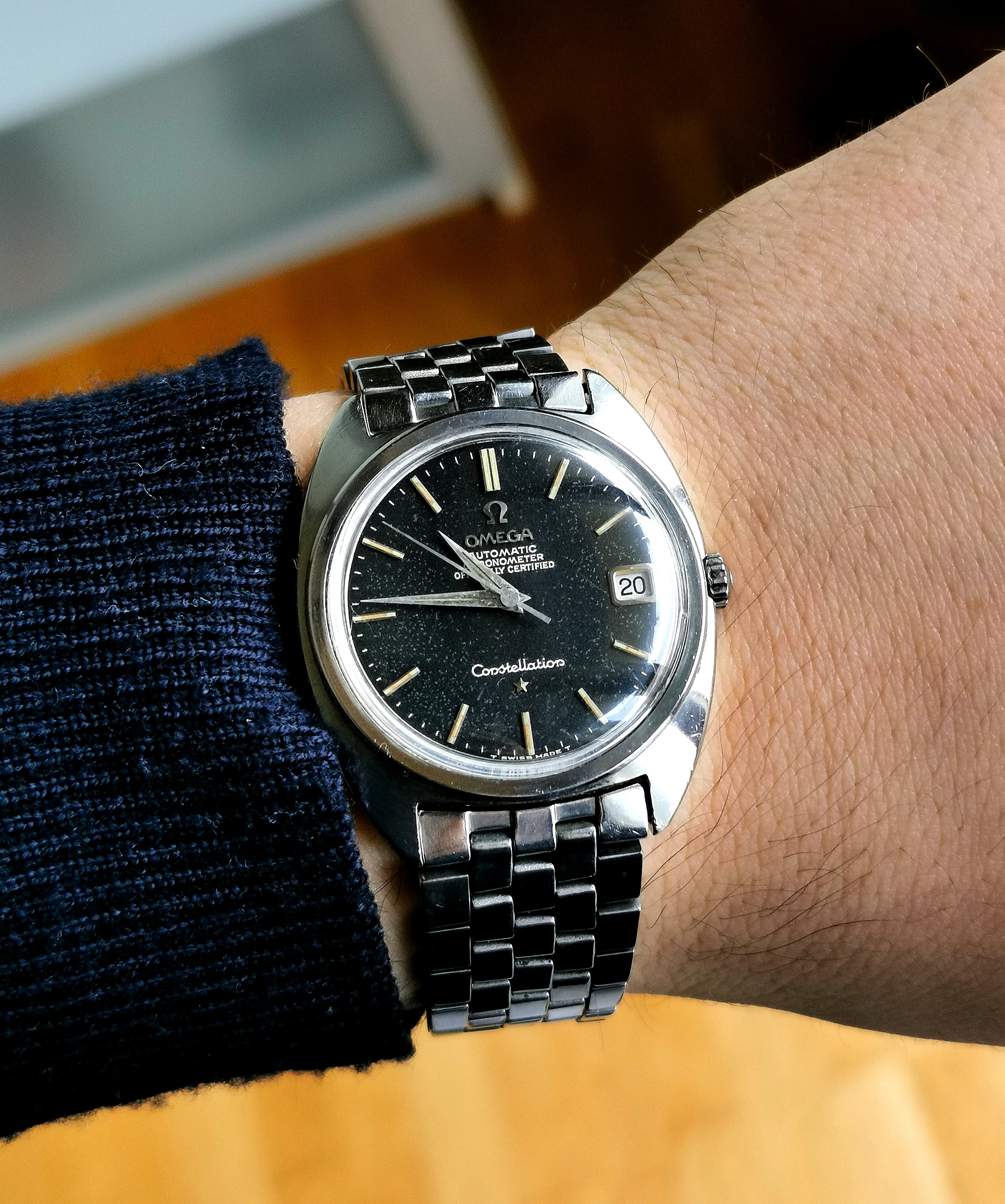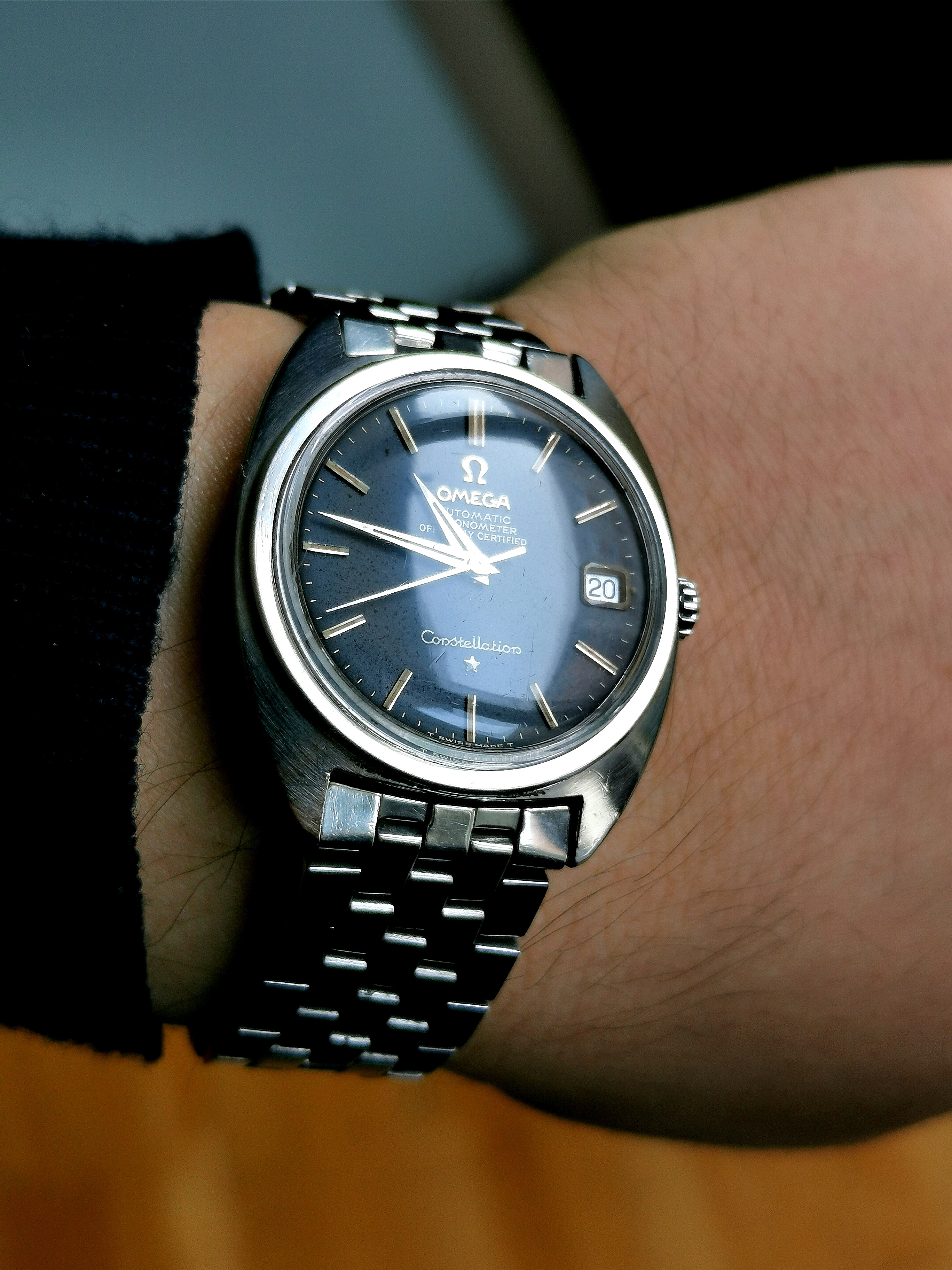 This is one of the watches, that around one year ago when I started getting into vintage I told myself I would never wear. 馃榿 How wrong I was. The design, specially with the bracelet, looks really cool and modern still. In regards to the dial, it kind of changes colour depending on the angle and sometimes these dots on it can be seen and sometimes don't. At a normal distance all one sees is black. It might look completely black, or gray, or even a little dark blue!
