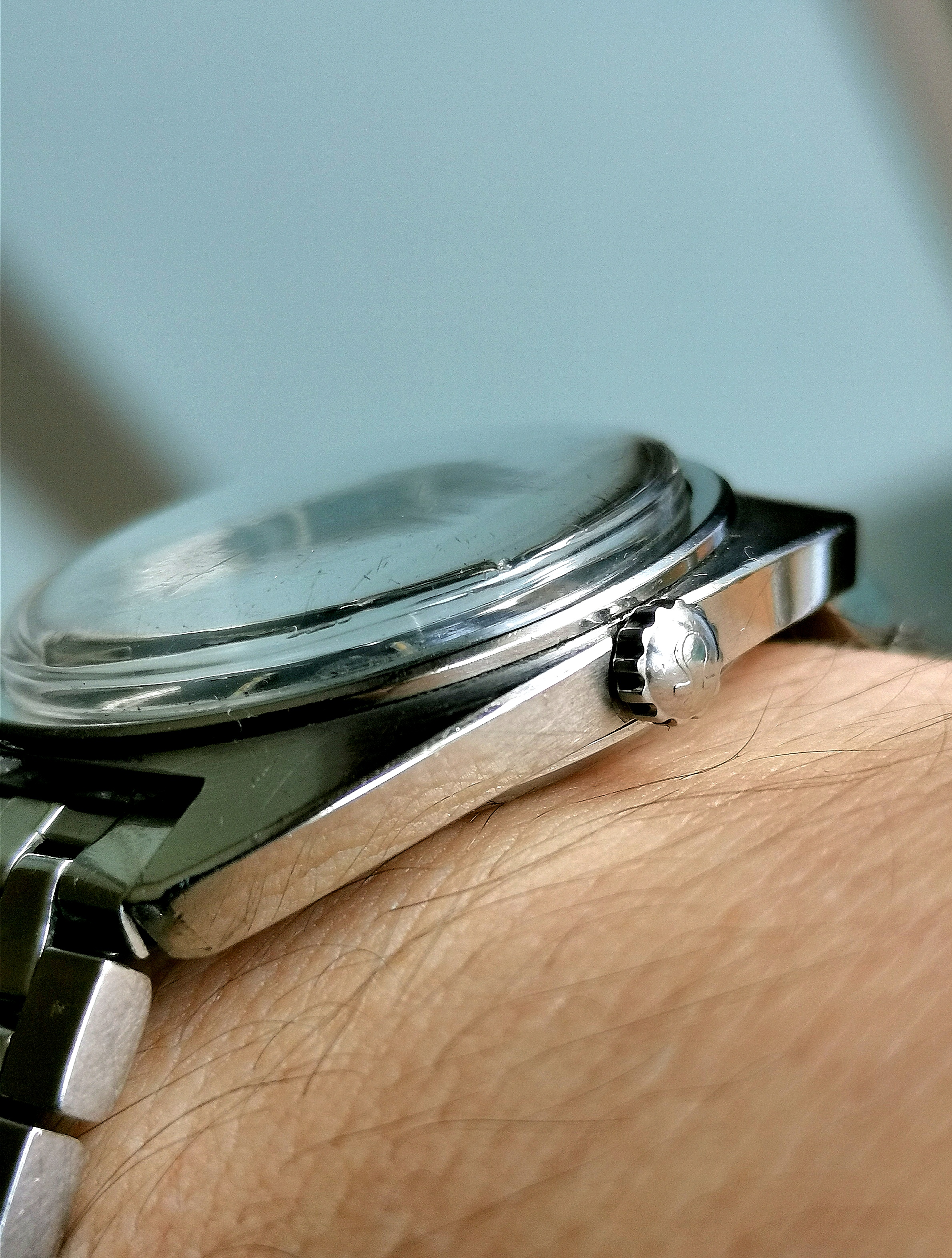 There has been some polishing, I think, but the edges and the brushed finished can still be seen, also with the clear bezel. This contrast is just so cool.
