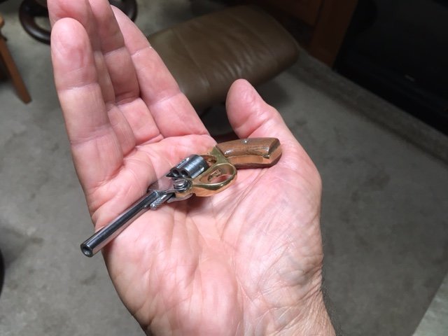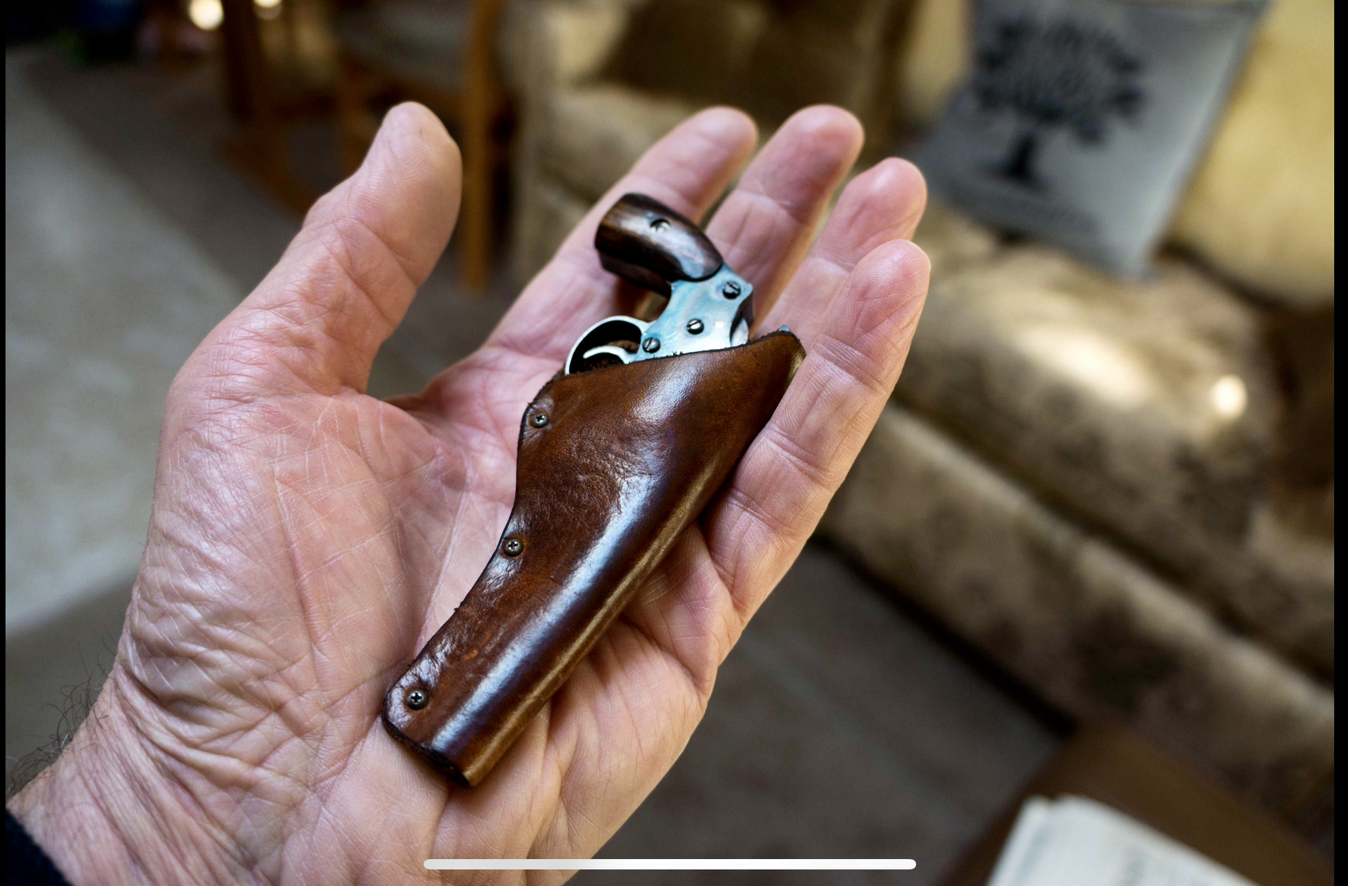 “I just wanted to share a little show and tell with you. The proceeds from the watch wound up right in my yard, with a little shop and everything in it. Photos attached, along with a few things I have made. I am not a gun owner or enthusiast, but I sure do love making these little [non-working] six shooters….
