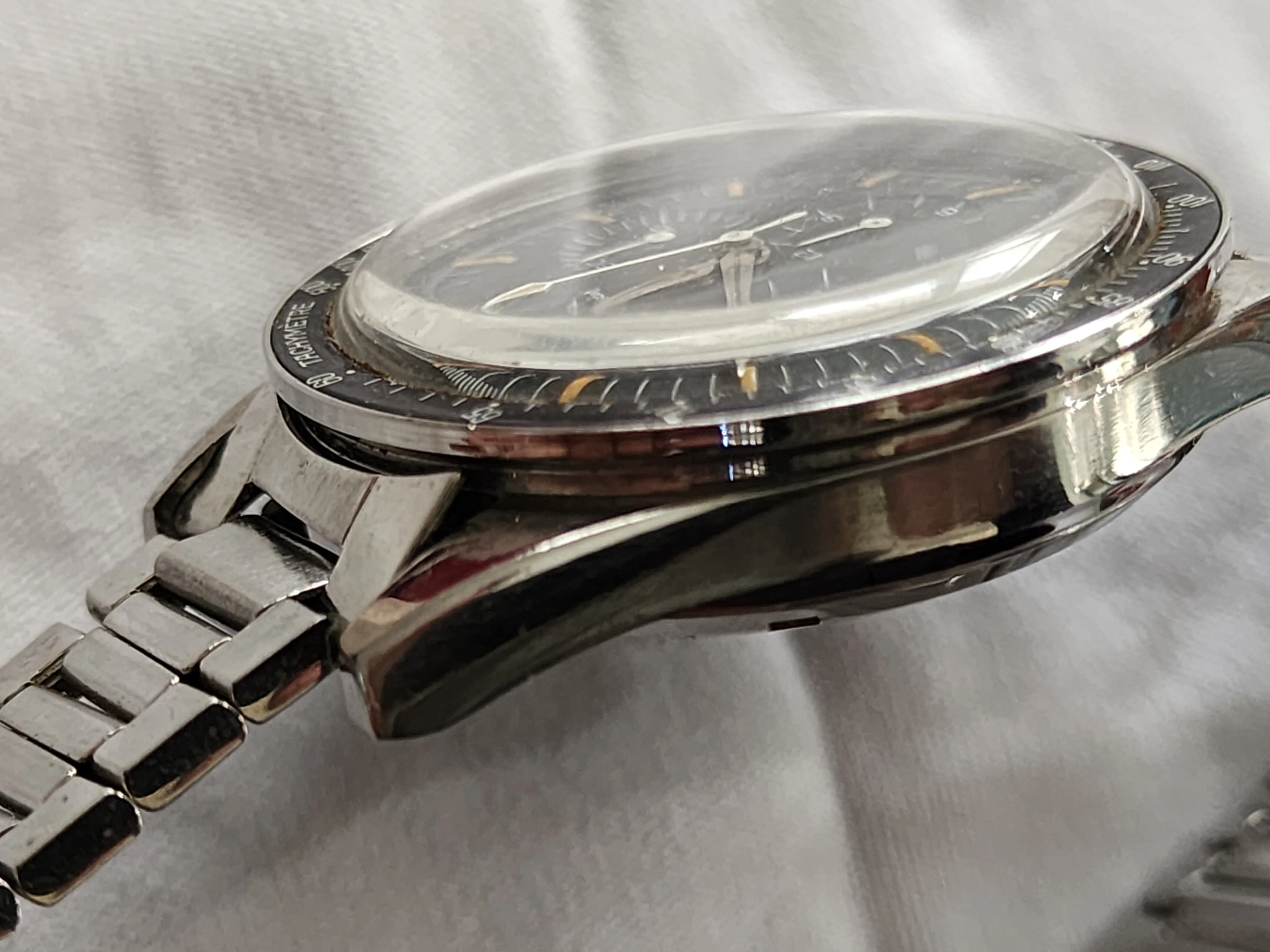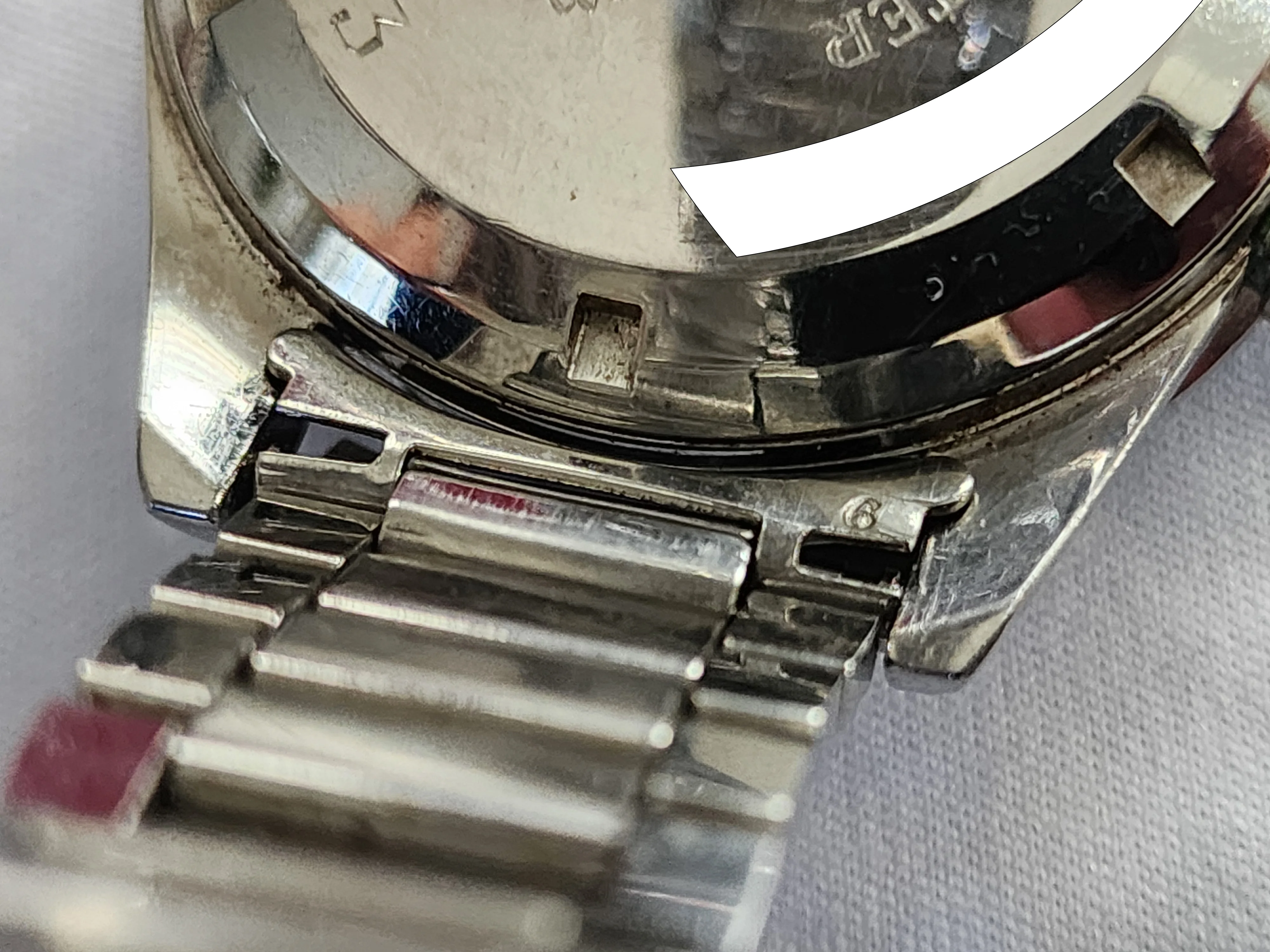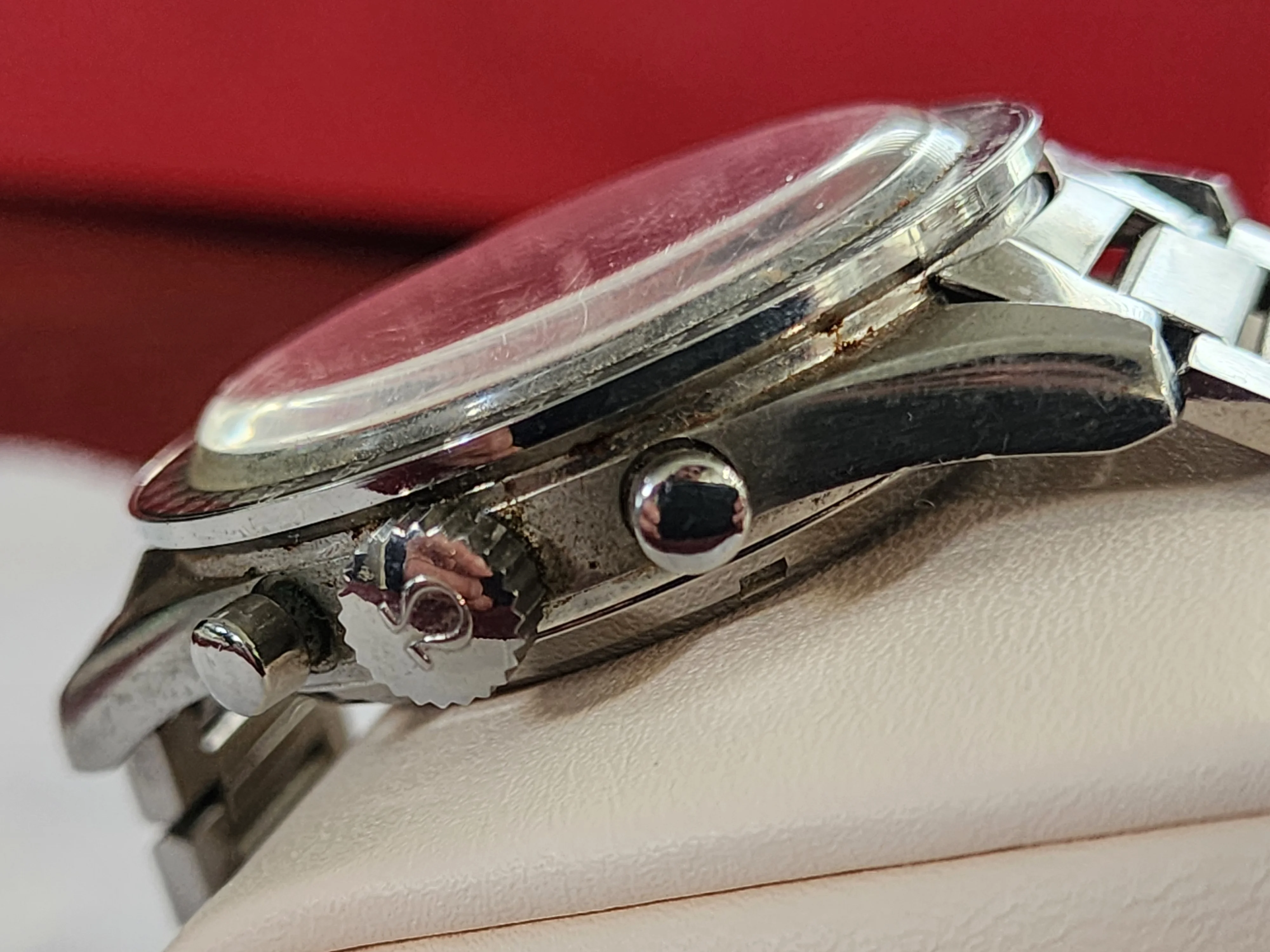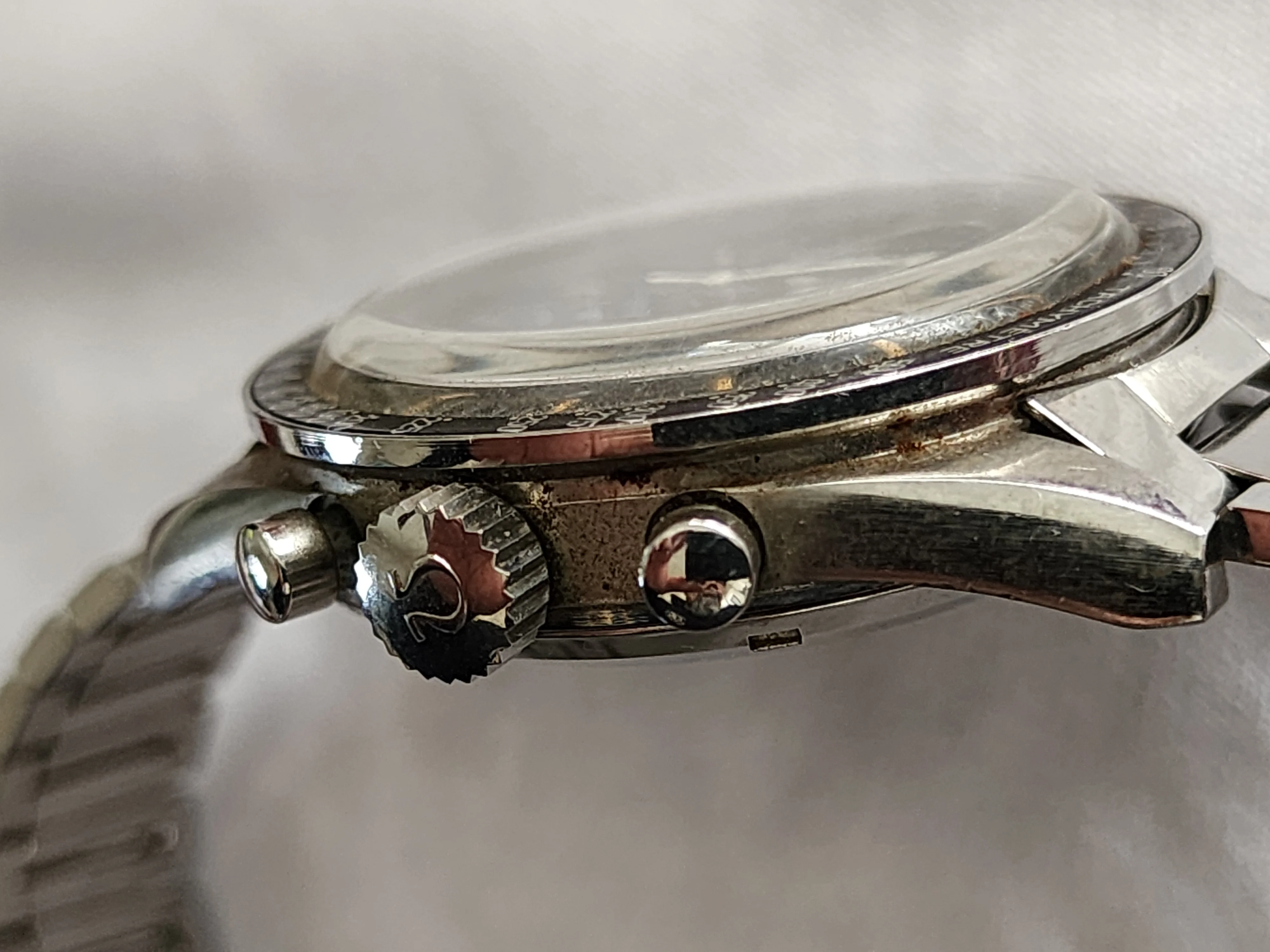 We still have not opened up the back of the watch yet. When ready it will be taken to LA Watch Works. We discovered that the watch still works and the chronometer hand snaps back in place perfectly. It does need a service though. It's untouched (on the inside) since 1062...