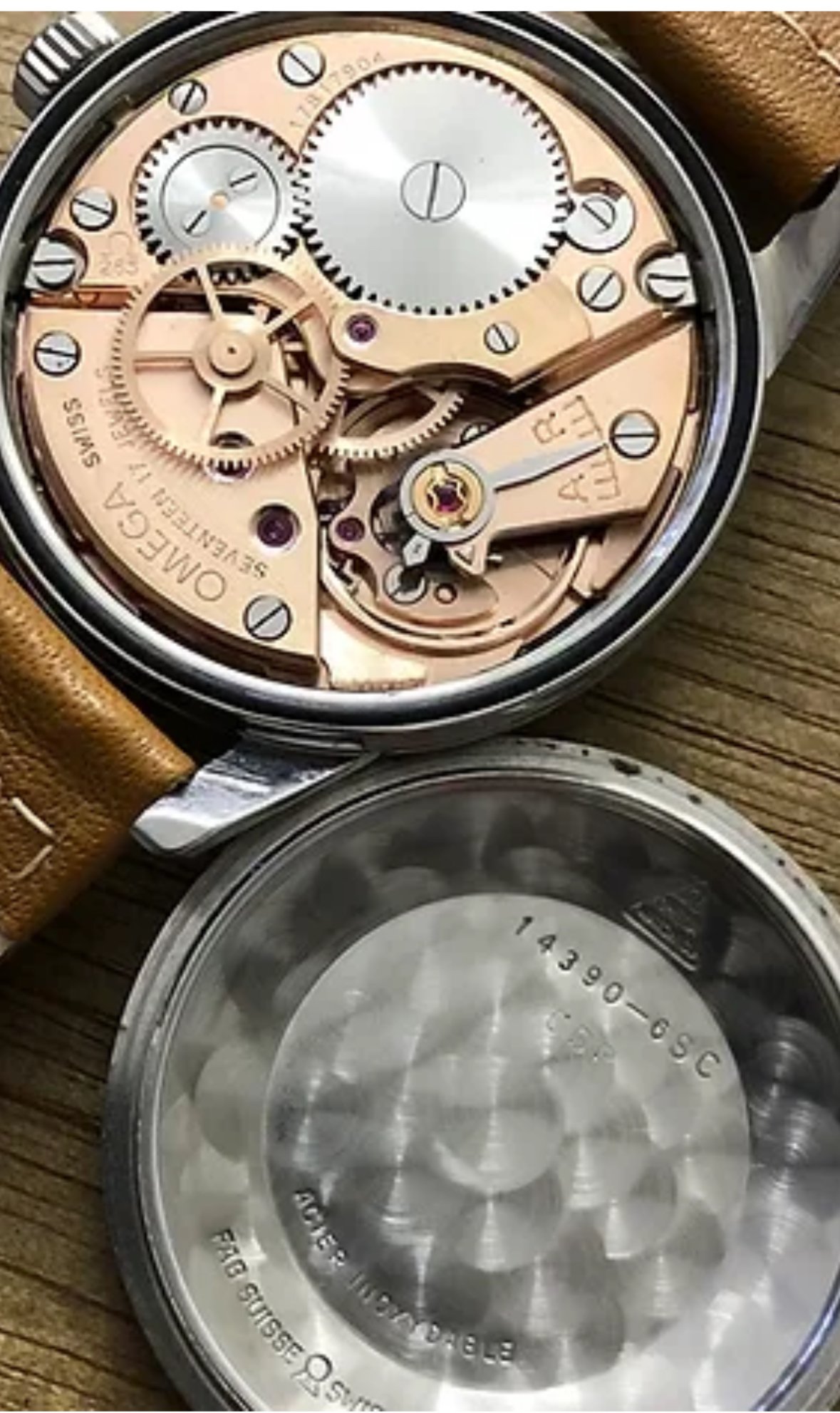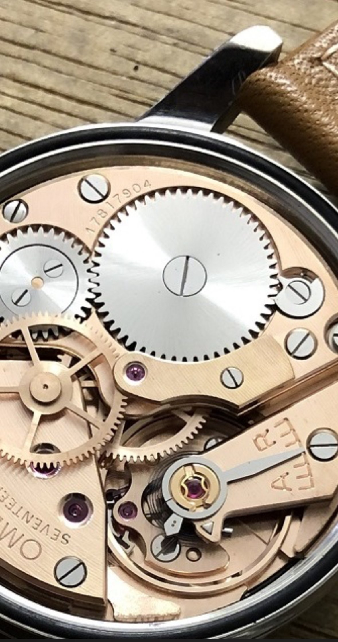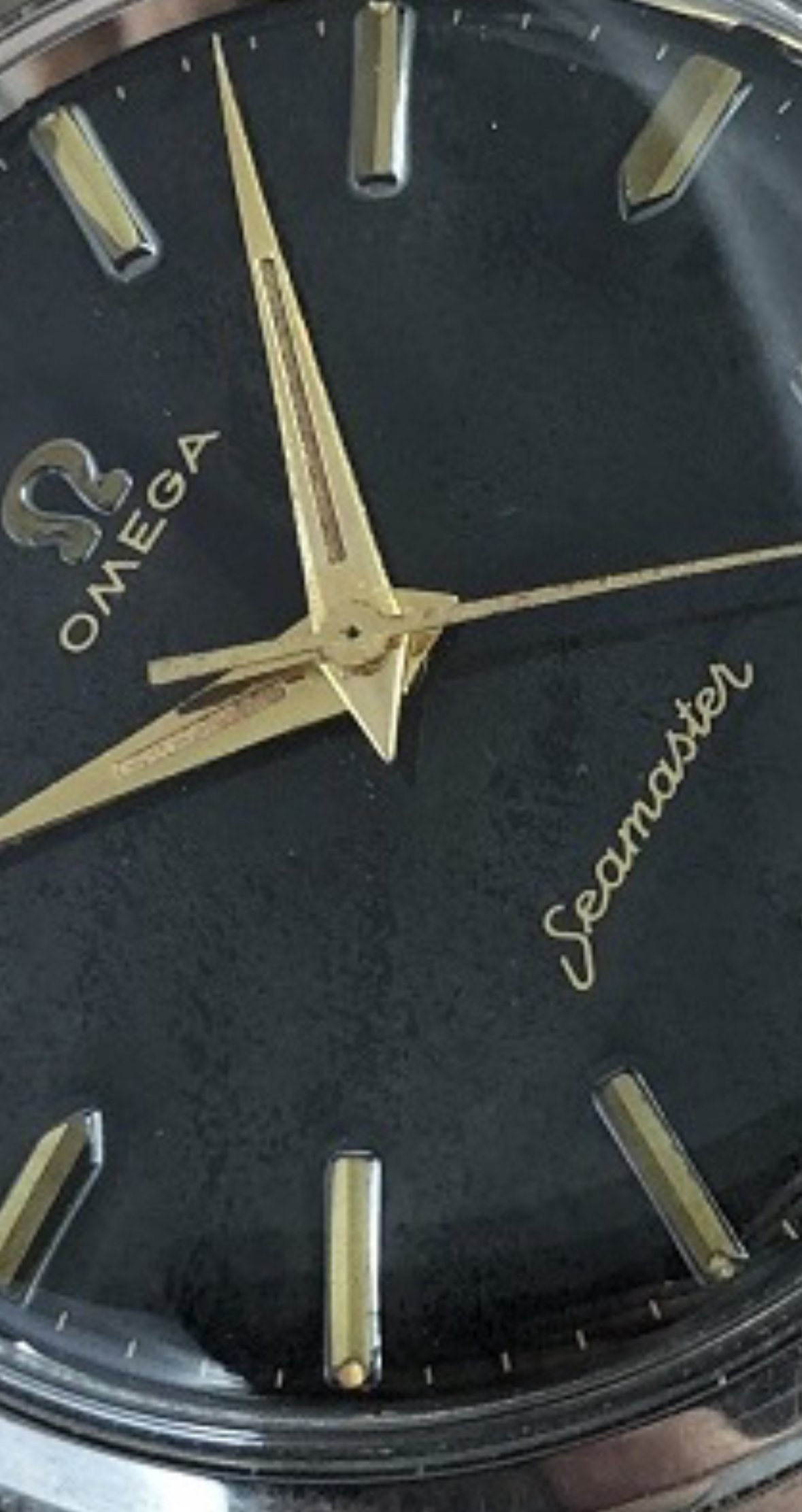 When refinishing dials with embossed figures it's almost impossible to keep the sharpness on the edges and facets crisp. These aspects are still as we would expect as is the crispness on the Omega symbol.