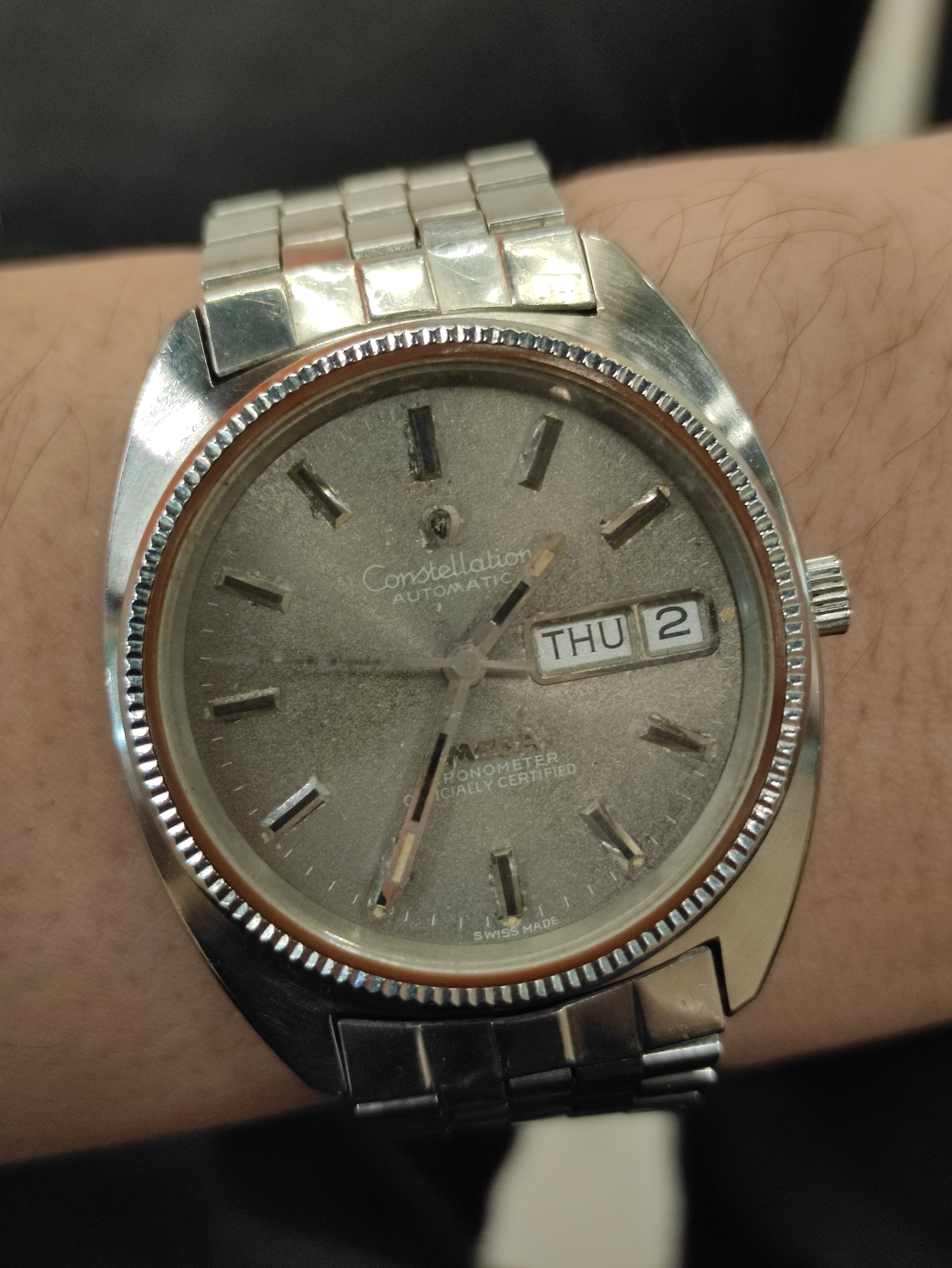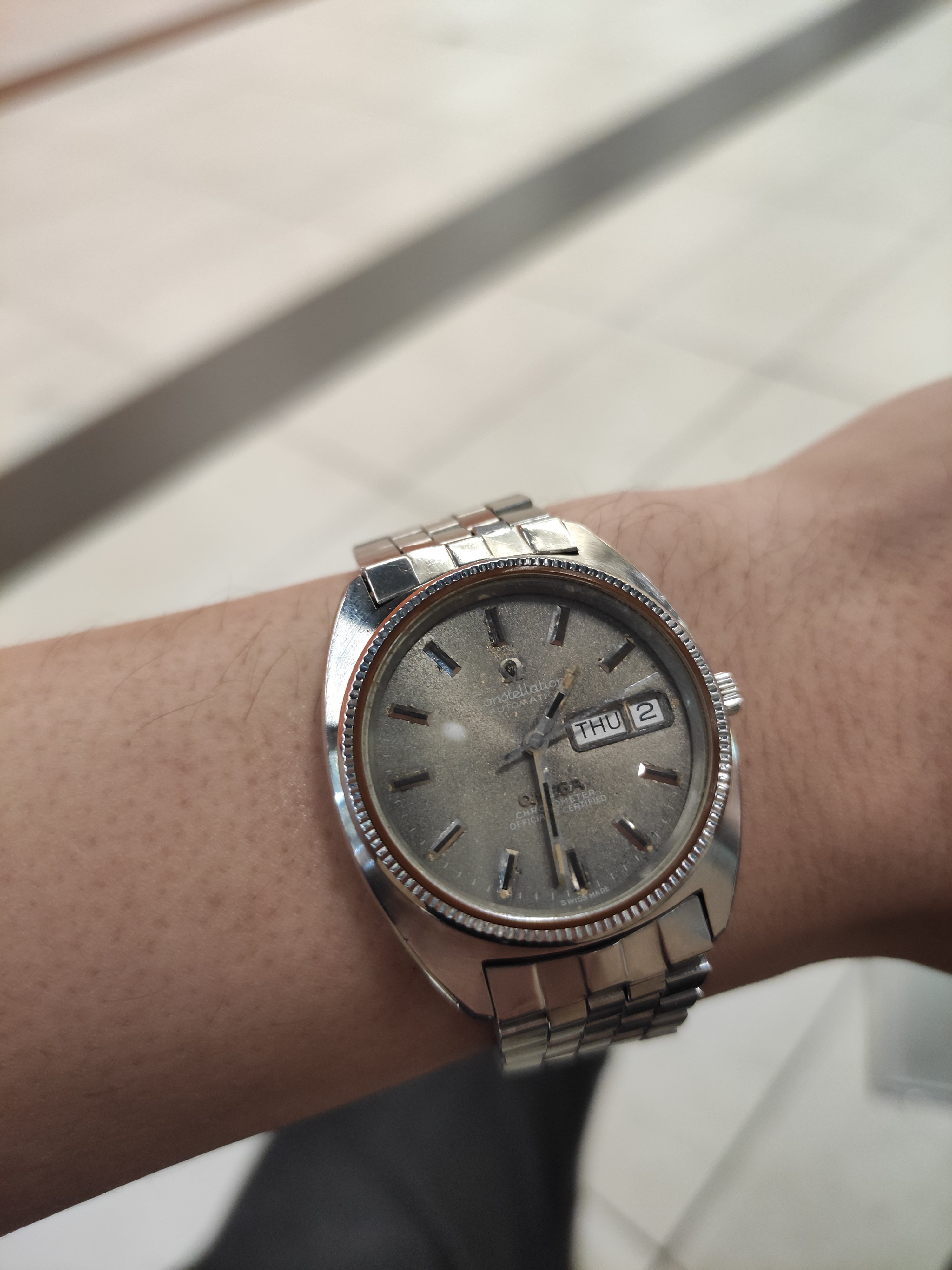 I had my previous omega vintage television styled case stolen and as such was looking for a new watch. I chanced upon this watch within a week and bargained for it. After a bargain, it costed me $500 SGD or USD376, including its bracelet. Some appraisal websites appraise it to be USD$1600 due to its collectability