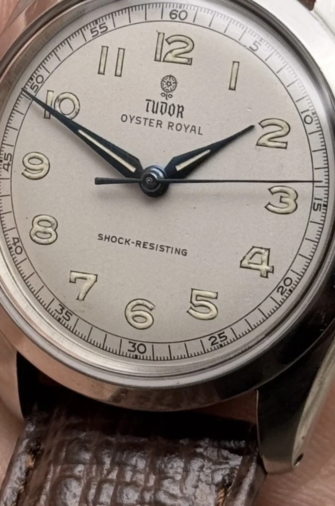 For my info: this was radium dial originally? Edit: I have a strong suspicion it was so I'm guessing that it was. If this dial has been scrubbed of radium and moisture damage, and that's what it looks like, I would also suspect that it was touched up, and it sure looks like it to me.