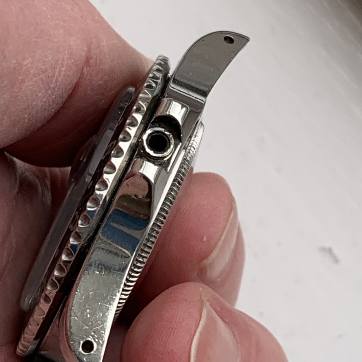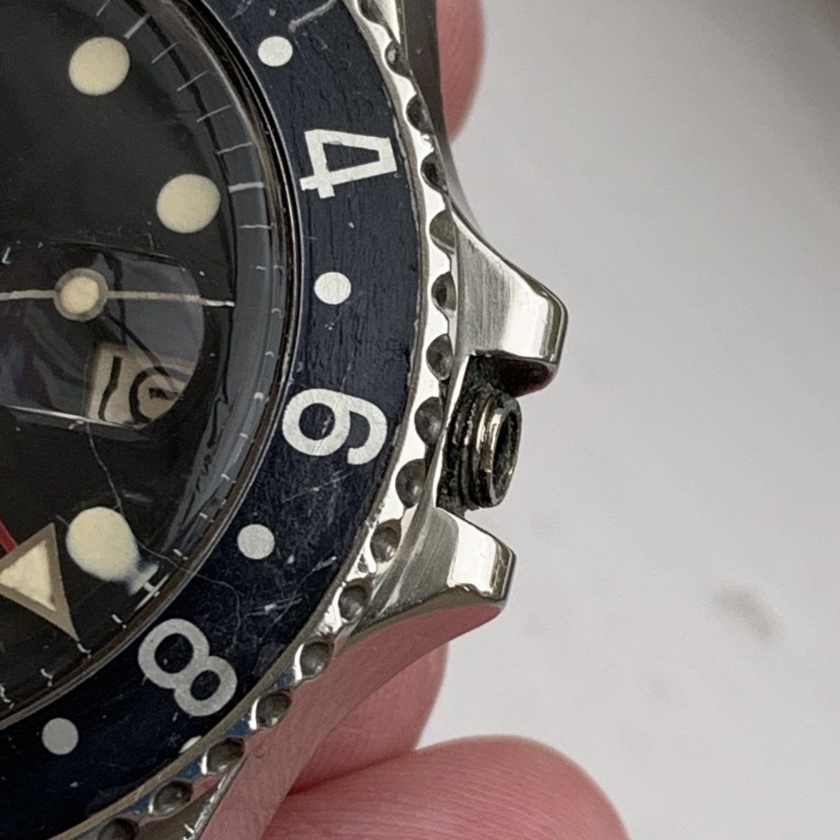 Disagree with some of the opinions on the case stated above. The case has typical "sleeve polish," were you see wearing off of the brushed finish in areas exposed to wear and tear, but retained chamfers and crisp lug holes (which are also far from the chamfers) as well as some evidence of brushing is areas closer to the case (like you can see on the top surface of the crown guards and at the top of the 10 o'clock lug as it meets the case). See a nice discussion of sleeve polish here. Might it have been polished a touch? Sure, maybe with a jeweler’s cloth, but the case is still better than 95% of 1675 cases out there. Many of the late 70's cases didn't have much of a chamfer by the crown guards so not sure why people think its been polished to hell. But definitely a nice case for me.