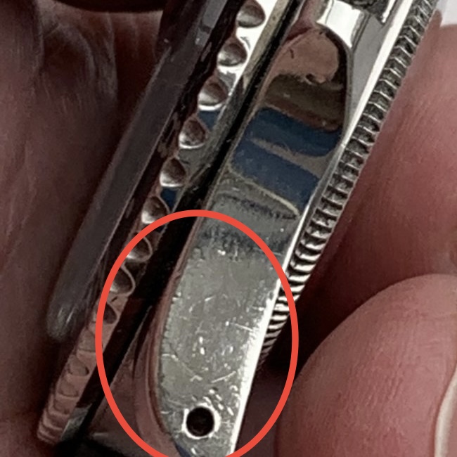 and possesses original chamfers and finish that is worn in some areas from years of use. Because of the light and angle of this specific pic for illustration purposes, you can’t really make out the satin finish that is present on the lug.
