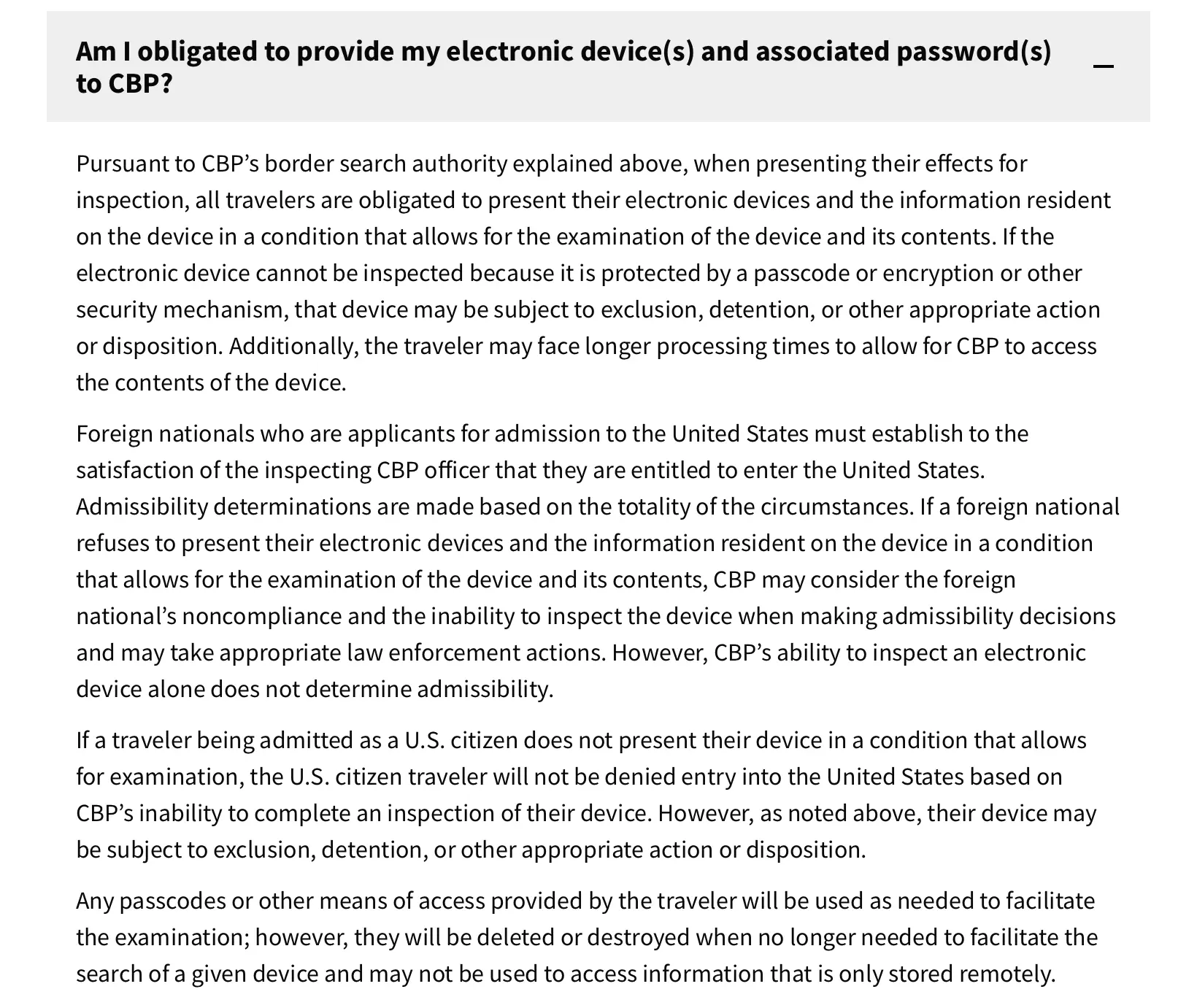 What we were talking about was bank transactions, and to my knowledge no citizen is asked for their bank login upon entry. The CBP has authority to search your belongings, which includes your phone, but that does not extend to your bank account.